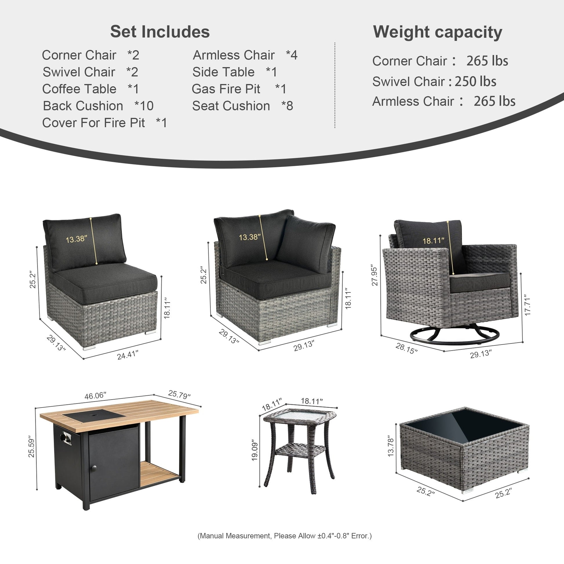 OVIOS Deep Seat Wicker 11-piece Sectional Set Swivel Chairs Fire Pit