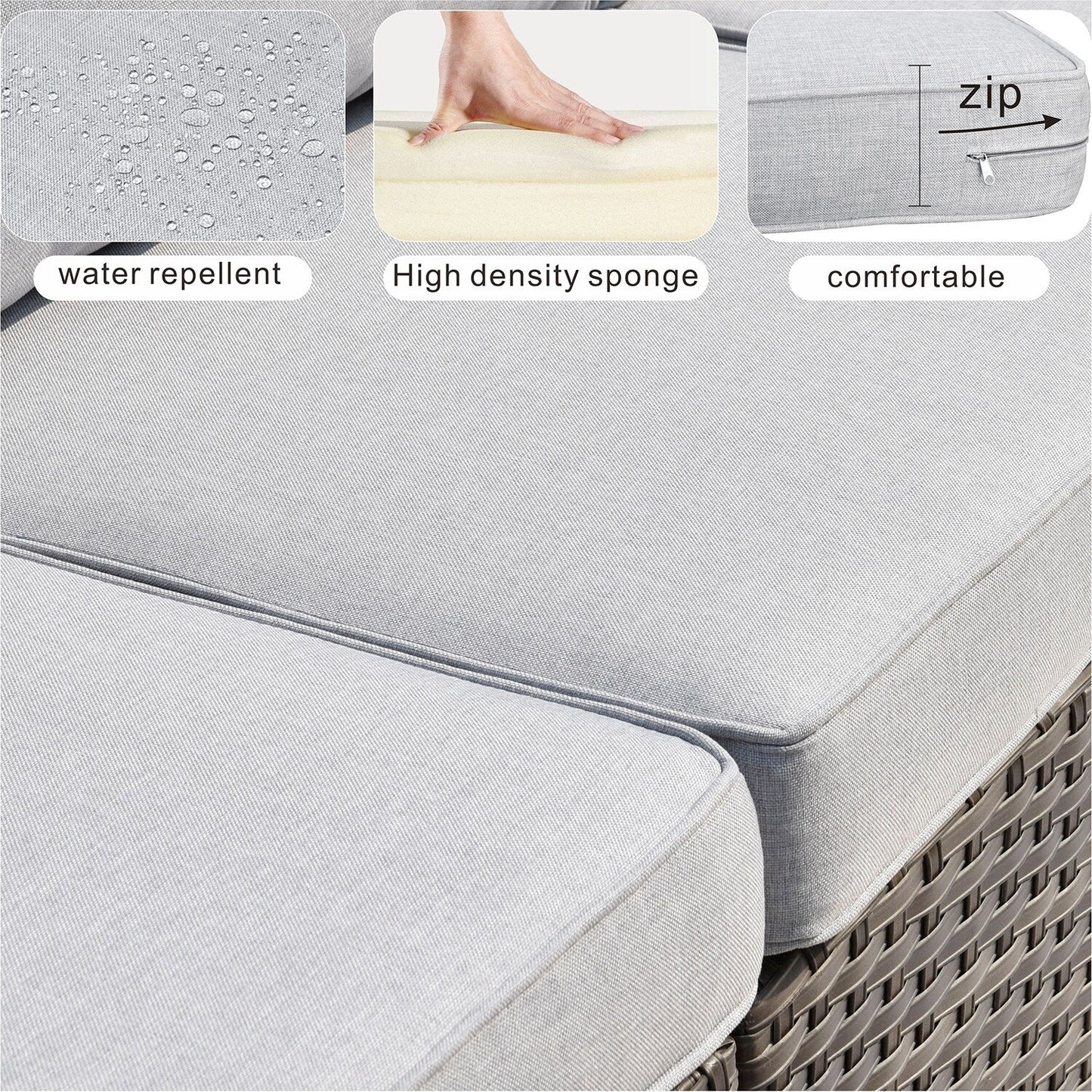 Strong and sturdy: this patio furniture set is made with all-weather PE wicker for a comfortable experience. The wicker of the outdoor furniture set is sturdy.