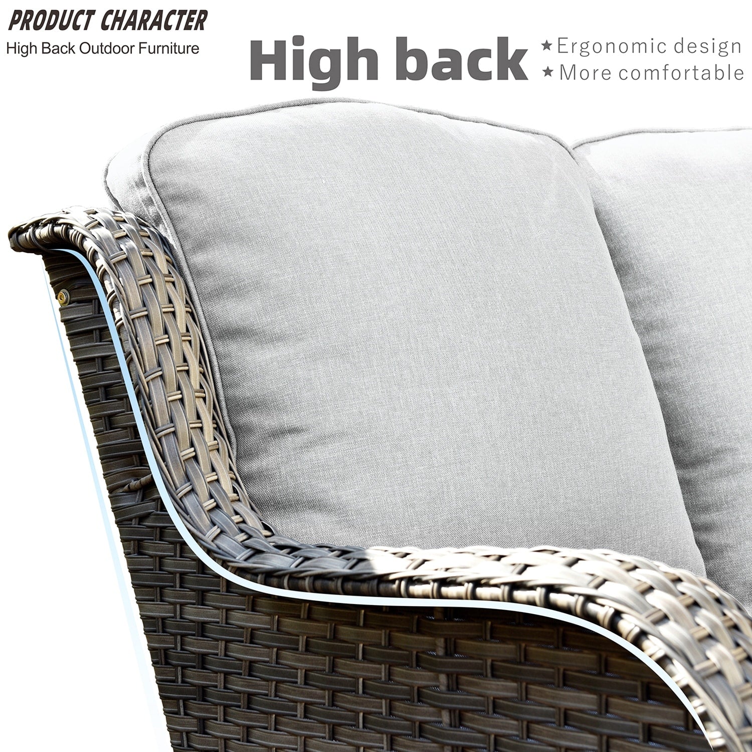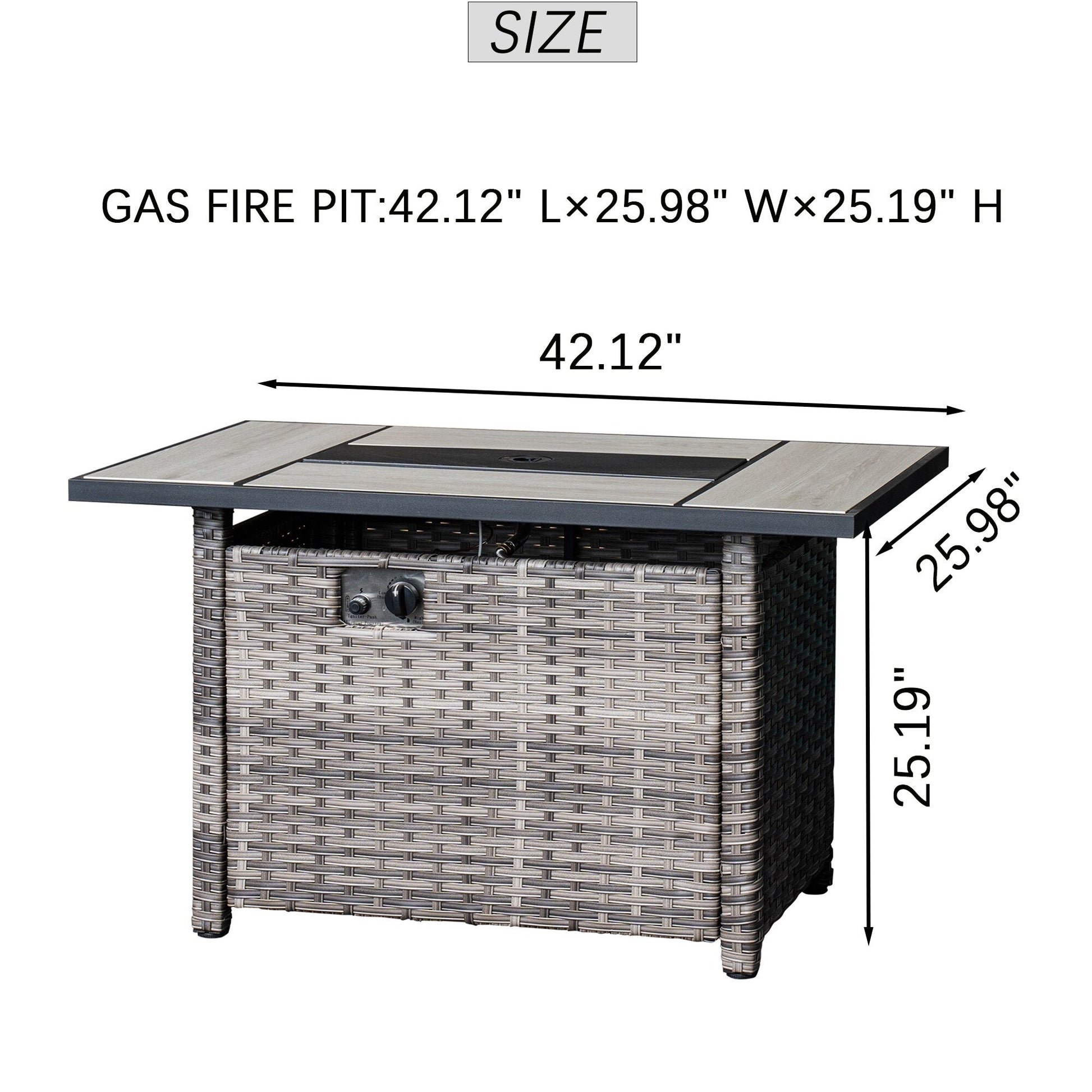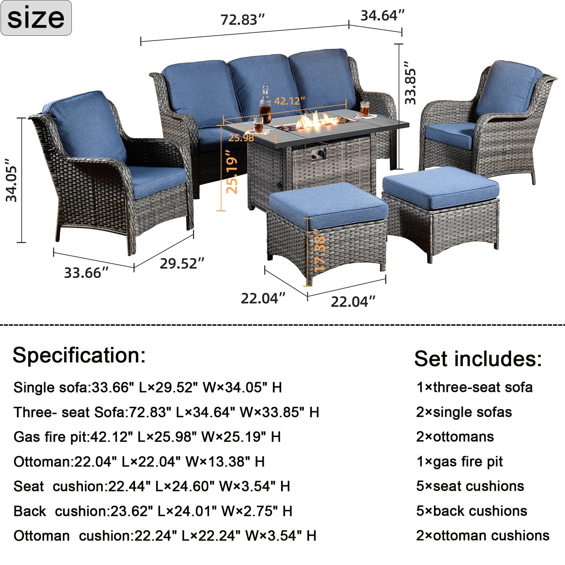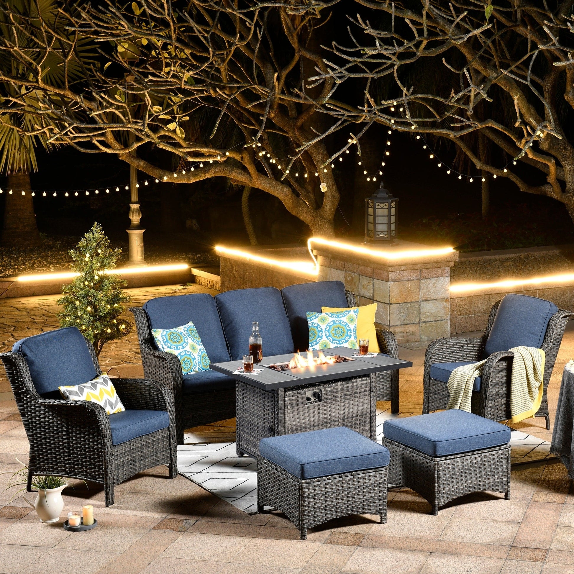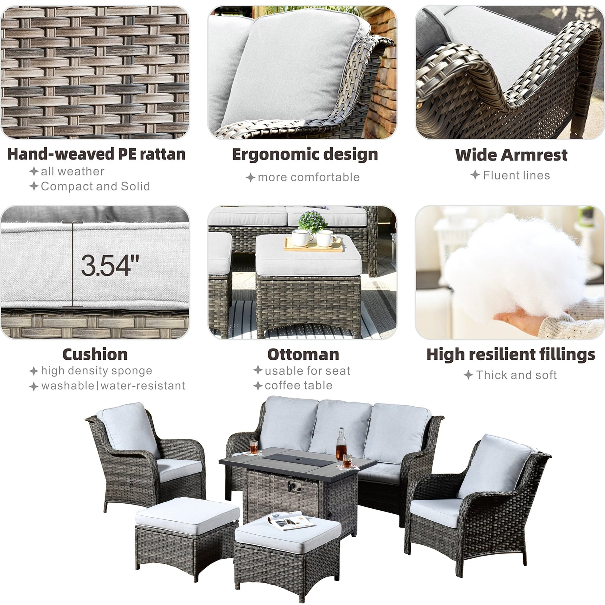 OVIOS Grey Wicker 6-piece Patio Furniture Set With Rectangular Fire Pit