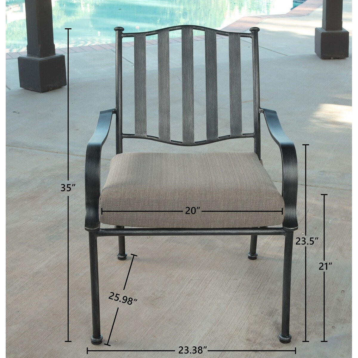 - Set includes: 6 dining chairs, 6 chair cushions, 1 dining table