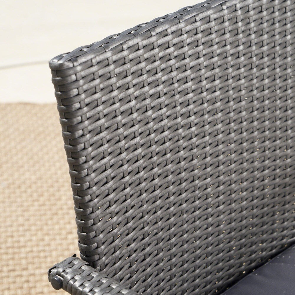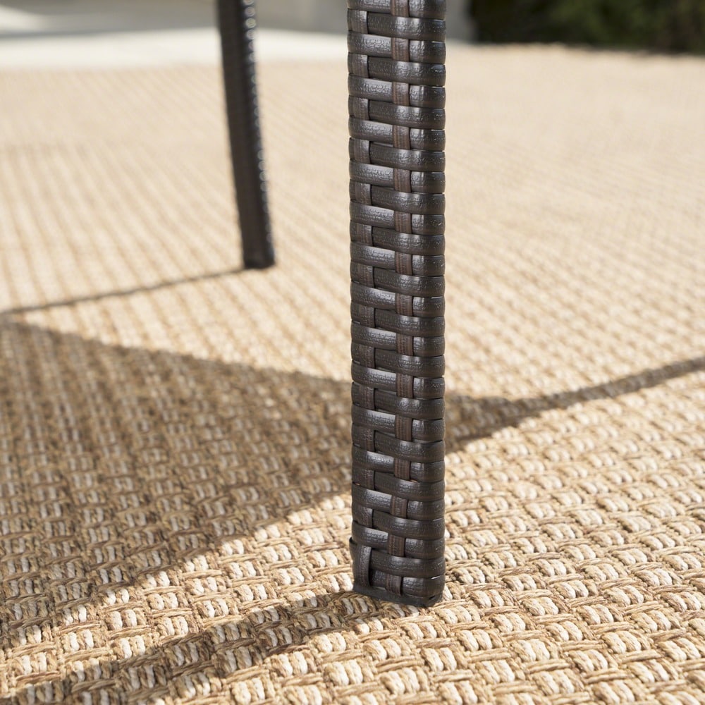 Set up a spot for enjoying wonderful weather together with this durable and attractive wicker dining set. Complete with a table, bench, and 4 chairs, this set does it all. Made from the highest quality materials and crafted to the most exacting standards, this is the perfect addition to your patio, backyard, or garden.