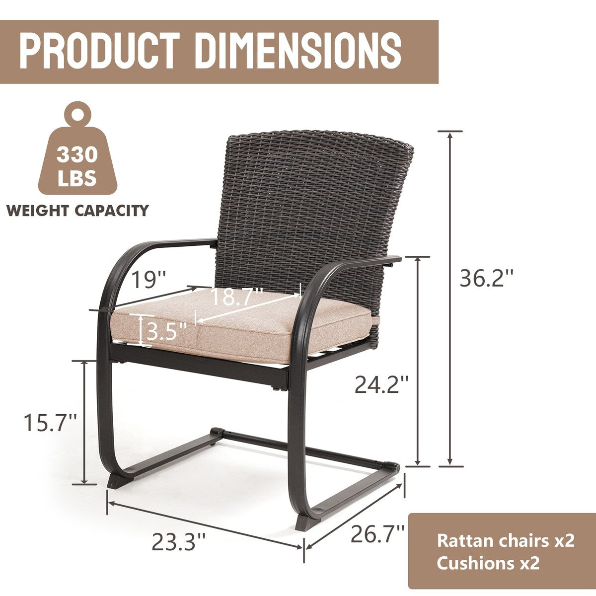 Patio 2 Piece Outdoor Wicker Dining Chairs, All-Weather Spring Patio Furniture with Cushions for Garden Pool Backyard Lawn