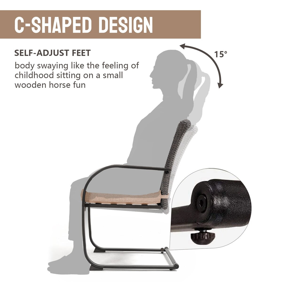 - 15° Slightly Rock Design: The spring motion chairs provide a gentle rocking motion, perfect for relaxed lounging. They are versatile and can be used as standalone chairs or paired with a dining table. To ensure stability on uneven surfaces, the feet are equipped with ABS anti-skid pads and adjustable features.