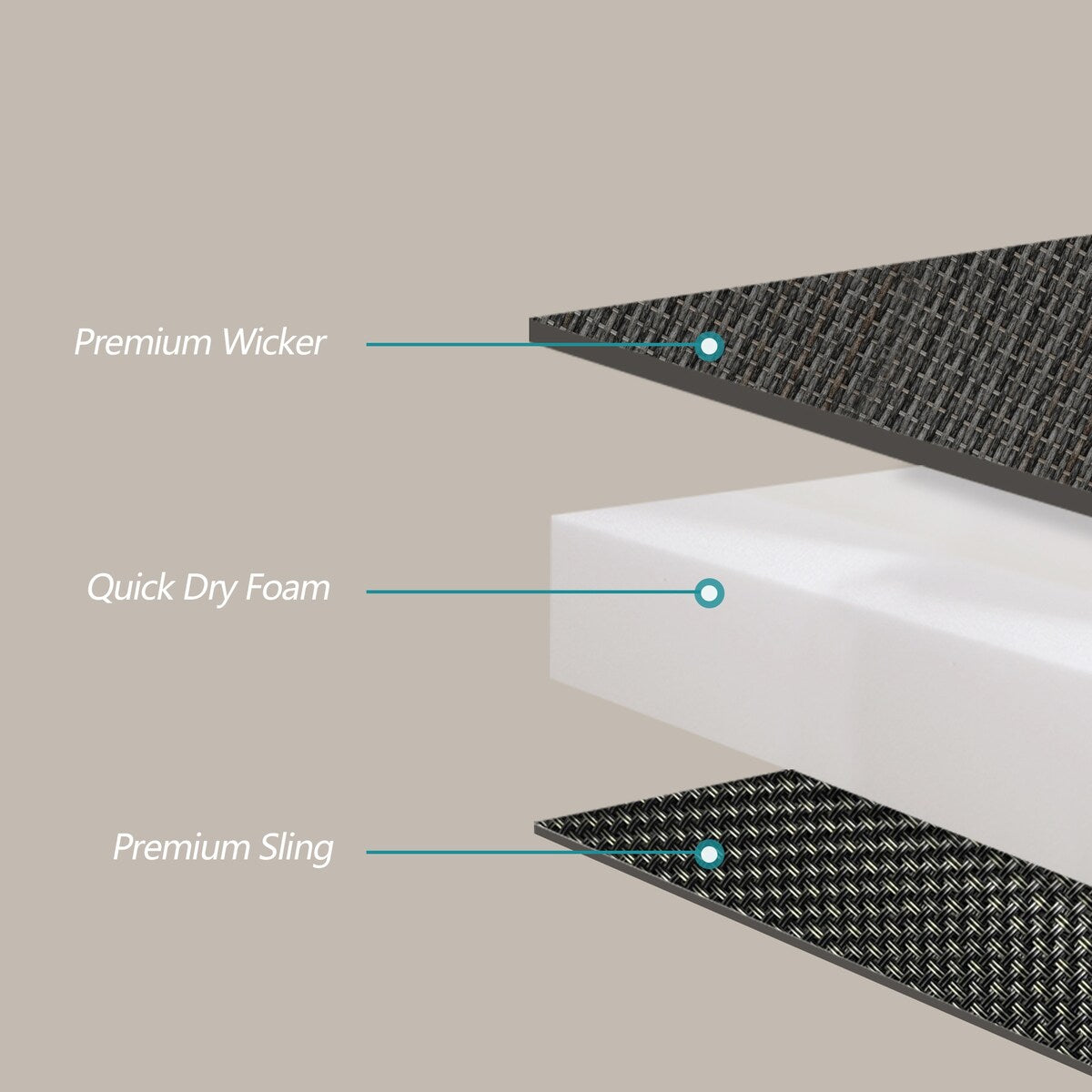 【Premium Materials】Crafted with handwoven premium PE rattan, weather-resistant and good flexibility, easy to clean and maintain. The seat padded with soft quick dry foam, creating ultimate in comforts.