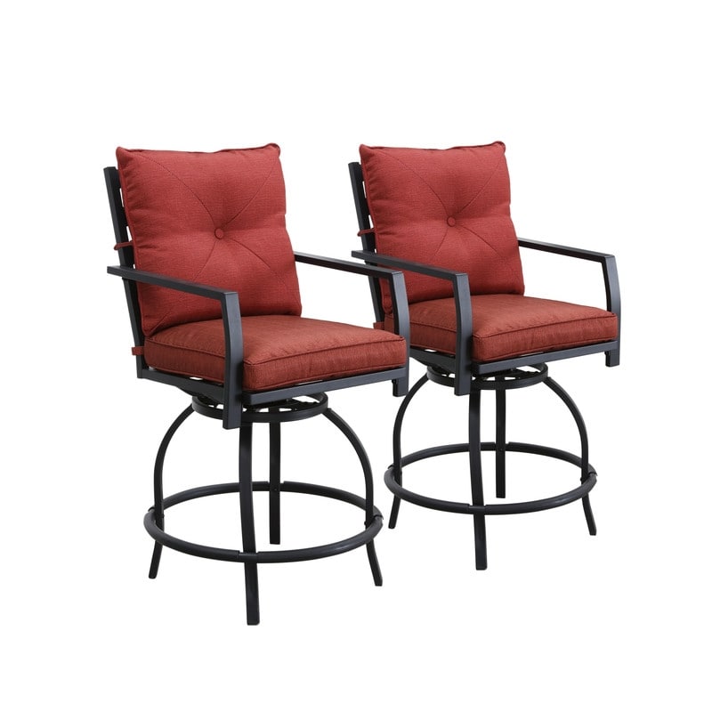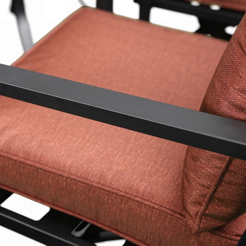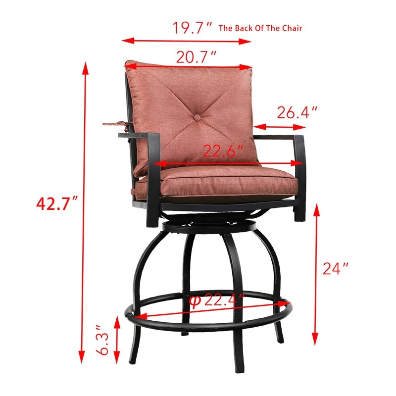 Classic four-leg and armrest design, the product is stable and durable, with left and right rotation function, with cushion and back cushion, it is a good choice for outdoor leisure time. This steel table is designed to live outdoors. It is perfect for placing on your patio. Understated enough for any sunny ensemble, it pairs a frame with a glass top taking on a rounded square silhouette. The bar table with an aluminum-plastic alloy tabletop, which is durable and not fragile. It has double fixing rings and a slot on the table foot, a convenient and labor-saving KD structure, generous dirt-resistant black spray. The upright bracket design and the four legs that open out make the chair more concise while ensuring the most important stability.