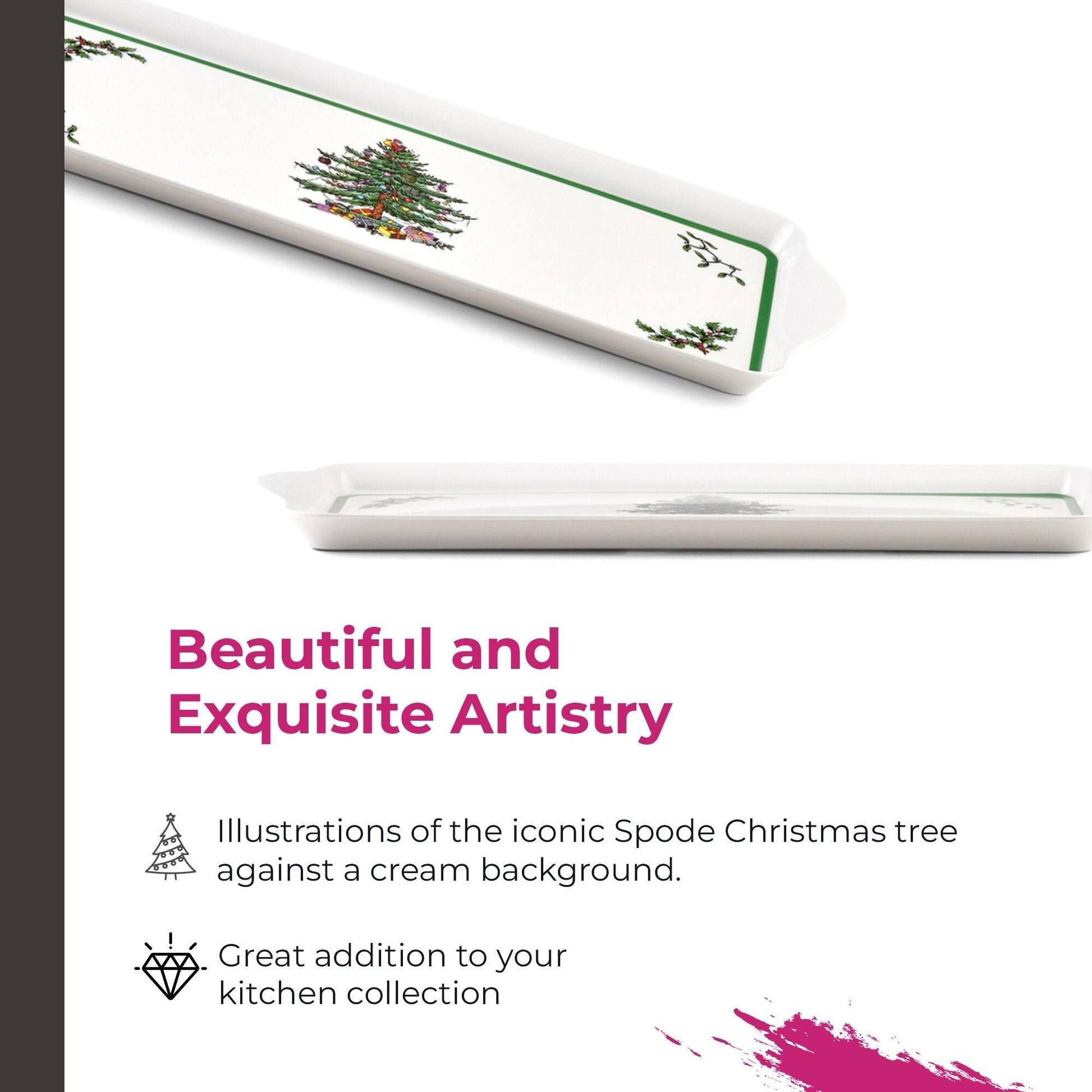 - Classic Christmas Tradition: The Spode Christmas Tree Collection is renowned for its traditional green-banded design that enhances any decorative tableware. This tray adds an elegant and nostalgic touch to your holiday table setting, ensuring your festive meals are beautifully presented.