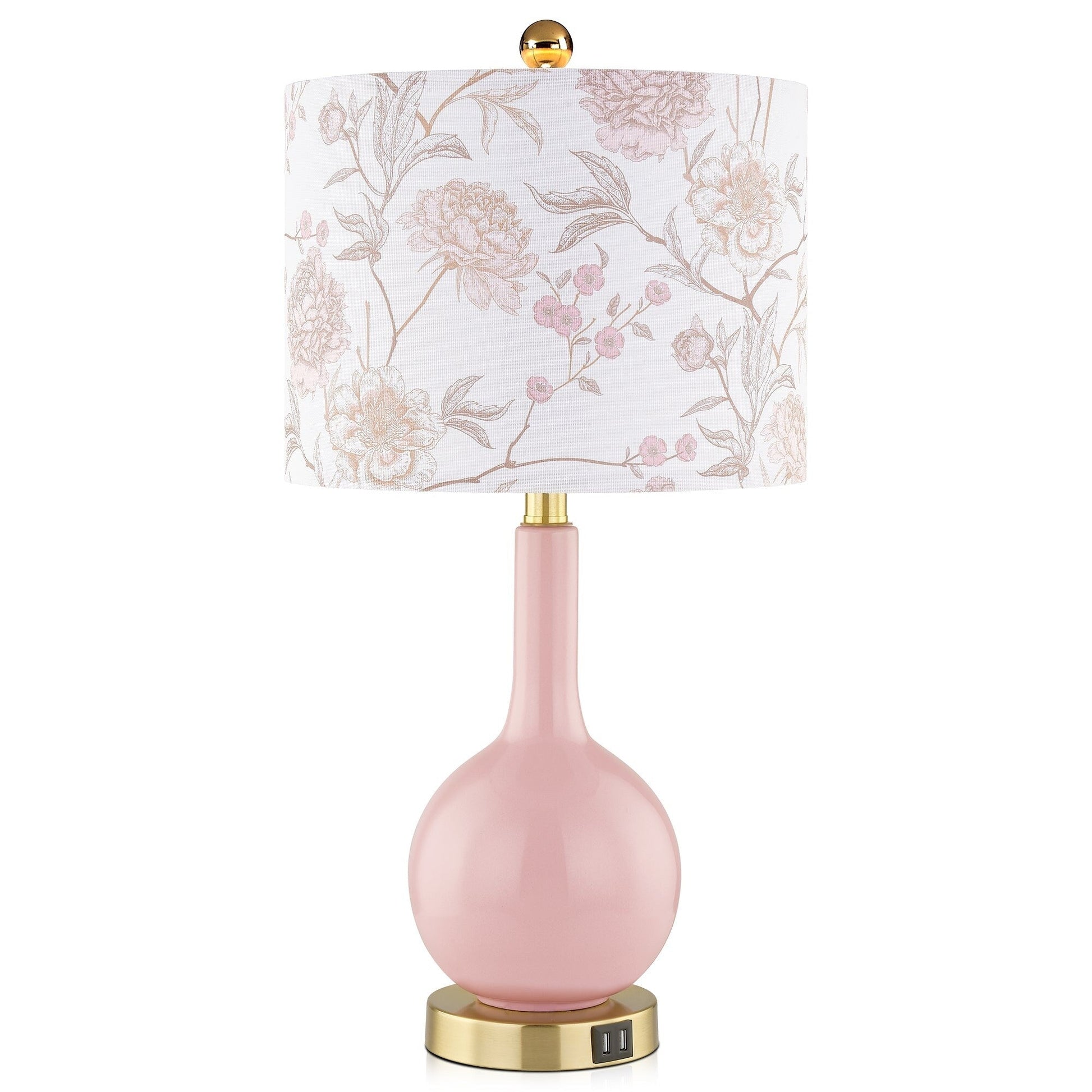 Pink Ceramic Table Lamp with 3-Way Touch Dimming Switch & Dual USB Charging Ports & - 12'' x 12'' x 24'' (L x W x H)