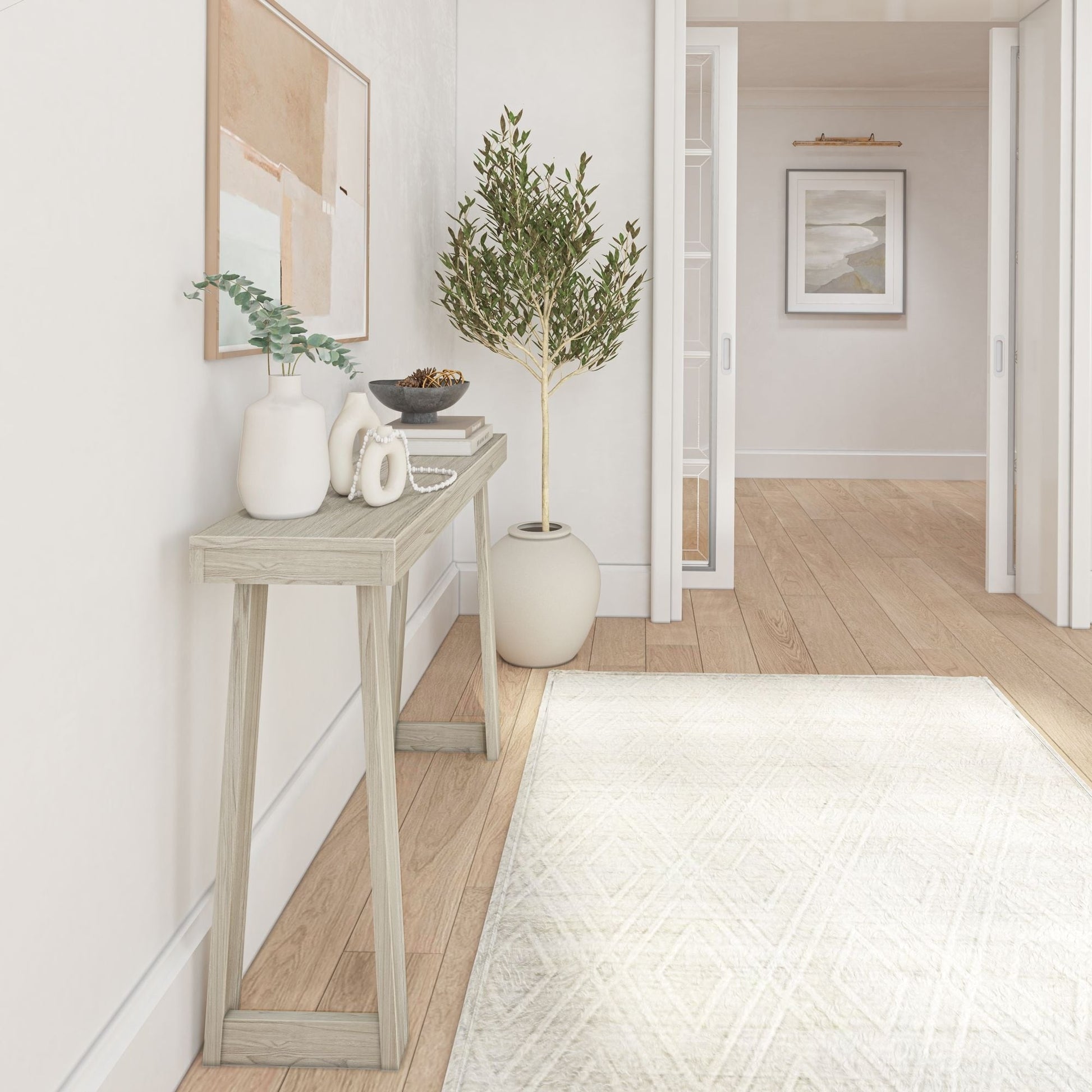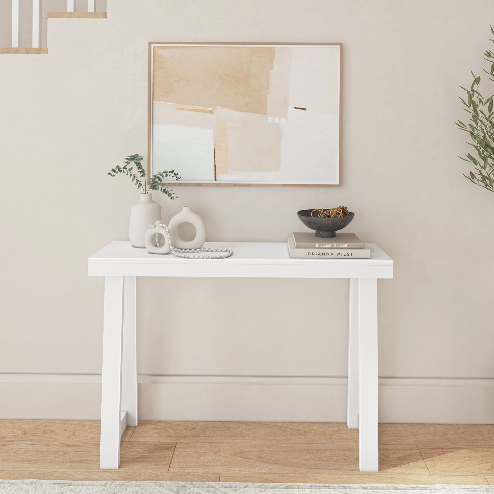 Bring timeless elegance to any room with the Plank+Beam Classic Console Table. The perfect combination of style and craftsmanship, this console table has a strong and sturdy design that complements any space. Knot-free, solid pine wood construction provides superior strength and durability, while non-toxic, low-VOC finishes create a clean and healthy home. Stylish and versatile, this console table is the ideal accent piece for your living room, dining room, bedroom, or entryway. Flush, color-matched hardware and beautiful neutral finishes create an elegant, sophisticated look that complements any room’s decor. Console table is easy to assemble with instructions, tools, and hardware included. Bring functional style to your spaces with the Classic Console Table from Plank+Beam.