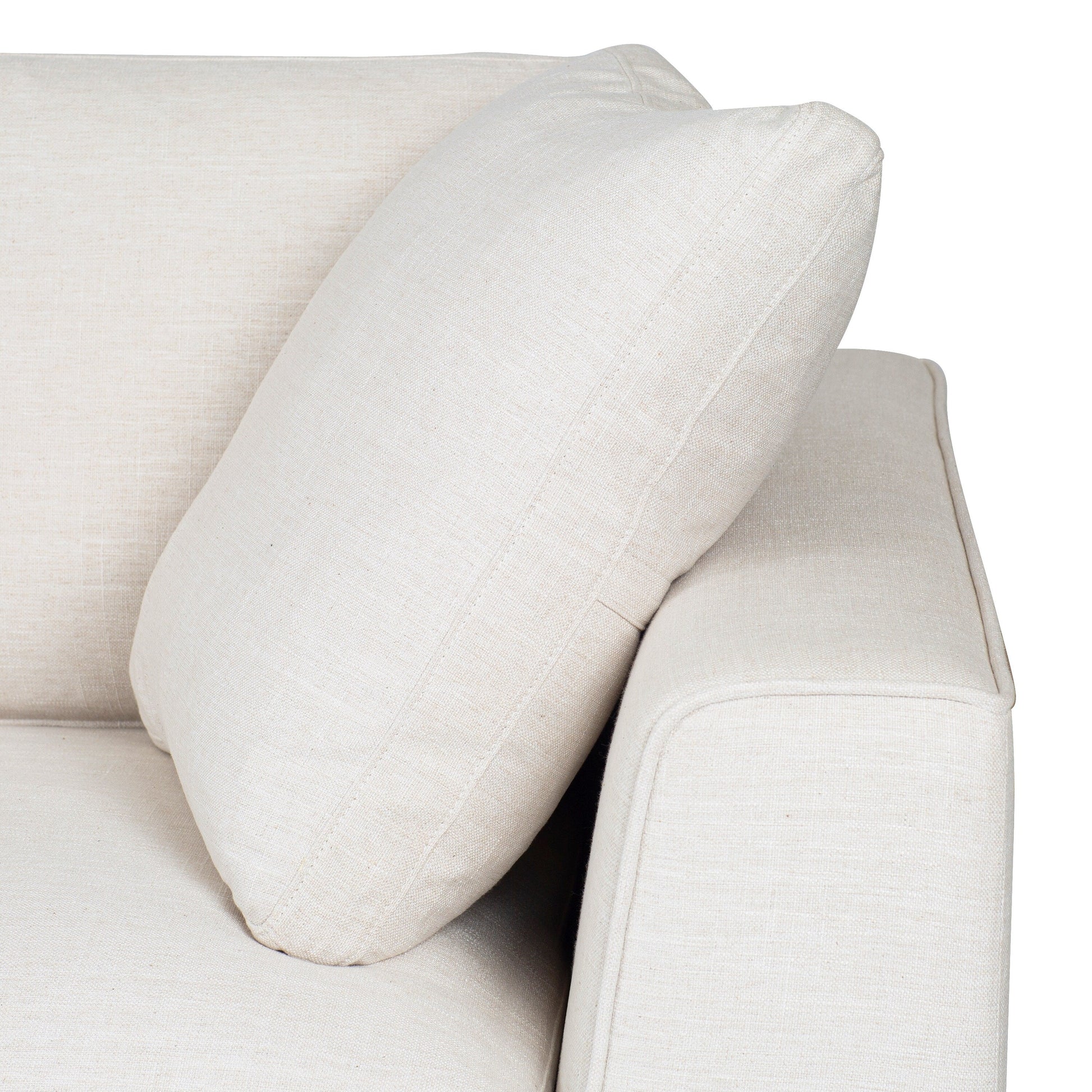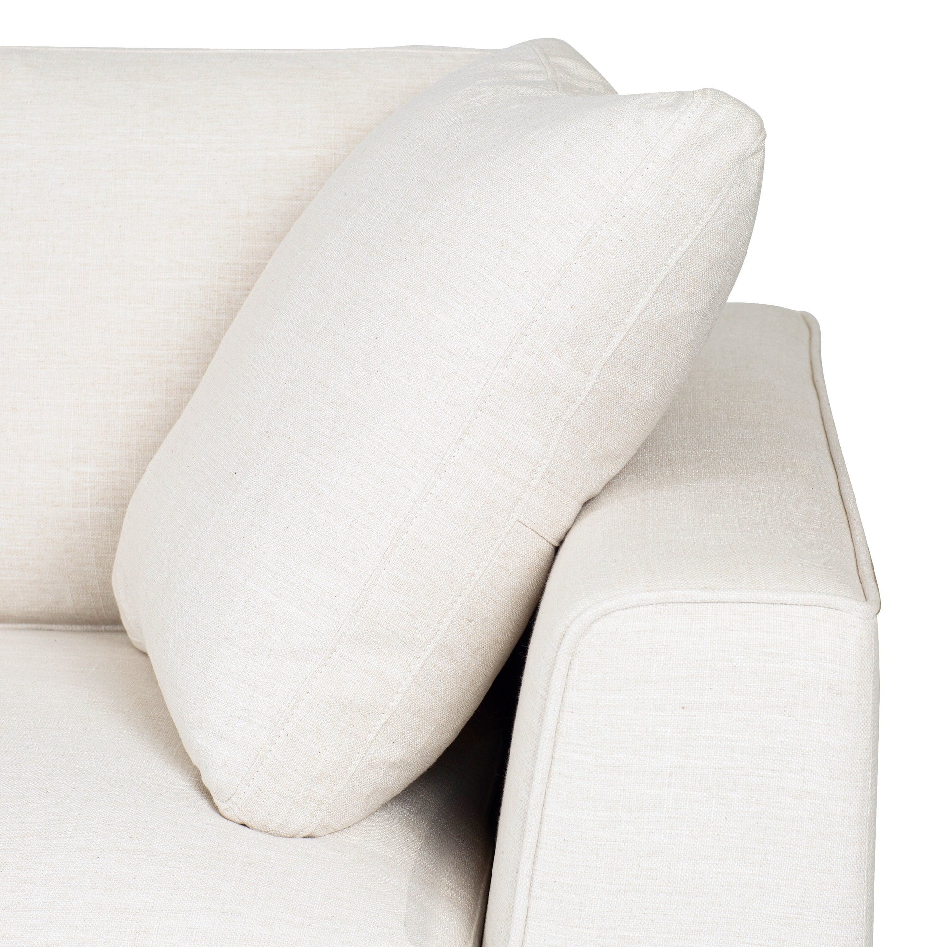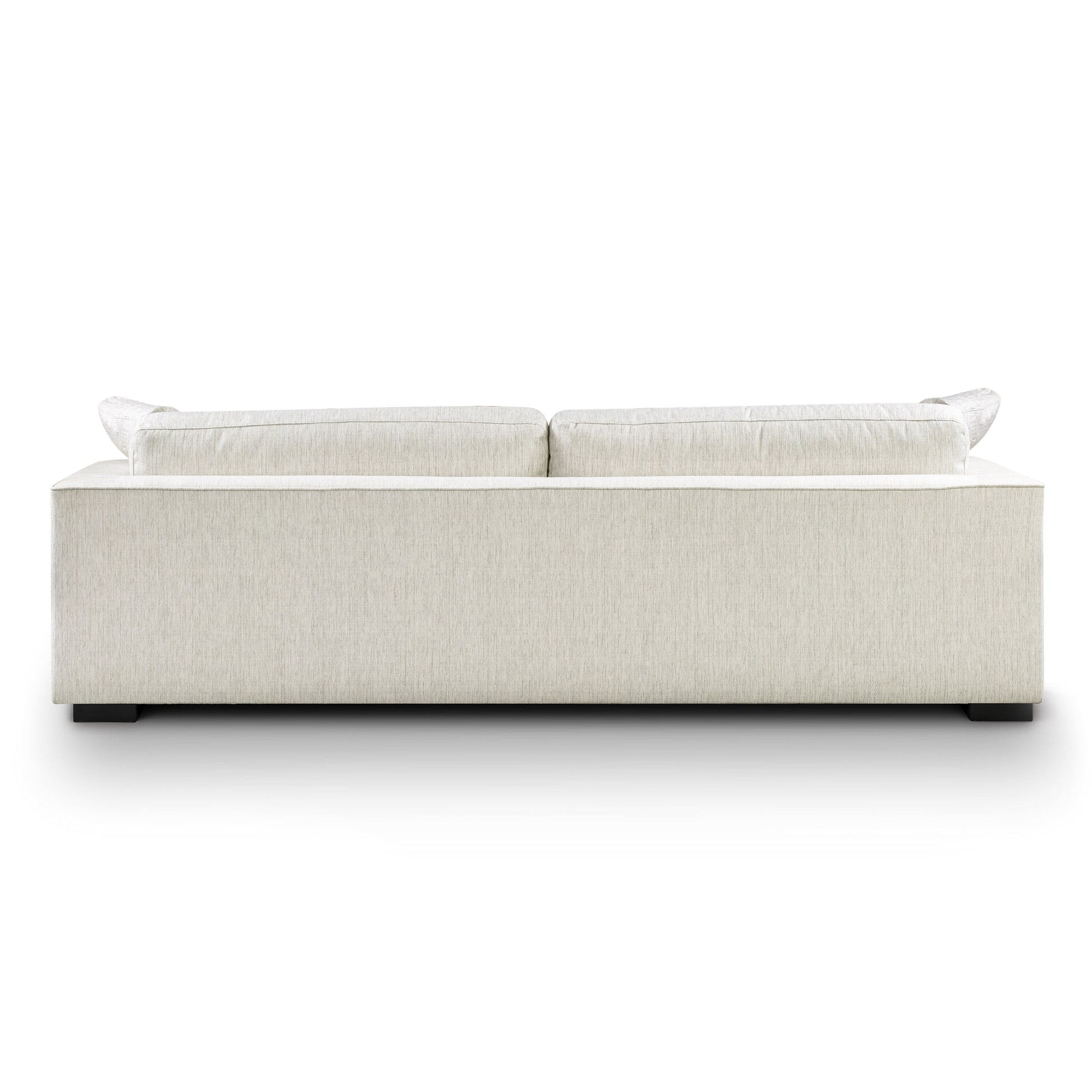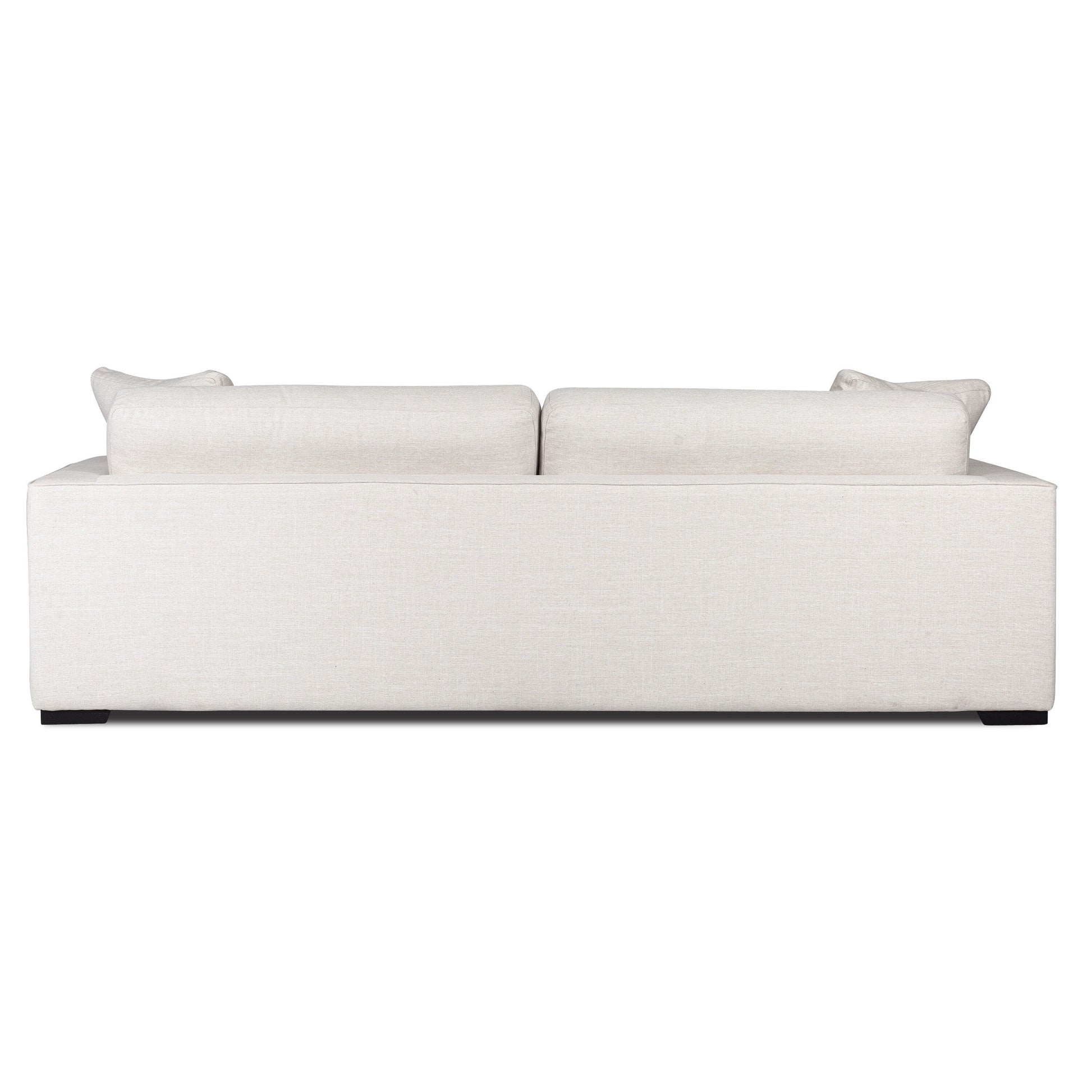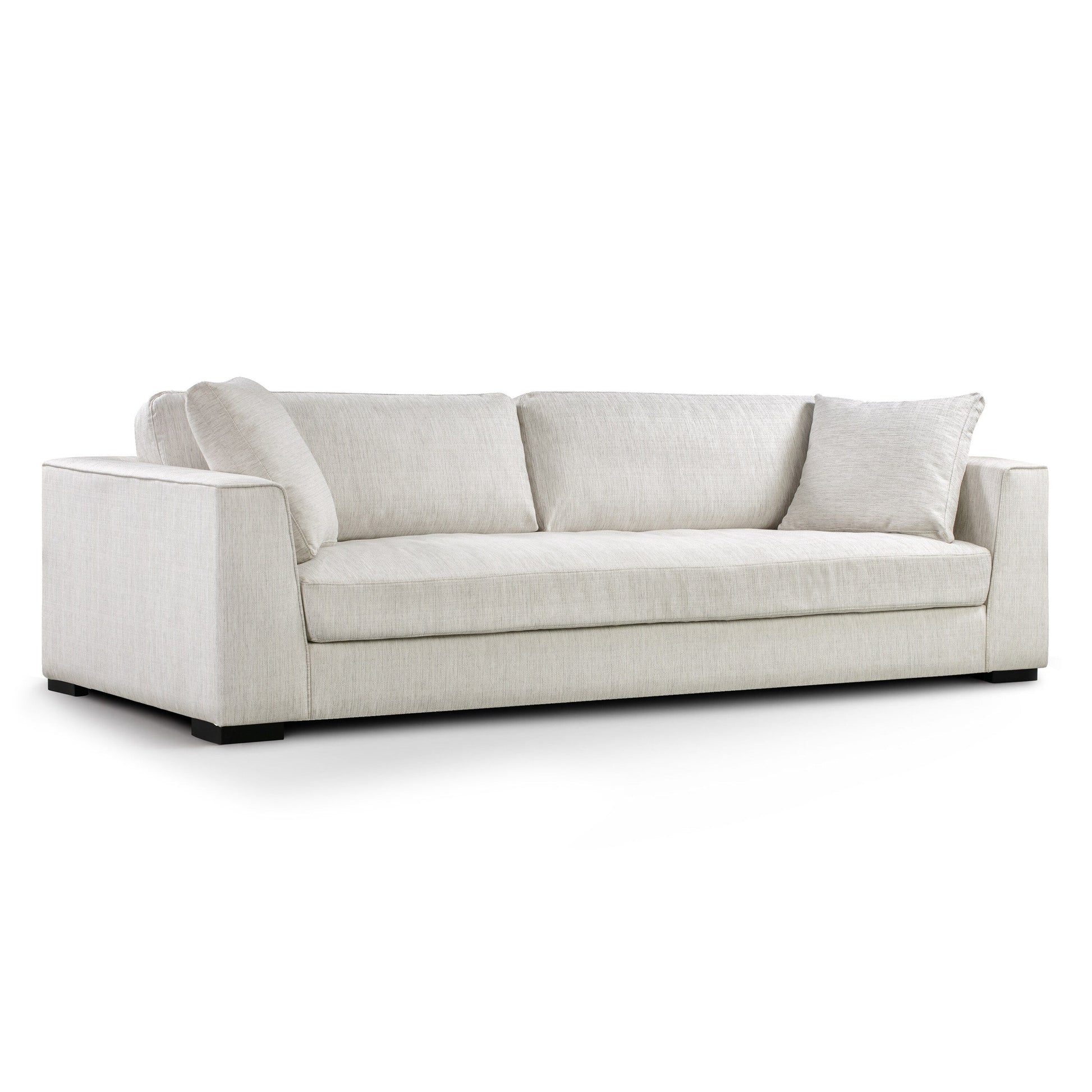 Sink into luxurious comfort with the Poly and Bark Upholstered Neutral Fabric Capri Sofa. This sofa is the perfect blend of relaxation and sophistication, with a layer of feathers and fiber cushions for exceptional softness. The corner-blocked solid wood frame and resilient rubber webbing provide superior support, while the low-profile legs add to the sofa's sleek silhouette. Upholstered in durable polyester fabric and available in Bright Ash or Birch White performance fabrics. Comes with two 100-percent down-filled throw pillows.