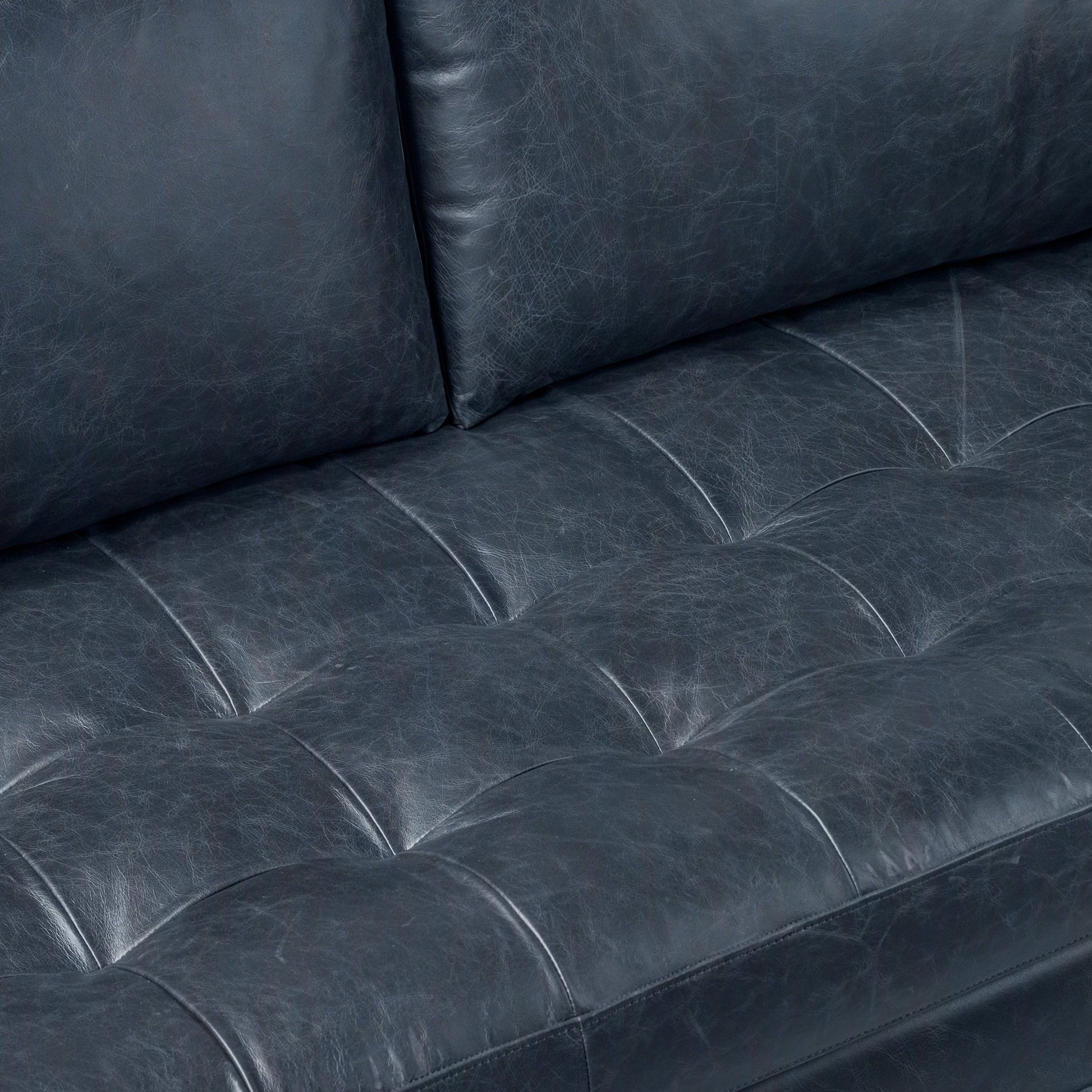 - Full-grain pure-aniline (cognac tan, nightfall blue) or semi-aniline (all other colors) dyed Italian tanned leather upholstery