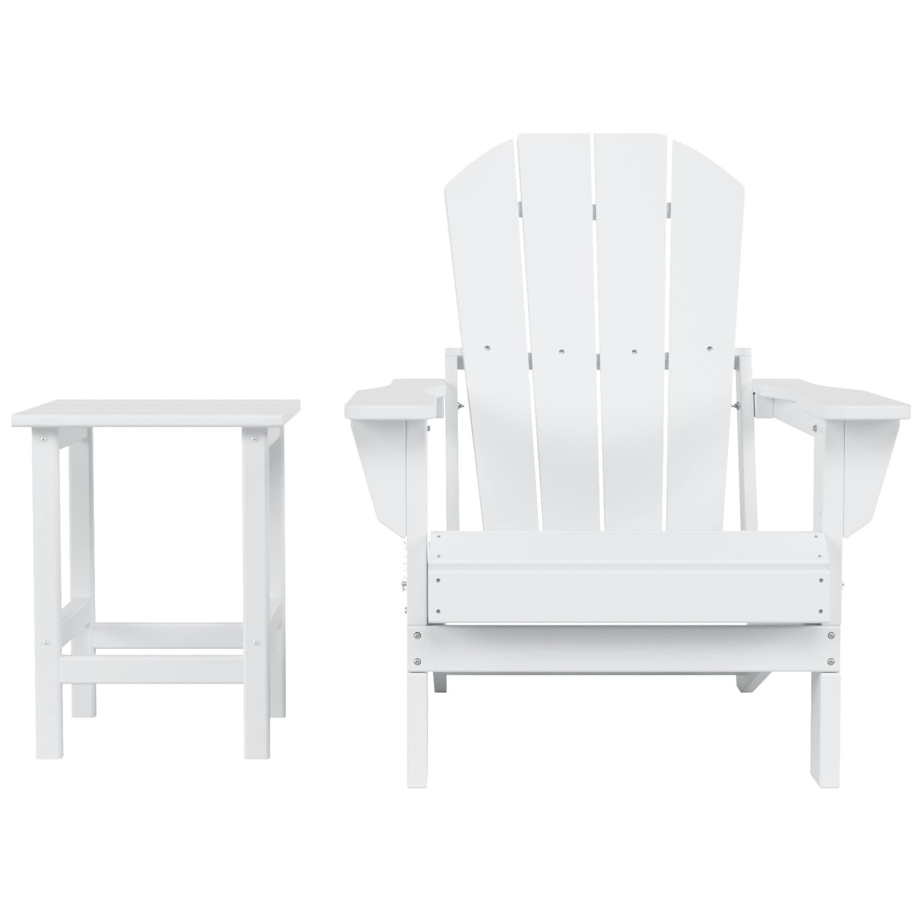 Polytrends Laguna Hdpe All Weather Outdoor Patio Foldable Adirondack Chair With Side Table (2-Piece Set)