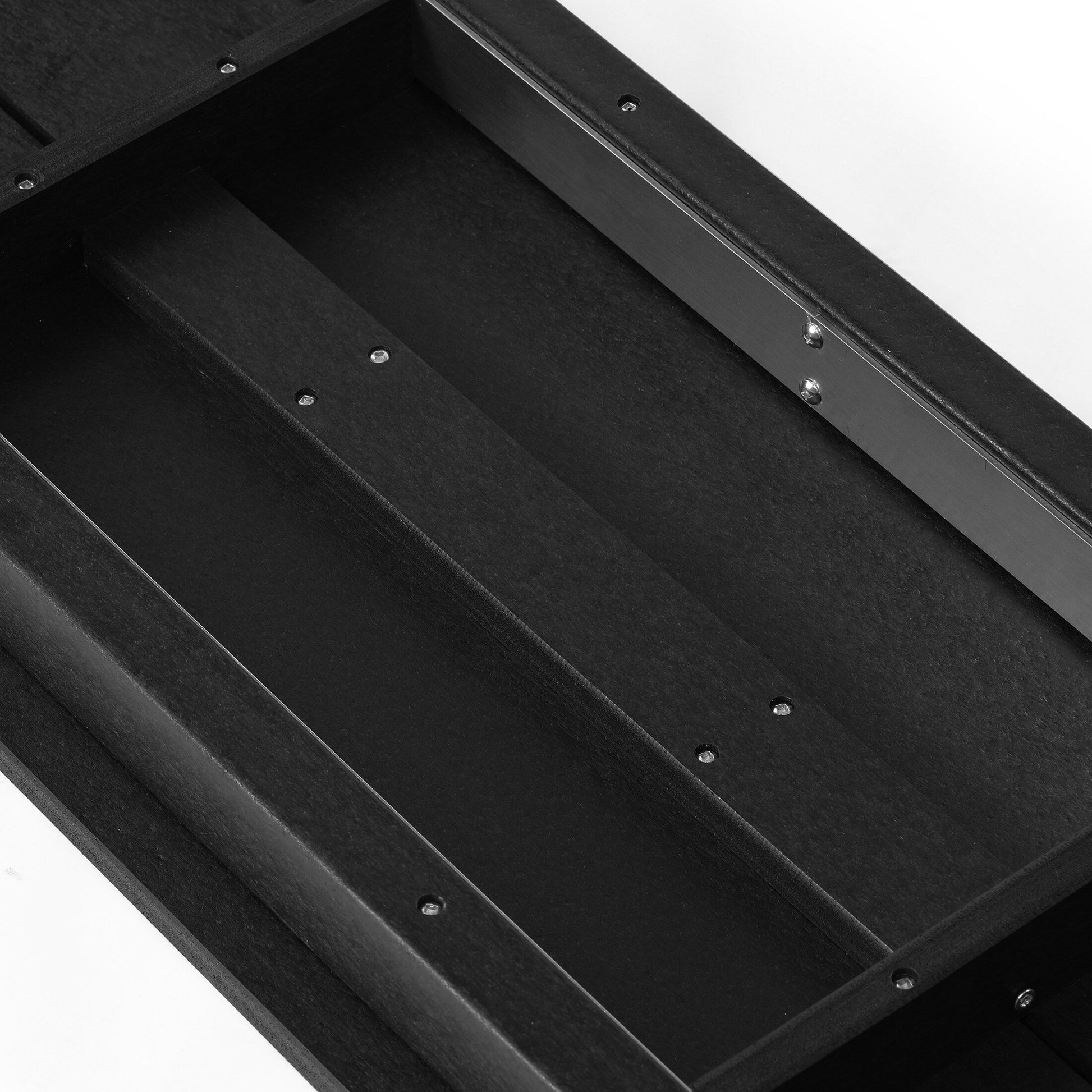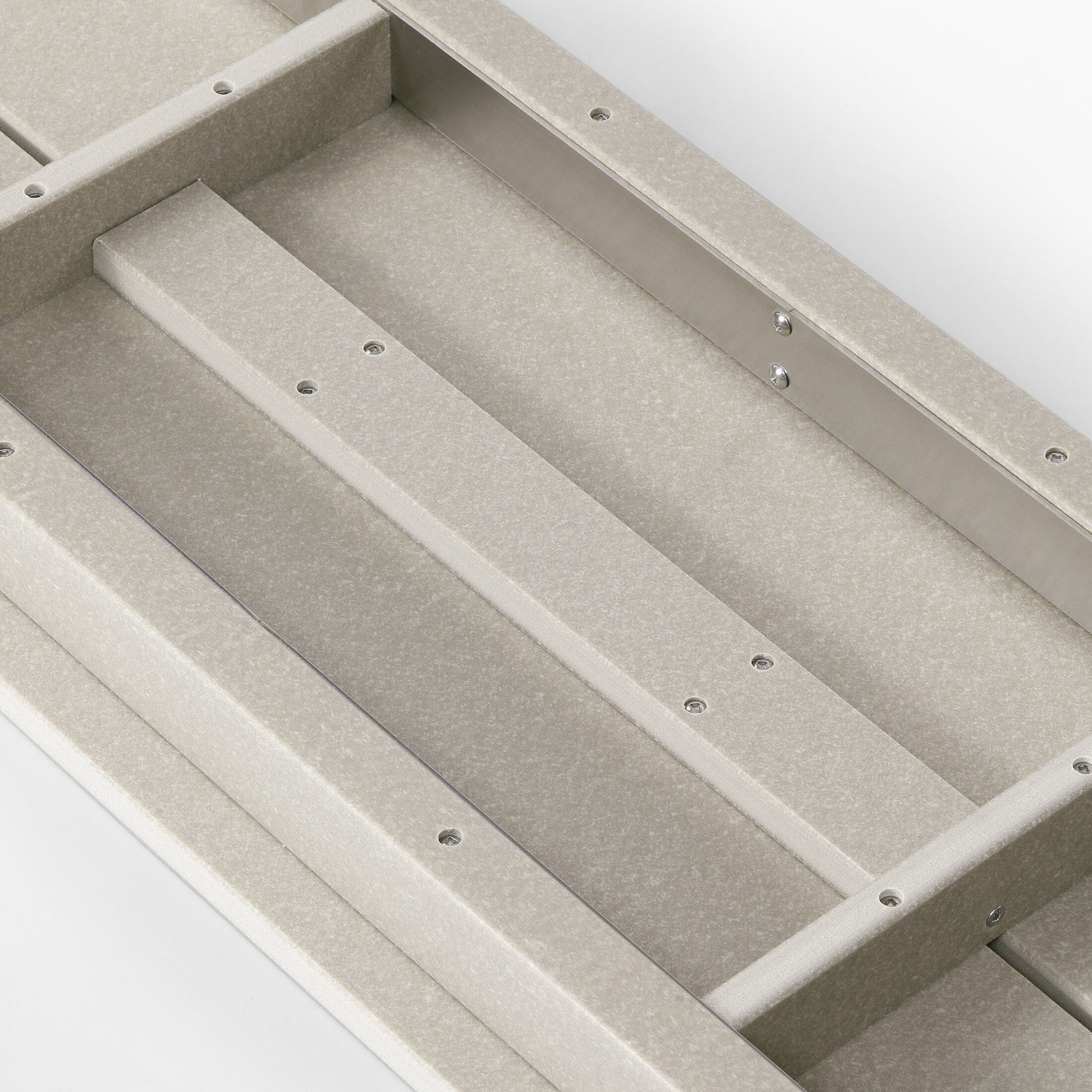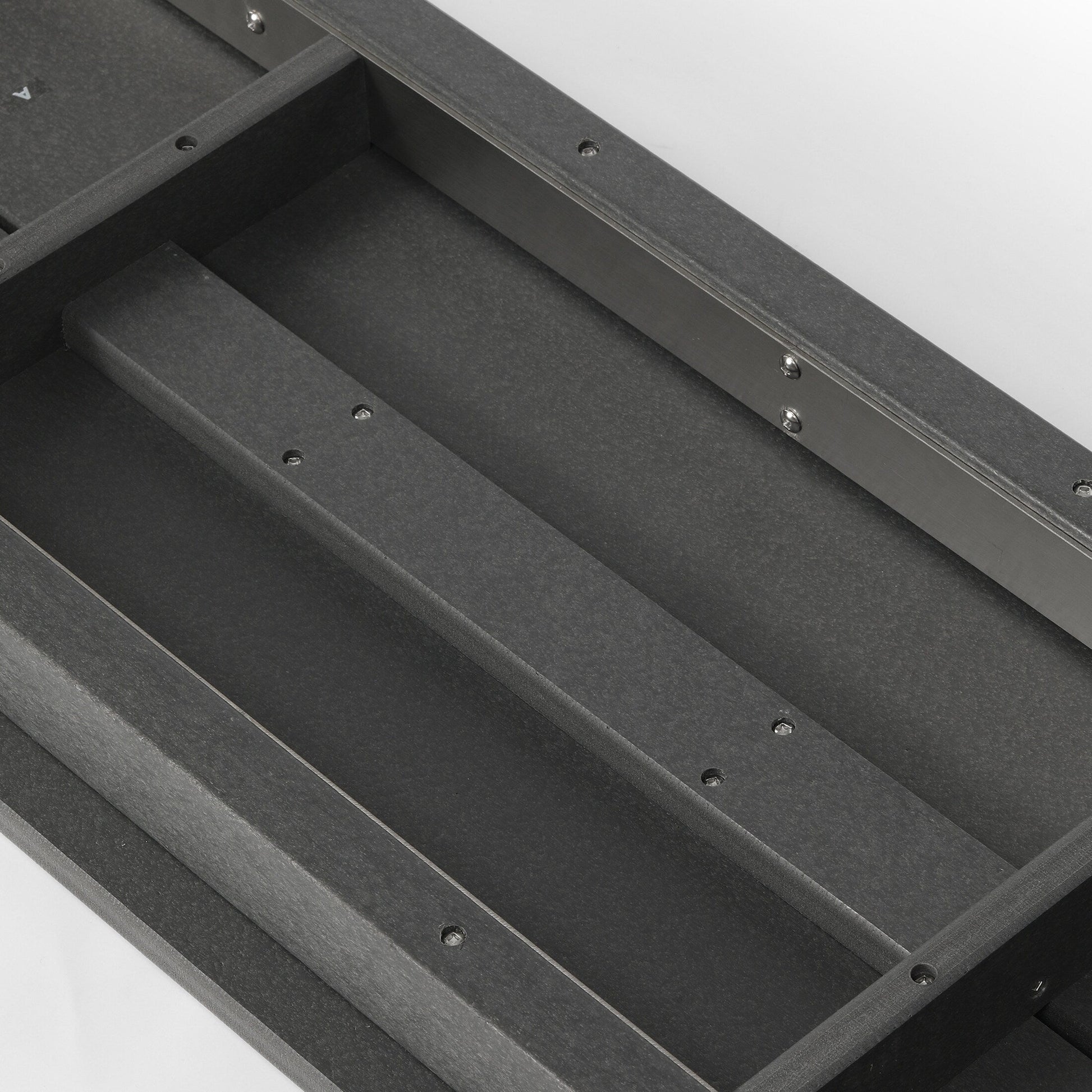- Reinforced beam under bench with stainless steel plates that run along the side skirts to ensure durability and strength all along the seat