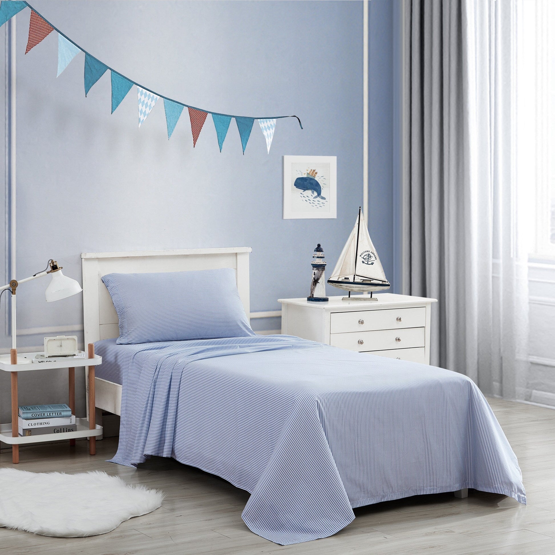 Introducing the new Poppy & Fritz Kids Bedding Collection- the perfect set for children of all ages. The printed sheet sets are available in a variety of stylish color and pattern options- which bring a fun and playful vibe to your bedroom decor. Sheet sets are constructed with crisp 100% percale cotton, perfect for a cool sleeping experience. All Poppy & Fritz Kids bedding products are CPSIA tested to ensure safety for children 12 and under. Sheet sets pair beautiful with additional Poppy & Fritz comforter or duvet sets, each sold separately. Ensembles are machine washable for easy care.
