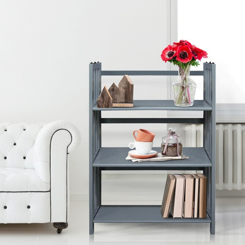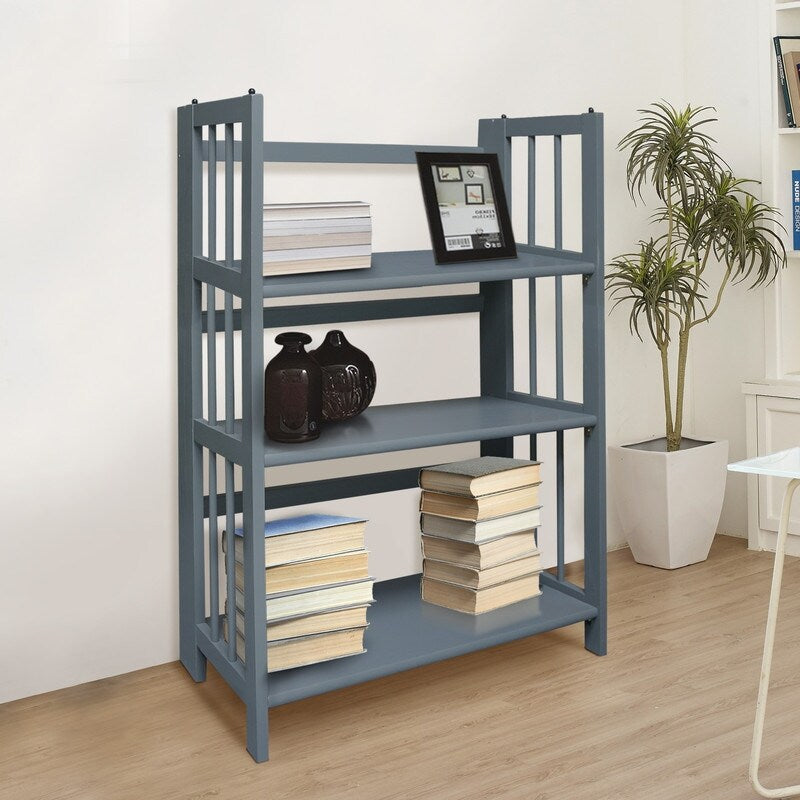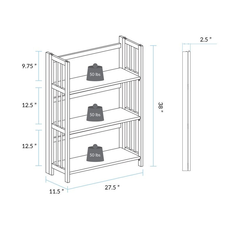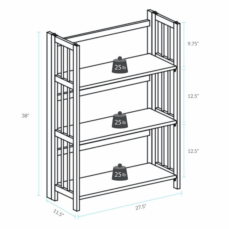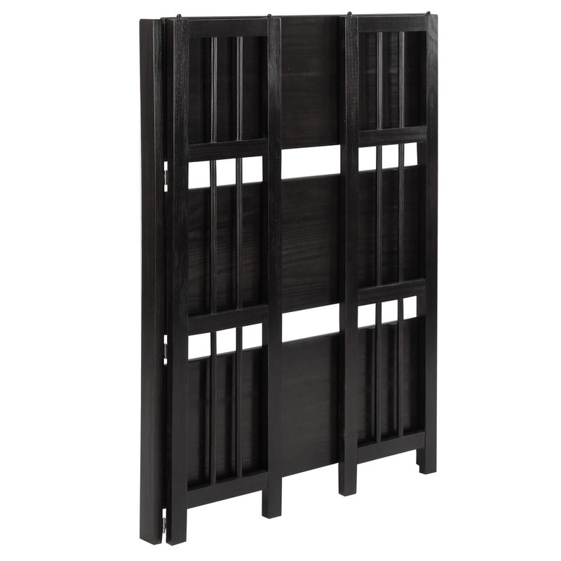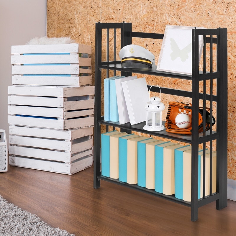 Designed with convenience and longevity in mind, this folding bookcase is a marvelous addition to the busy household. Ample storage is provided on the three durable shelves, and the foldable design makes transportation, storage, and rearrangement perfectly manageable. The solid wood construction is highlighted with your choice of handsome finishes to blend with your decor.