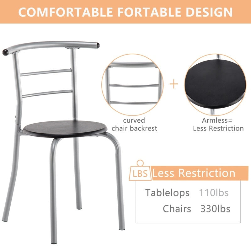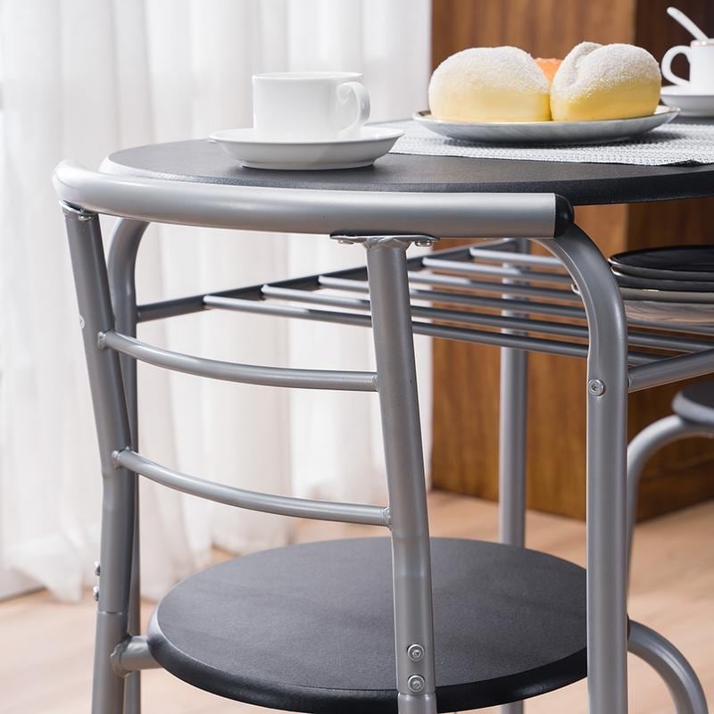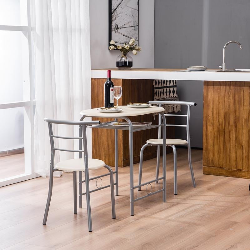 Create a stylish and comfortable dining area with the Matomandy metal bistro set from Porch & Den. This 3-piece set features a sturdy metal frame with an oval table and two rounded chairs, which have comfortable MDF and PVC seats. The set is available in black, beige, or brown finishes, making it a perfect fit for modern decor.