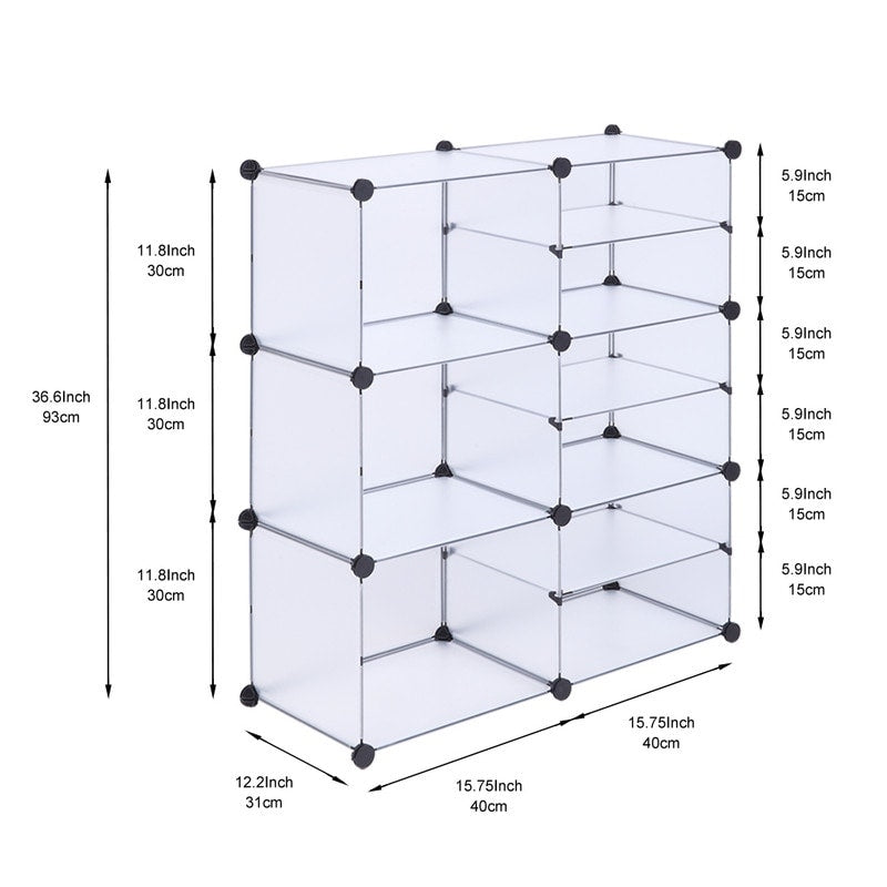 - Huge Space Size: 48'(W) x 12'(D) x 72'(H). Each cube can support up to 22 pounds, holding up to four pairs of adult shoes.