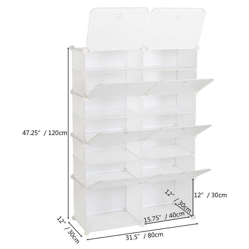 Keep your shoes organized and easily accessible with our Portable Shoe Rack Organizer Tower Shelf Storage Cabinet. This 12-tier shoe rack can hold up to 66-72 pairs of shoes and is perfect for your closet, entryway, or garage. The DIY modular design allows for easy assembly and customization, while the environmentally-friendly and easy-to-clean material ensures long-term use. Please note: Larger shoes will require more room. Please measure your shoes and compare to the dimensions below.