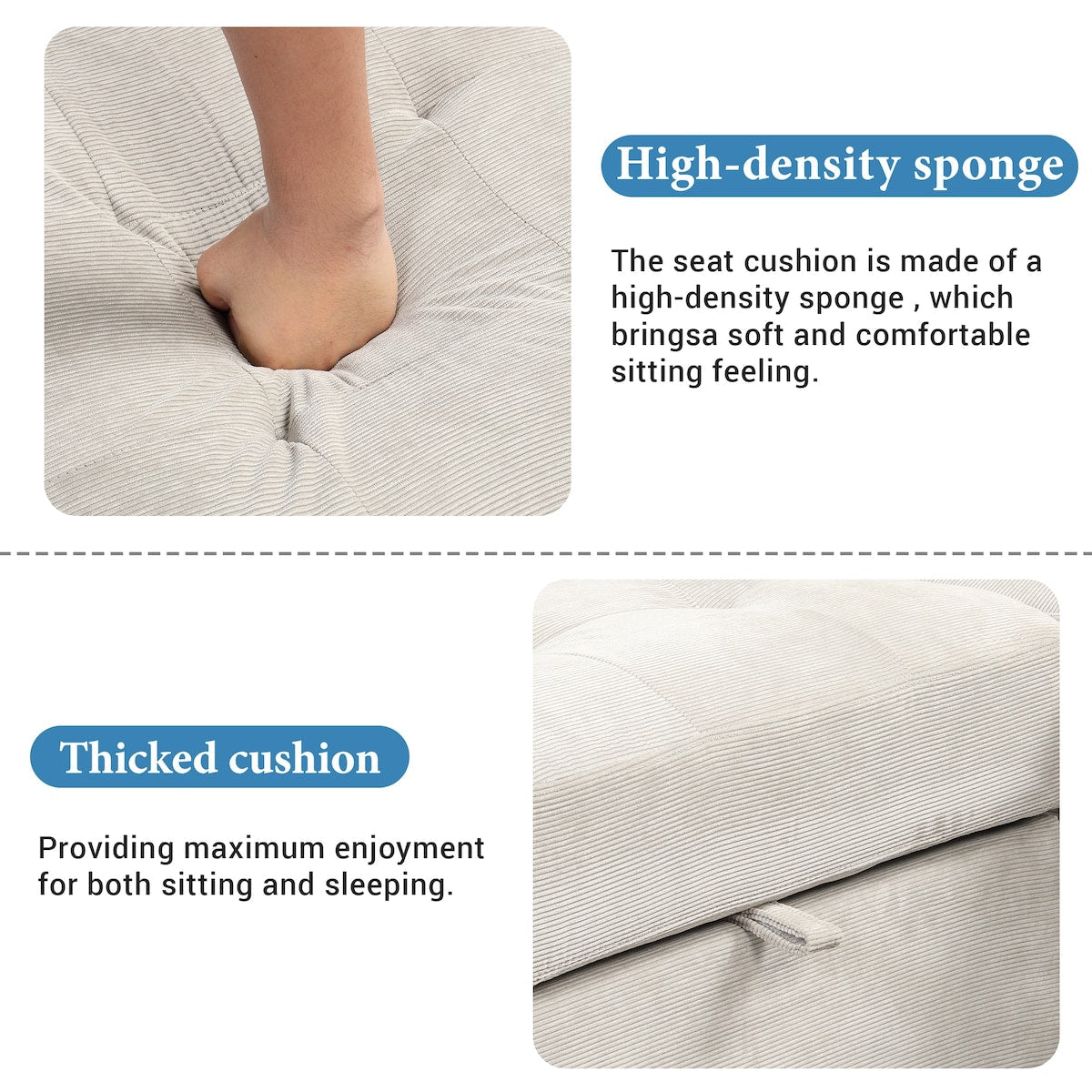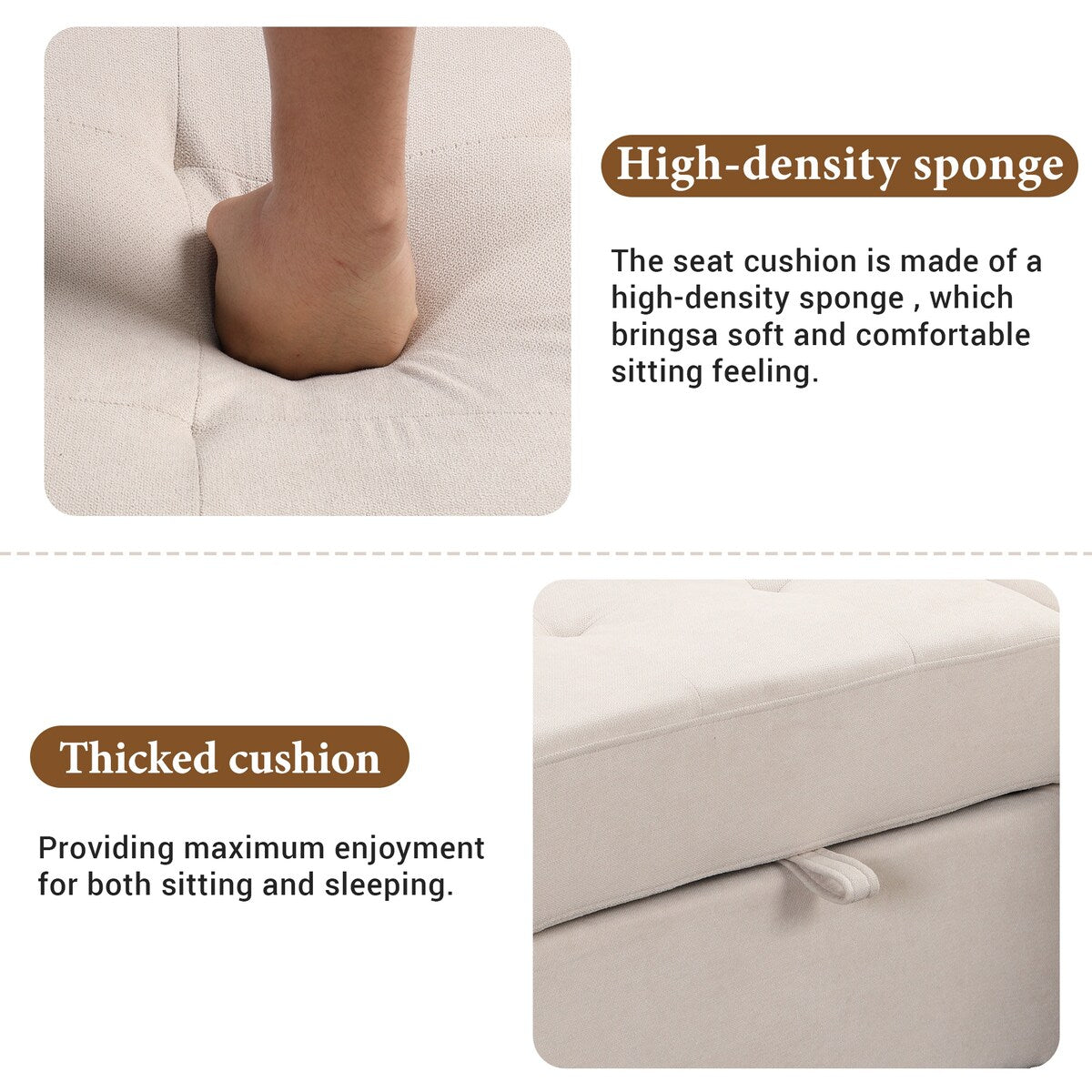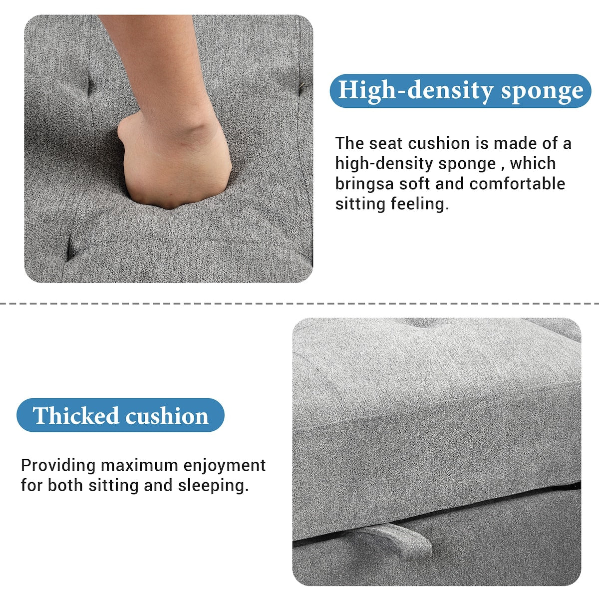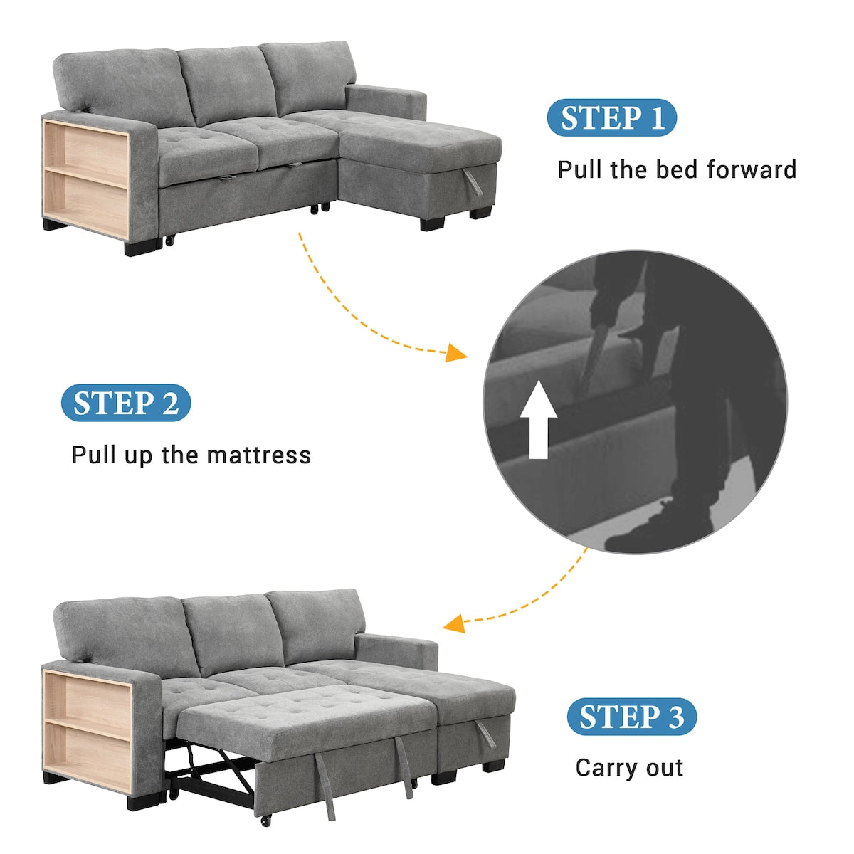- Multiple storage options with a spacious pull-out bed and an light chaise lounge.