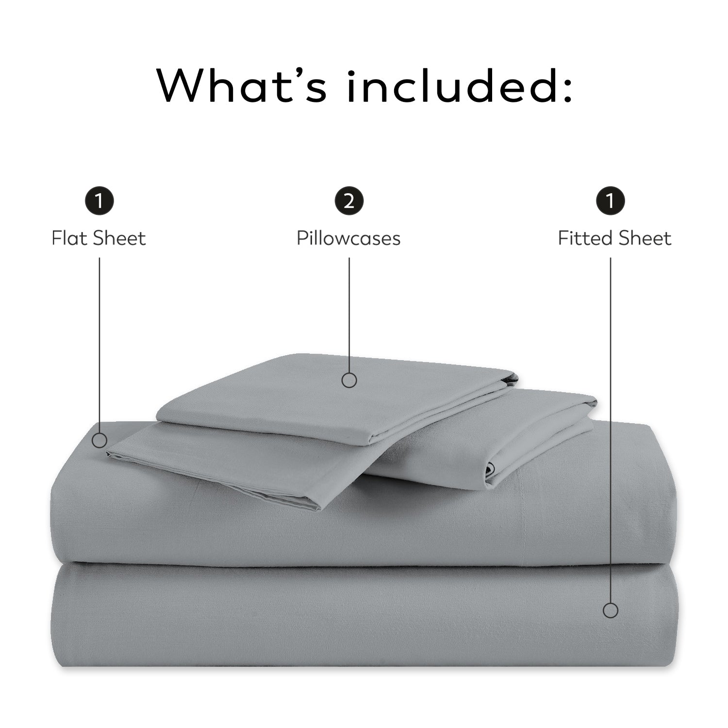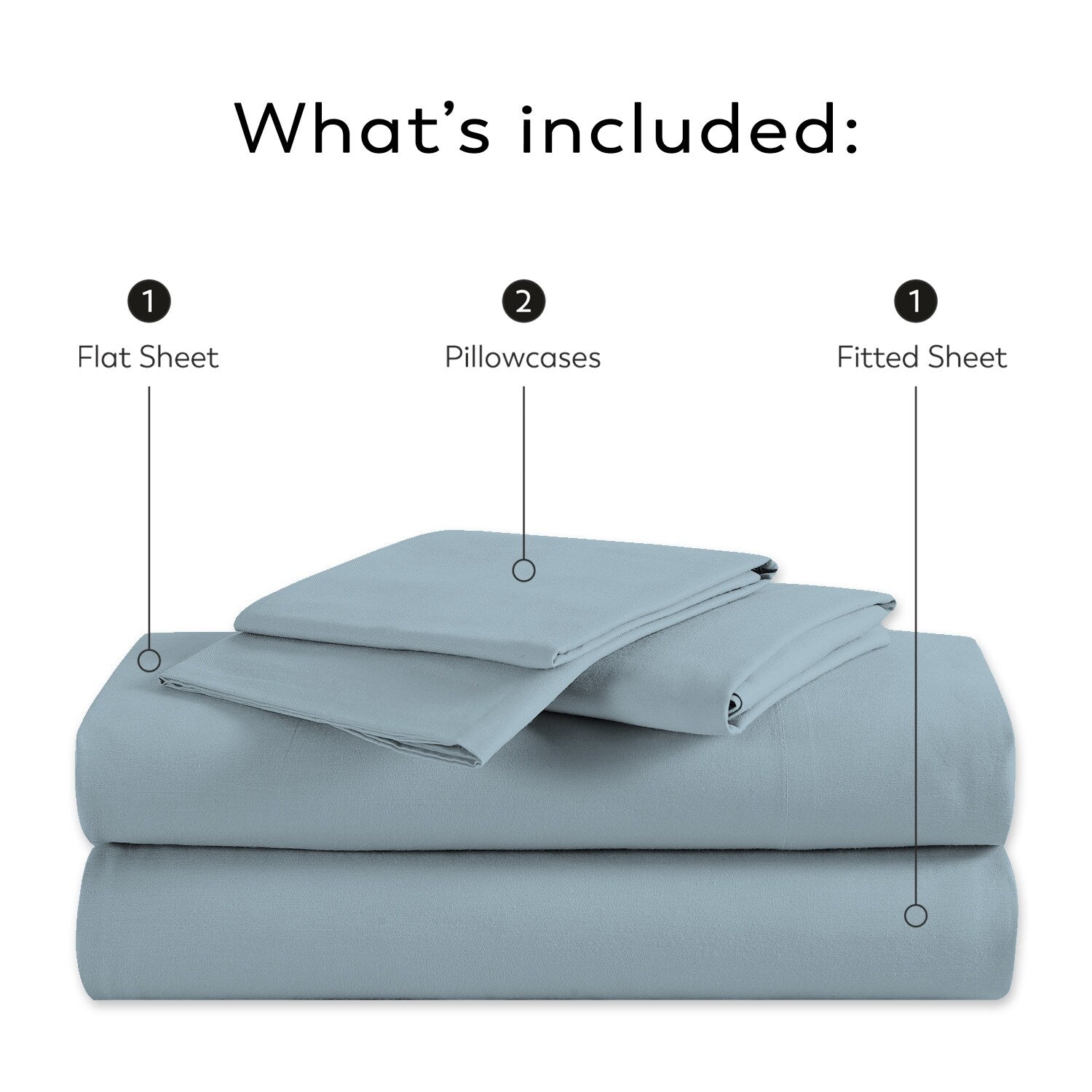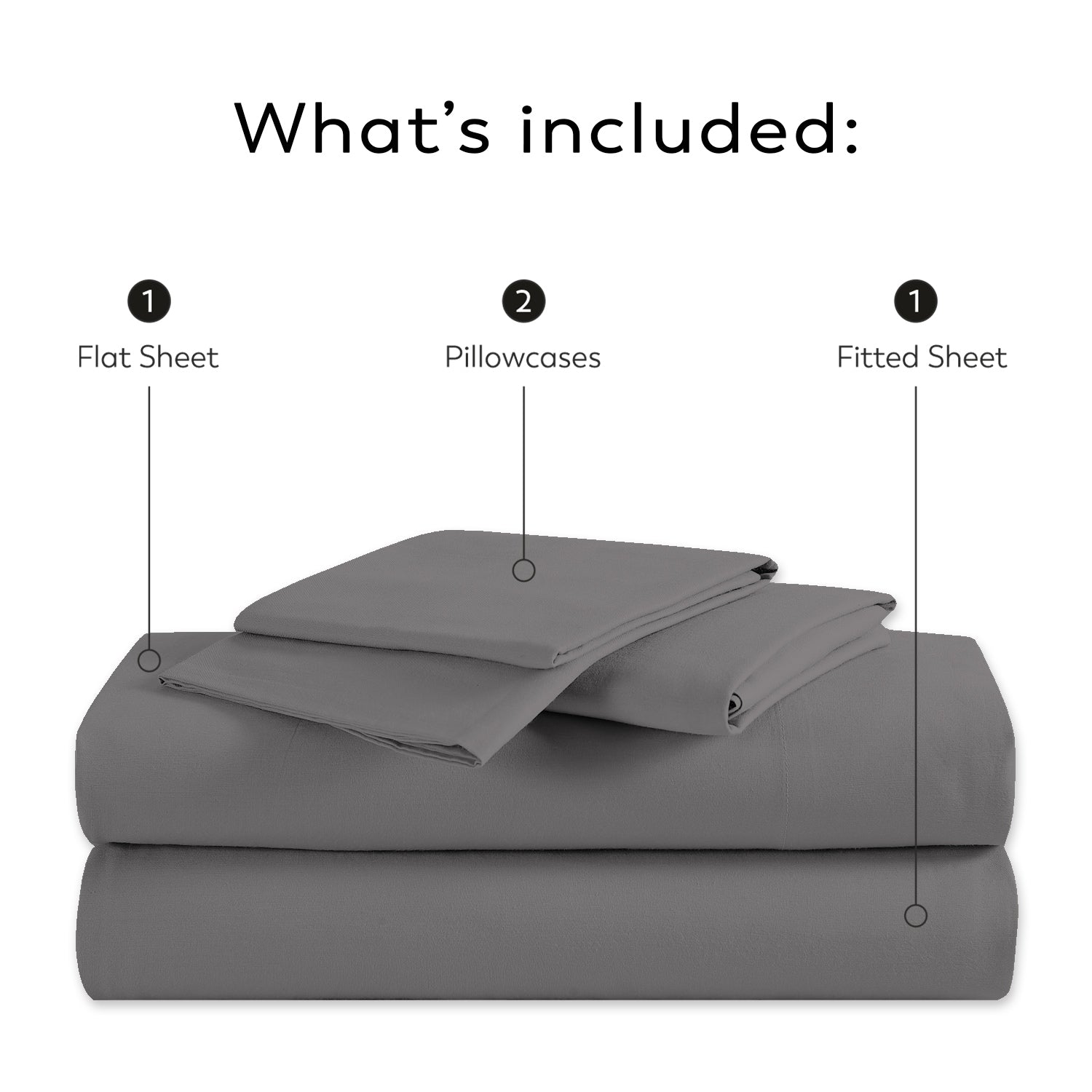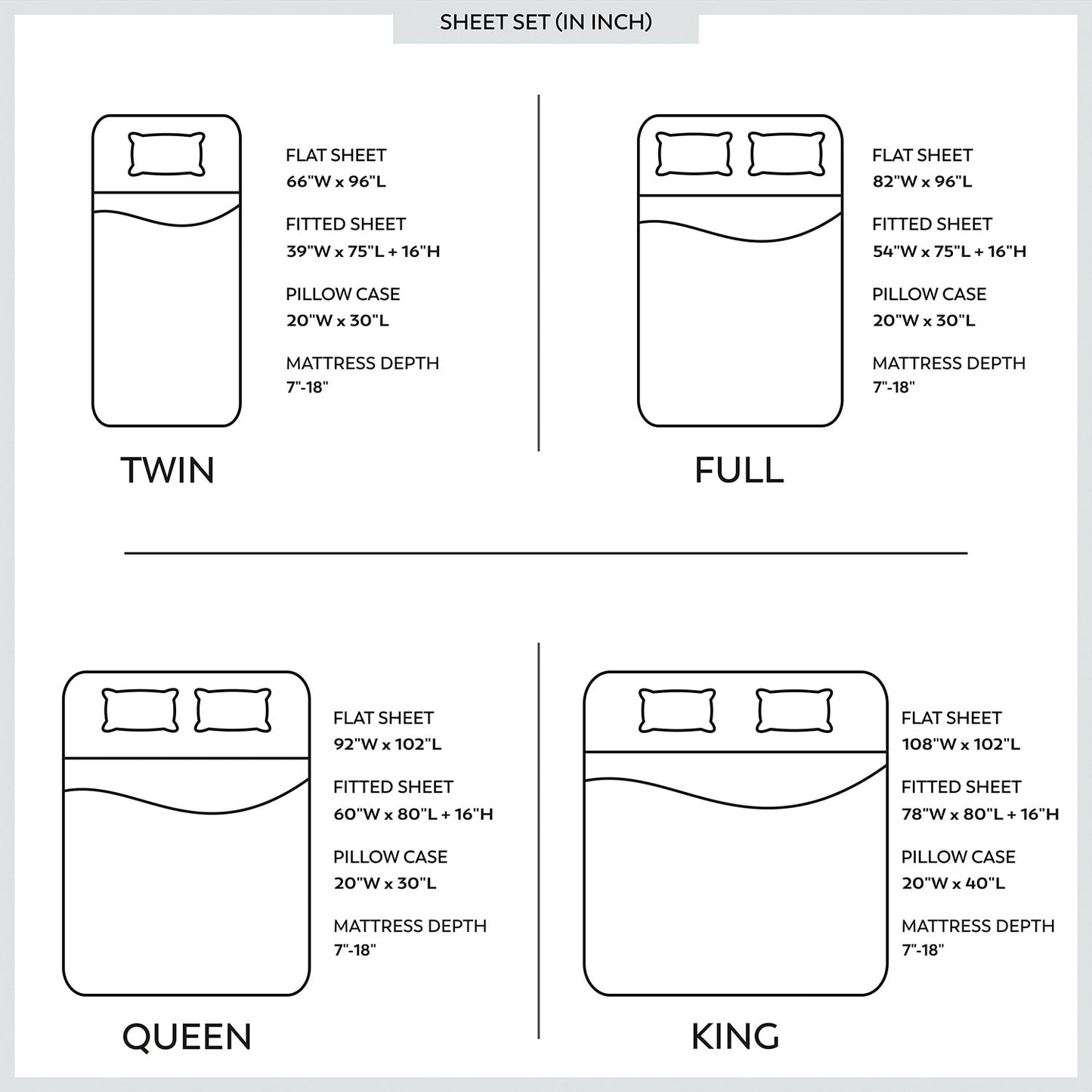 • Full, Queen, and King sizes come with 2 pillowcases, 1 fitted sheet & 1 flat sheet
