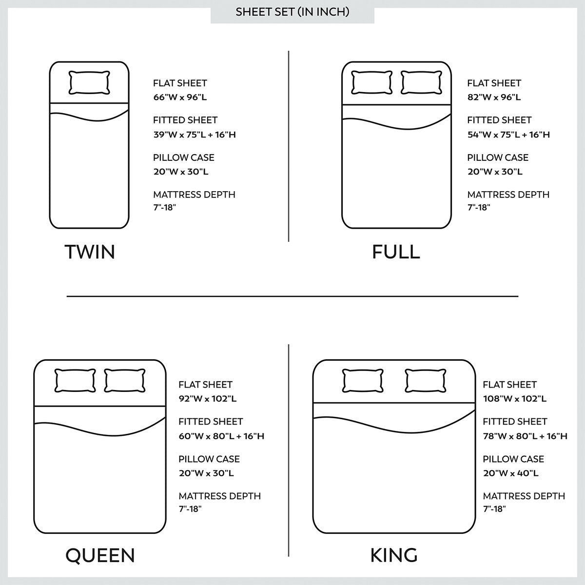 Transform your bed into a plush retreat with the Purity Home 400TC 100% Cotton Super-soft Sheet Set. Made using 100% cotton, this sheet set features a sateen weave that's unimaginably soft and silky for a night sleep that's unmatched to none. Also, complementing the colors, the sateen weave creates a subtle sheen to elevate the look and feel of any modern decor. This high-quality sheet set comes in Twin, Full, King, and Queen sizes to best suit your need.Product Features• 400-thread count coupled with 100% cotton for exceptional comfort• Unimaginably soft, durable, and wrinkle resistant• Treated with less harsh chemicals for a safer and healthier night's sleep• Certified by STANDARD 100 by OEKO-TEX® for credible safety and reliability• Flat and fitted sheets fit up to 18' mattresses • Fitted sheet comes with head/foot tag• True Grip patented fit technology allows for a snug fit assembly, keeping the sheet intact in placeSizing:Twin DimensionsFlat sheet: 66 inches wide x 96 inches longFitted sheet: 39 inches wide x 75 inches longPillowcases: 20 inches wide x 30 inches longFull DimensionsFlat sheet: 82 inches wide x 96 inches longFitted sheet: 54 inches wide x 75 inches longPillowcases: 20 inches wide x 30 inches longQueen DimensionsFlat sheet: 92 inches wide x 102 inches longFitted sheet: 60 inches wide x 80 inches longPillowcases: 20 inches wide x 30 inches longKing DimensionsFlat sheet: 108 inches wide x 102 inches longFitted sheet: 78 inches wide x 80 inches longPillowcases: 40 inches wide x 20 inches long