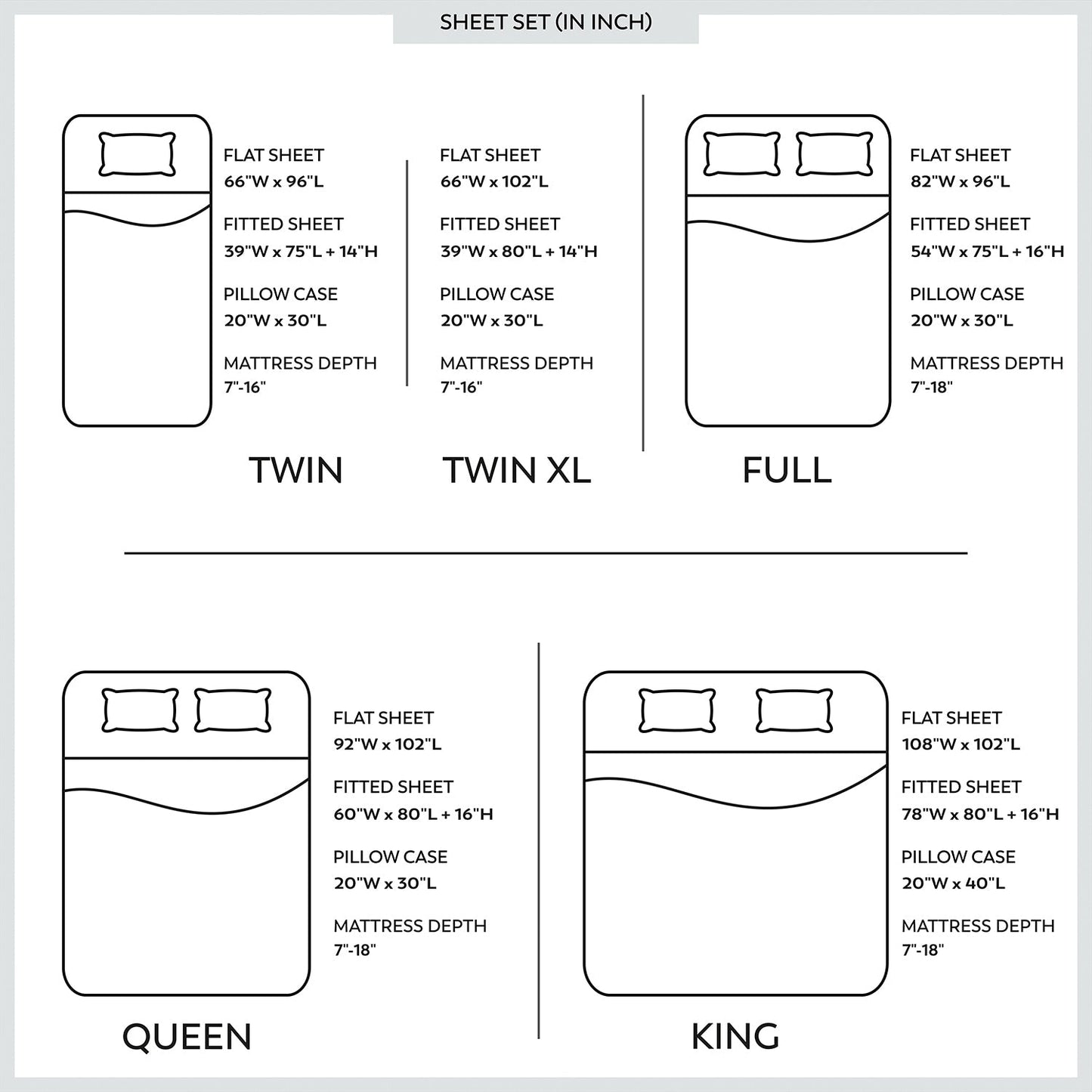 • Twin & Twin XL sizes come with 1 pillowcase, 1 fitted sheet & 1 flat sheet