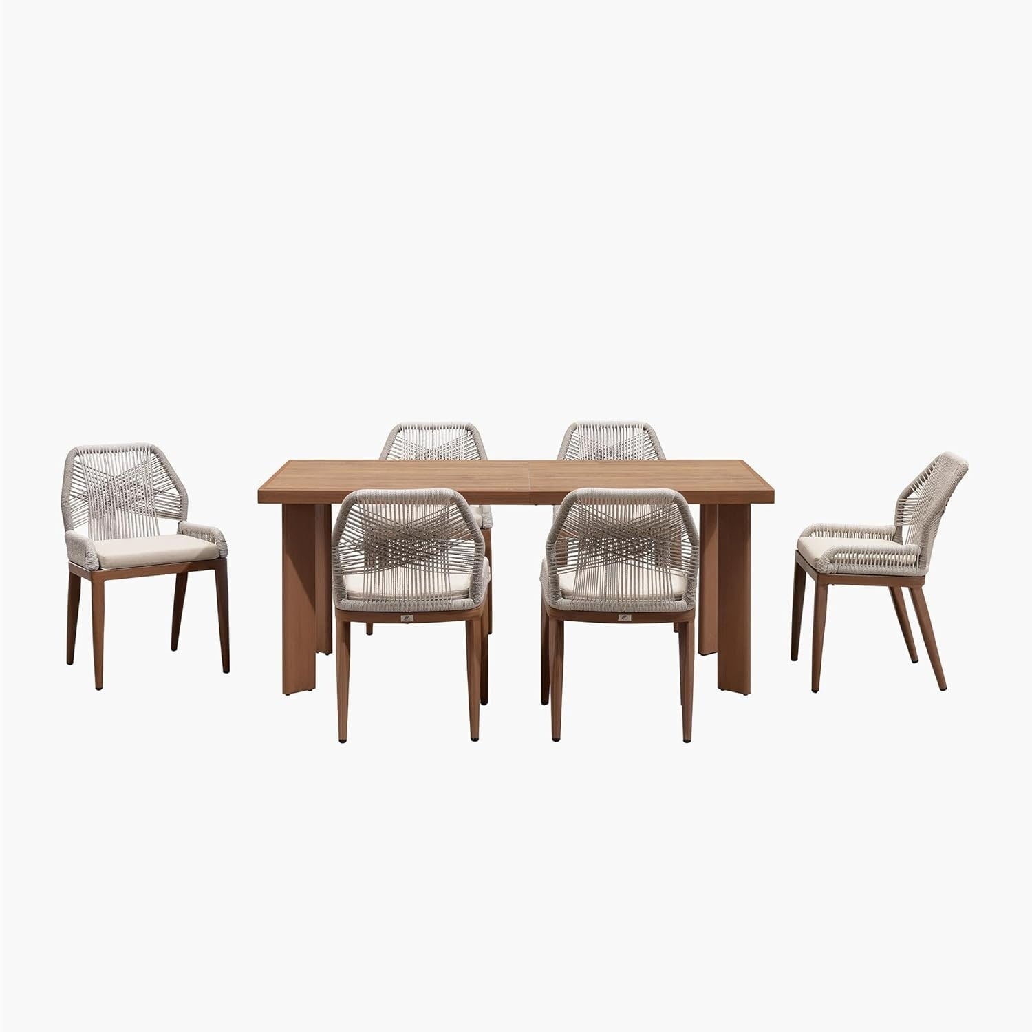 This outdoor patio aluminum dining set is sure to help make your backyard become the go-to neighborhood spot for warm-weather barbecues and fulfill your purpose to decorate the area you desire. Our patio furniture set with the rattan chairs made of high-quality all weather PE wicker which is durable and UV-resistant. Wide range of applications, a good choice for patio, porch, backyard, balcony, poolside, and other suitable space in your home or garden.