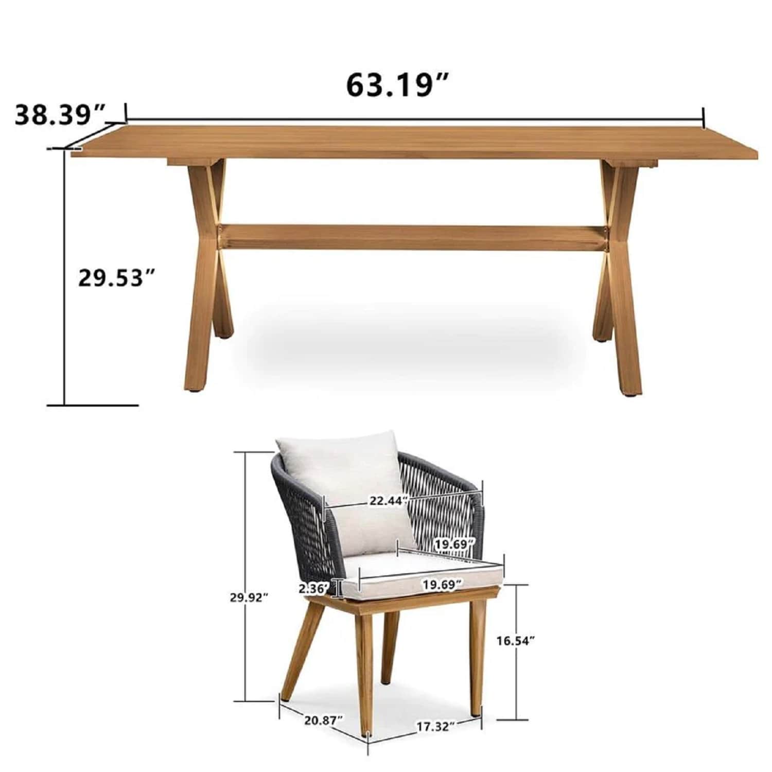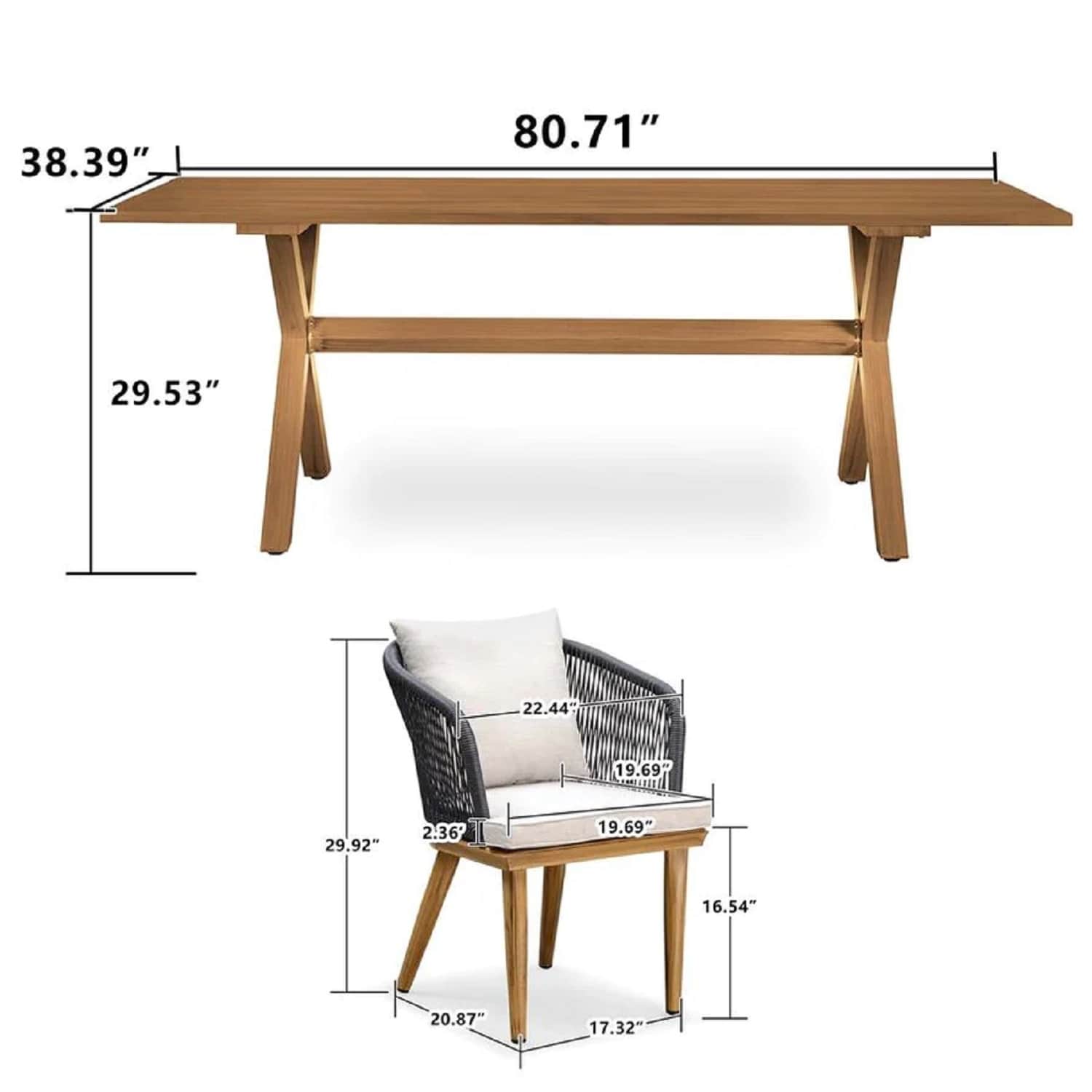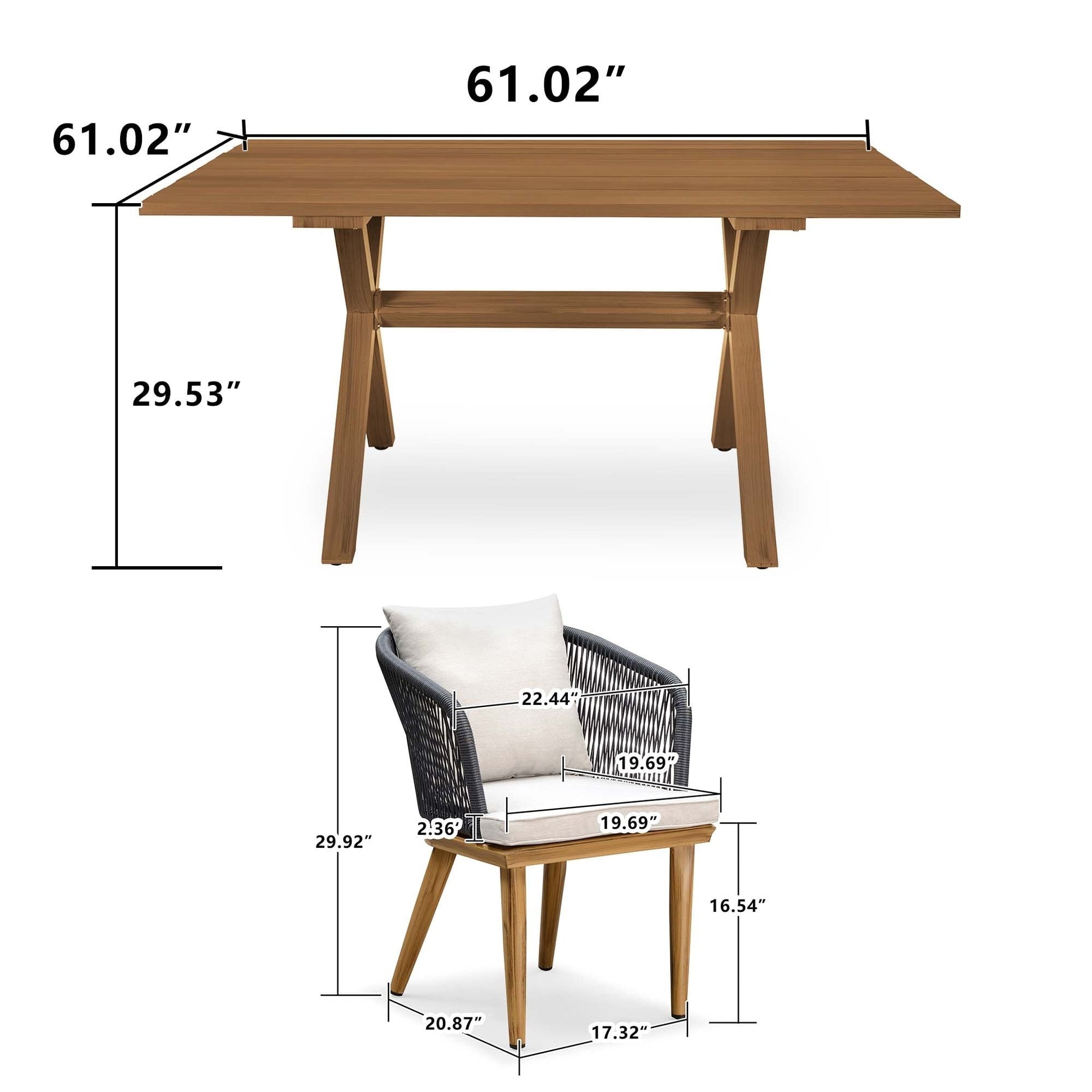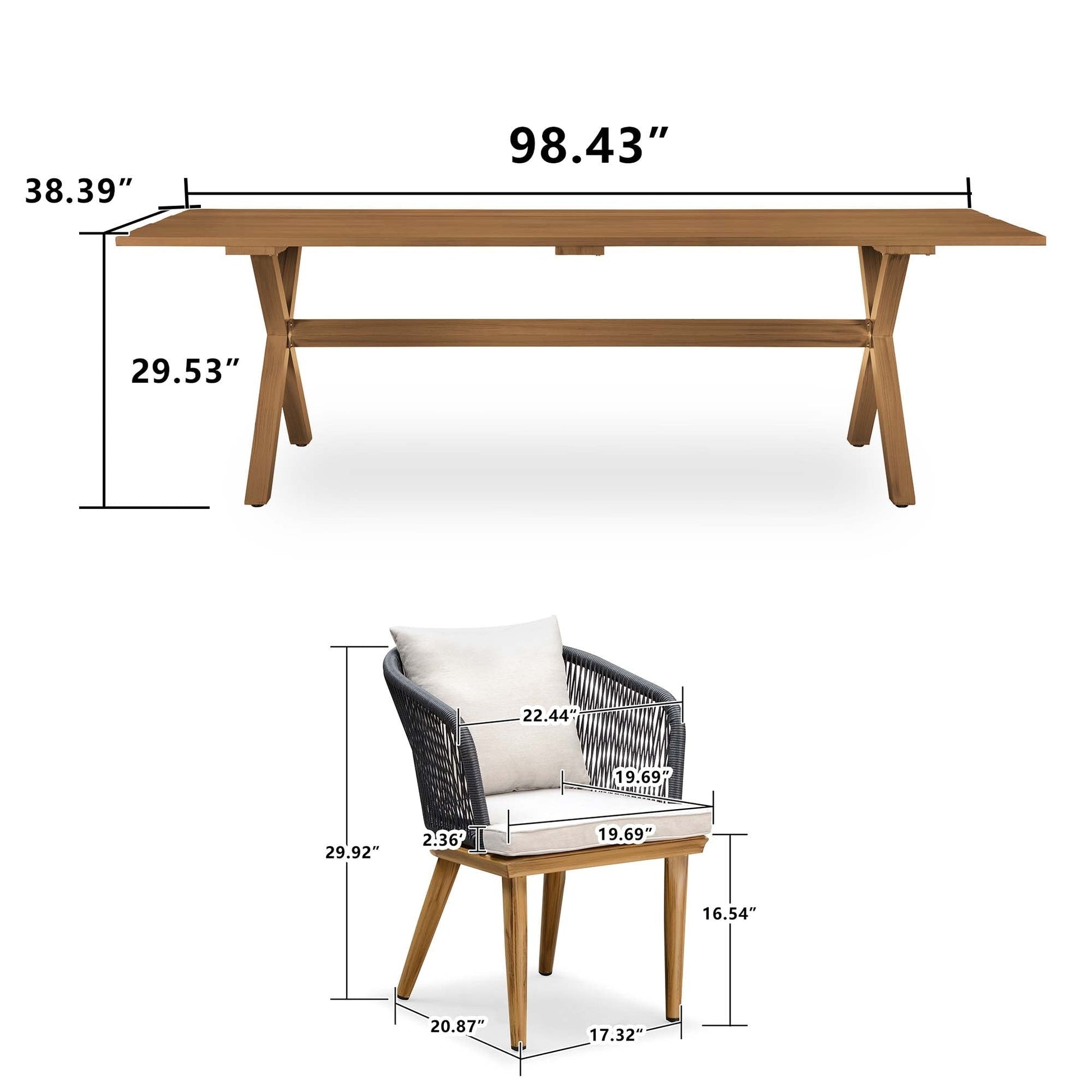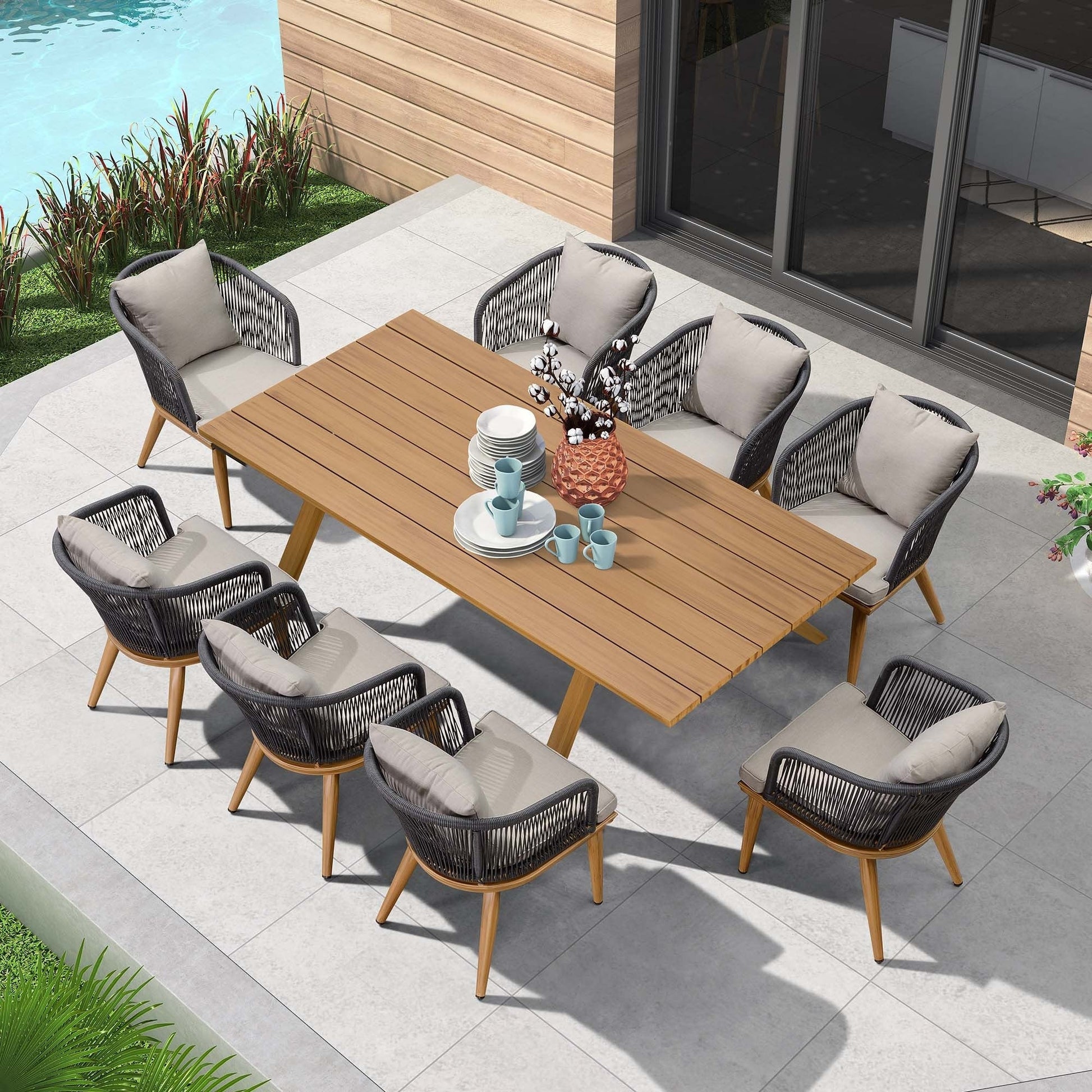 - Teak Aluminum Patio Furniture Set Dining Table And Wicker Chairs(Table for 6 / Table for 8 / Table for 10)41684952 41887679