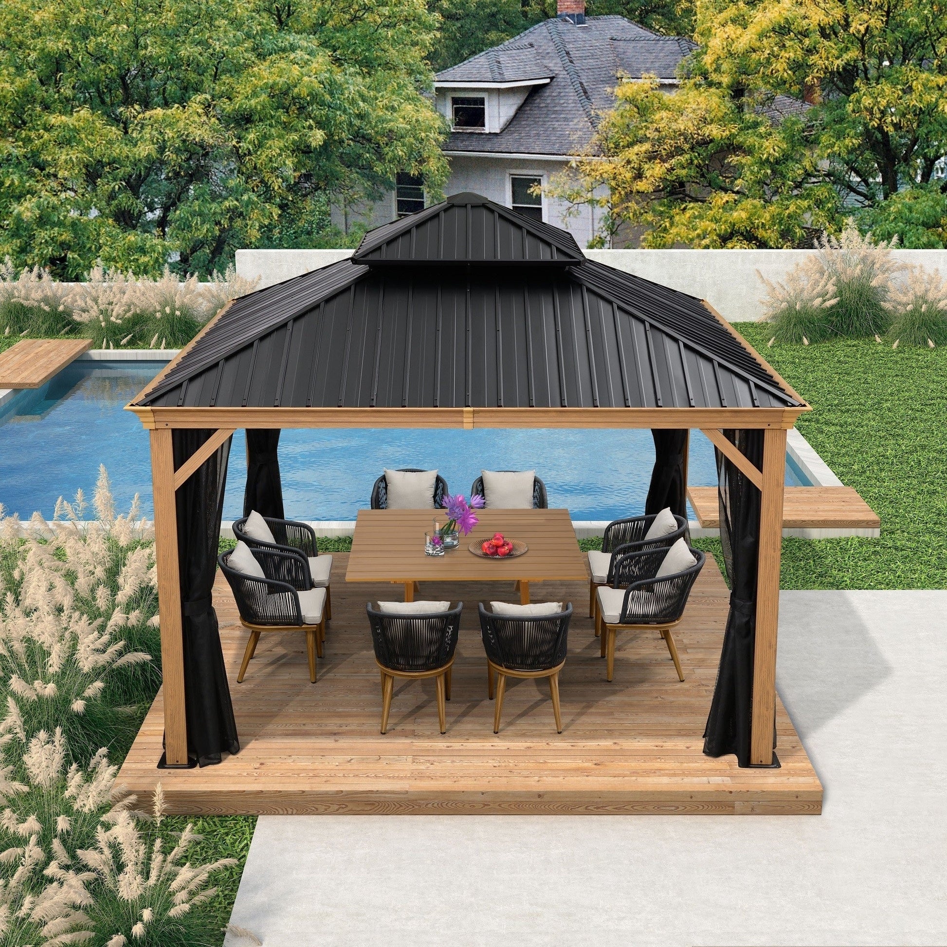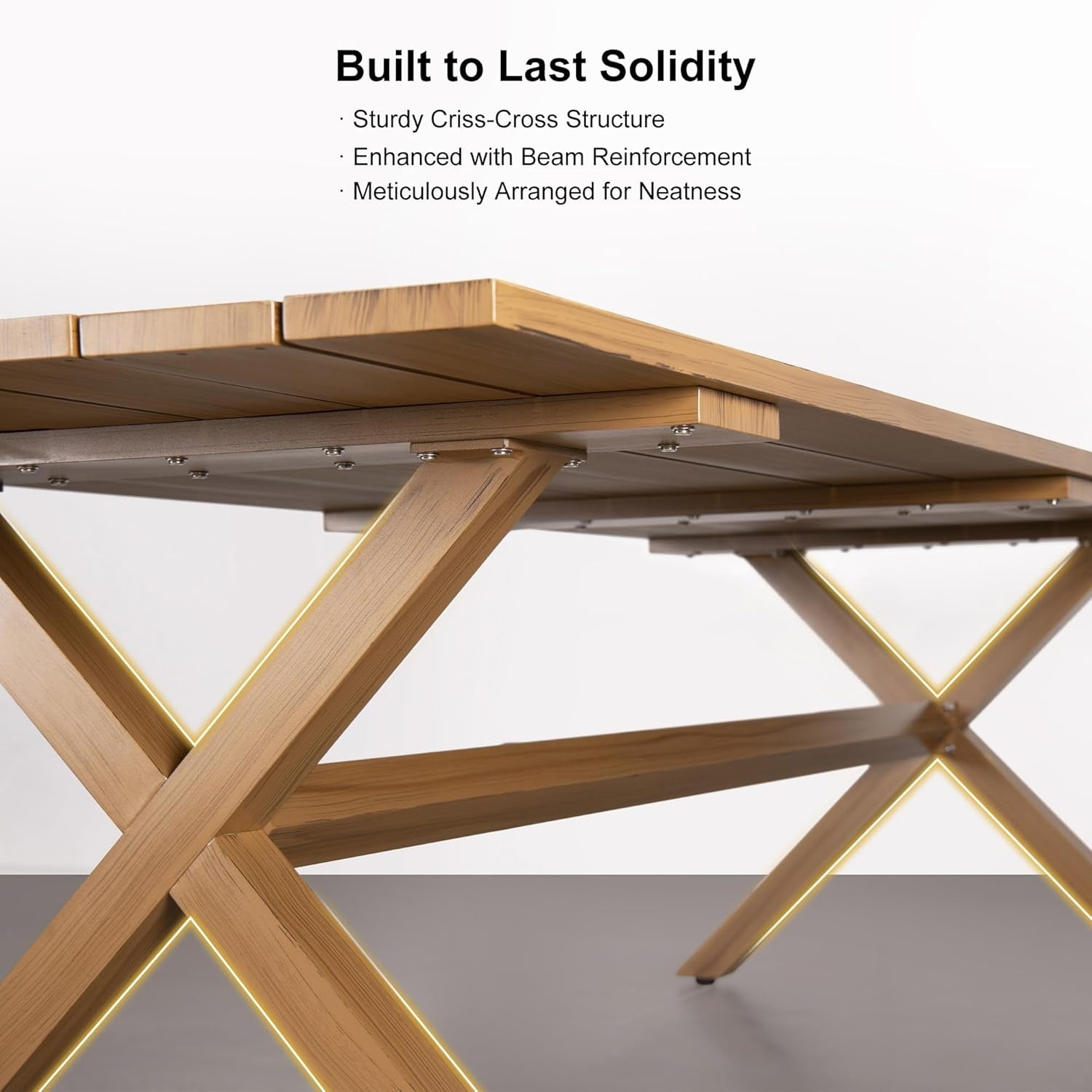 - Outstanding teak-finish powder-coated aluminum frame and table top are rust-resistance and durable