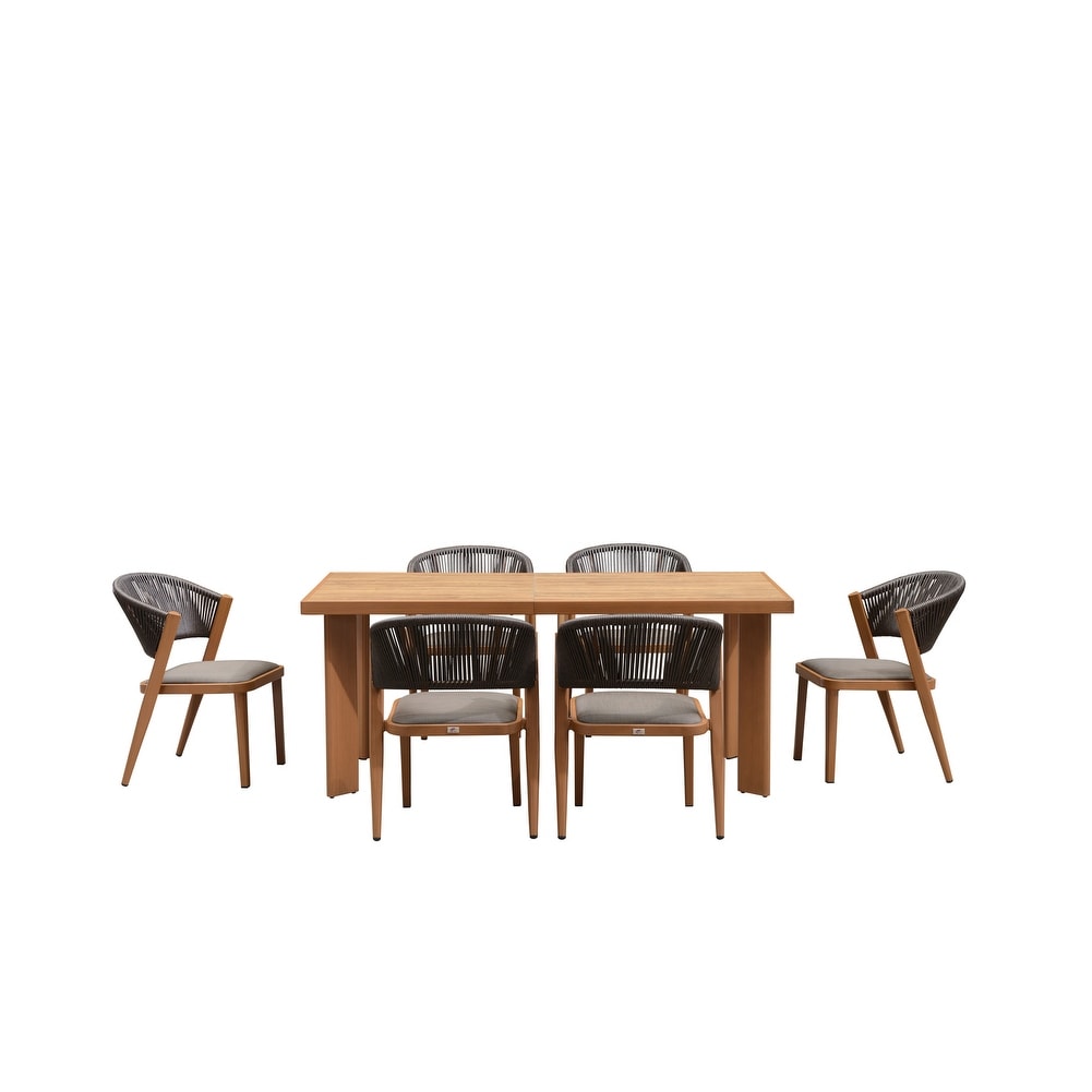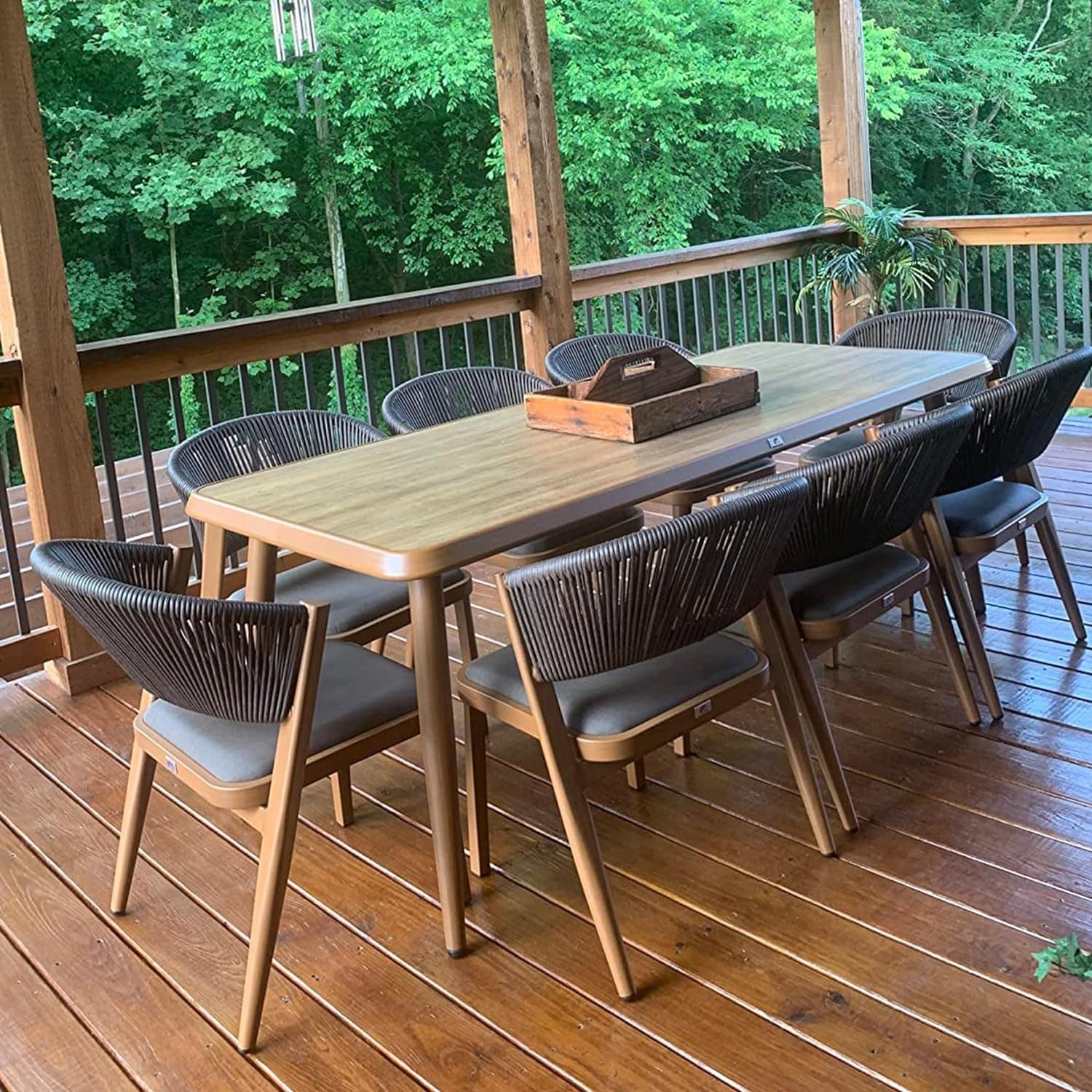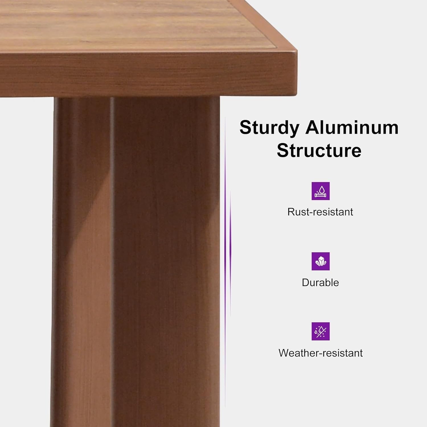 - Solid Aluminum Frame : ?Teak powder-coated aluminum frame can protects the patio dining set against rust, scratches and UV rays for long term use.?