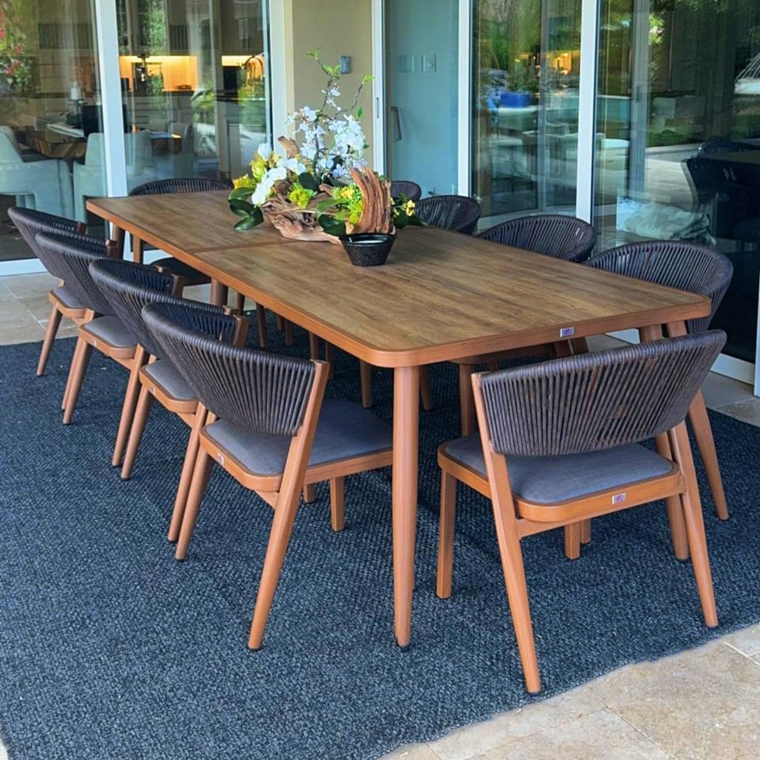 We have upgraded this table and chair, 6 persons Diniing set, 8 persons oversize Diniing set, and 10 persons Diniing set. These three kind of these dining set have been optimized and improved, and the new tables are more solid and firm.