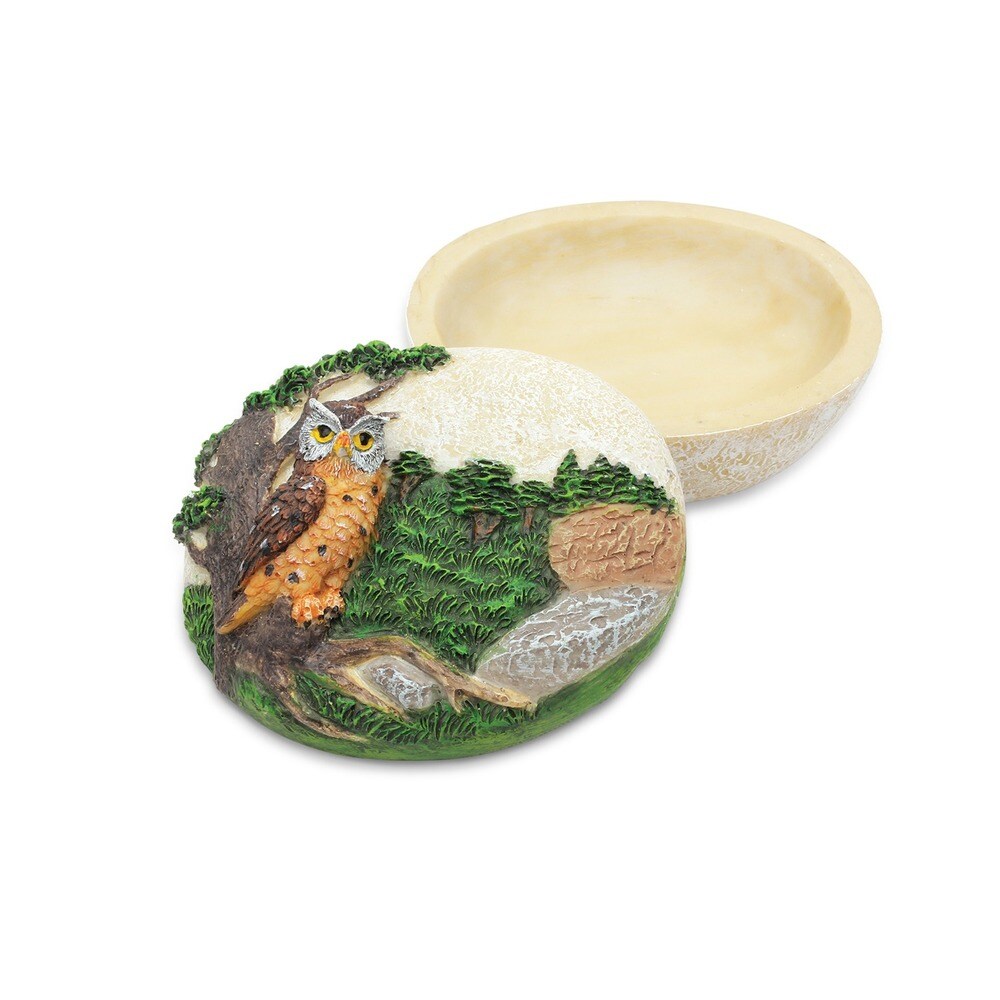Bring a charming touch to your bedroom when you display this handcrafted owl jewelry box on your dresser or vanity. Made of durable plastic, this jewelry box helps store your jewelry, minimizing clutter in your room.