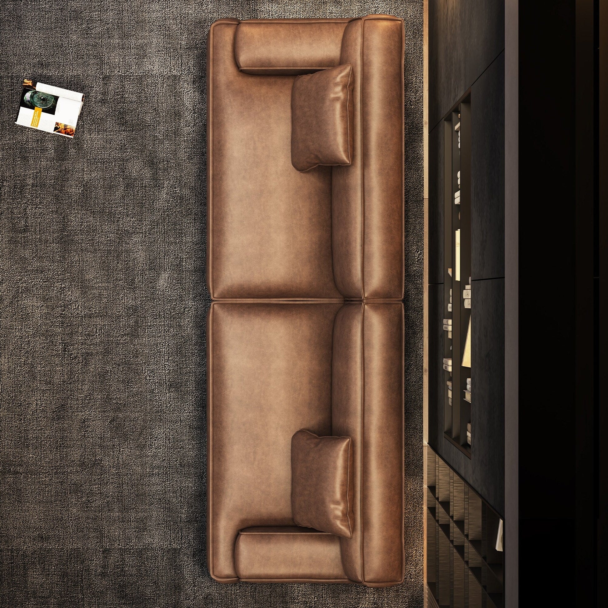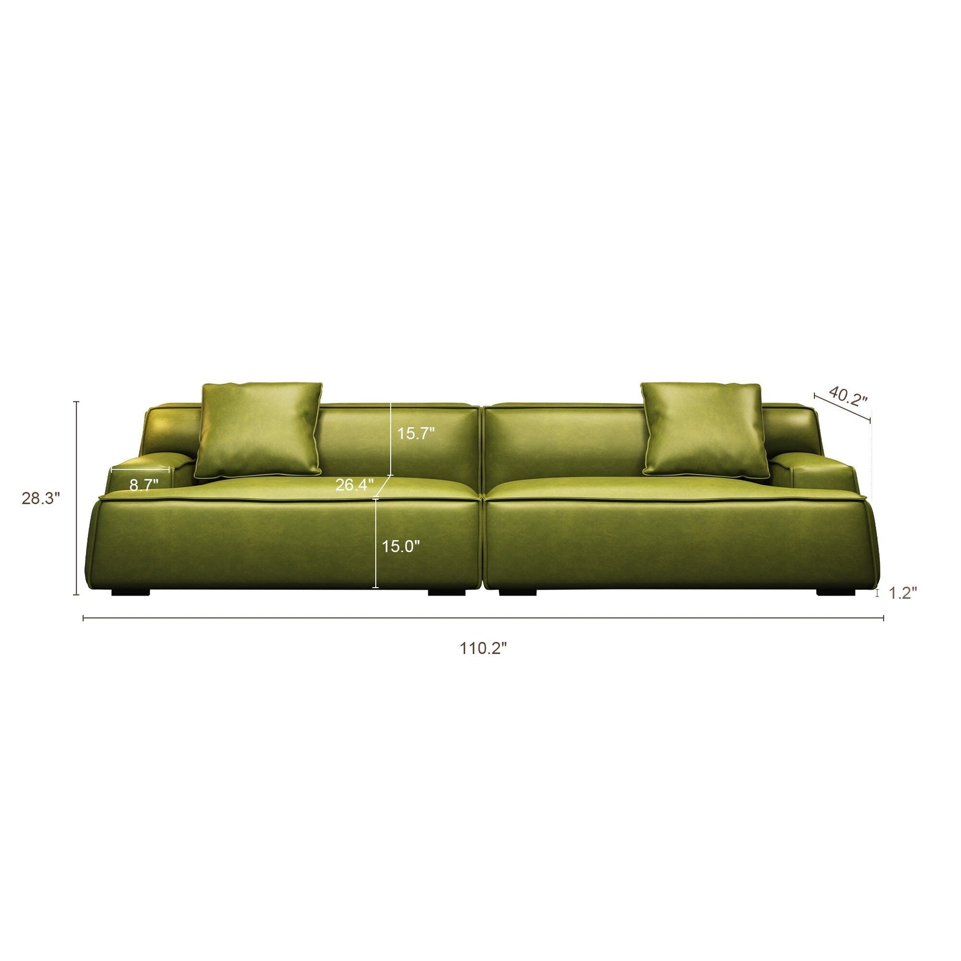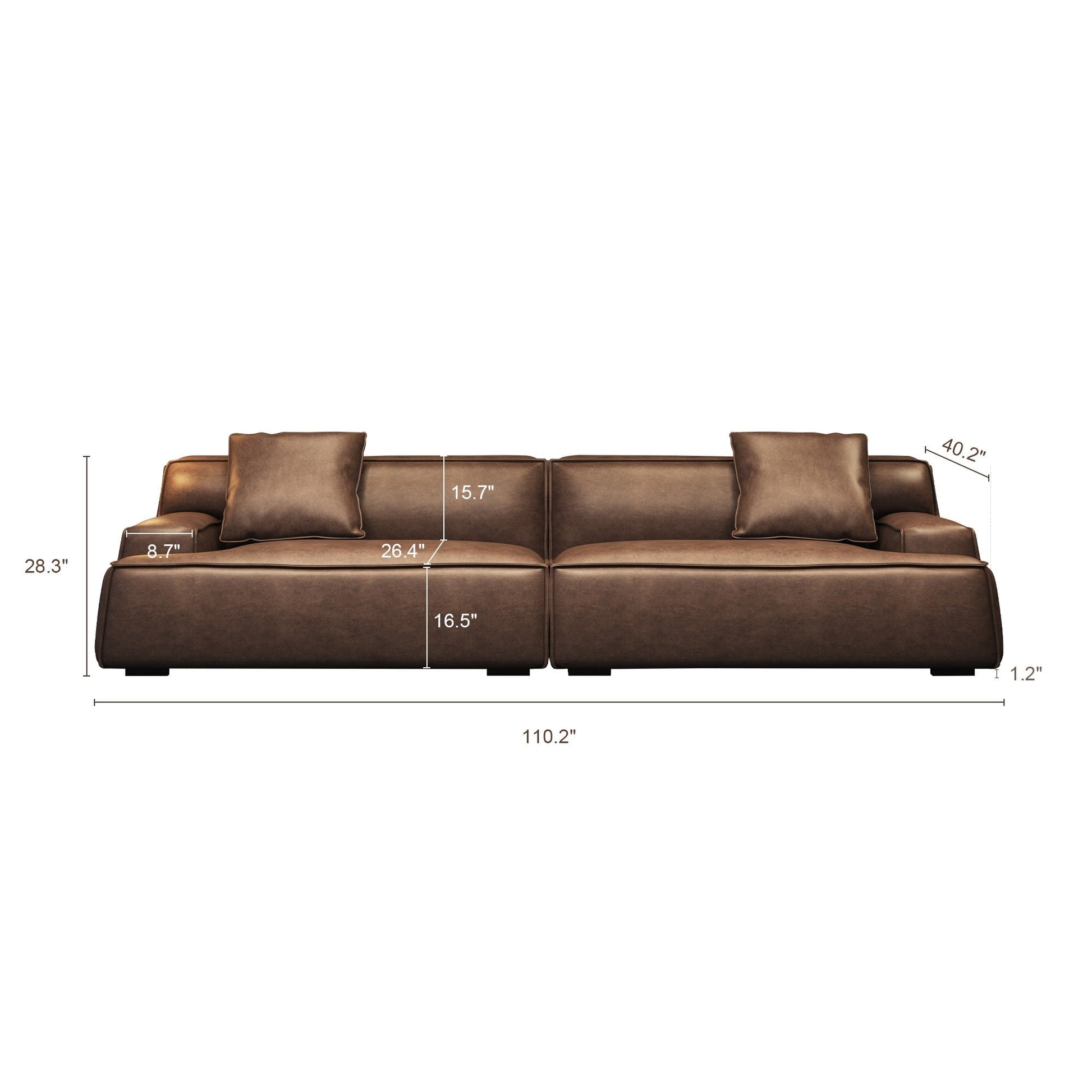 Recessed Arms Couch Leather Upholstered Sofa for Living Room-110.2W - 110.2 x 28.35