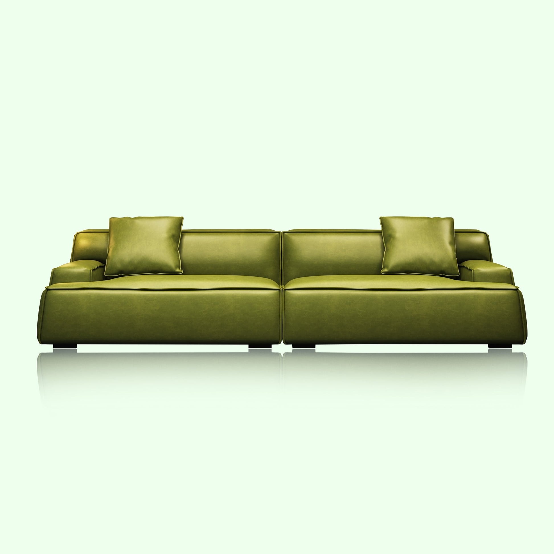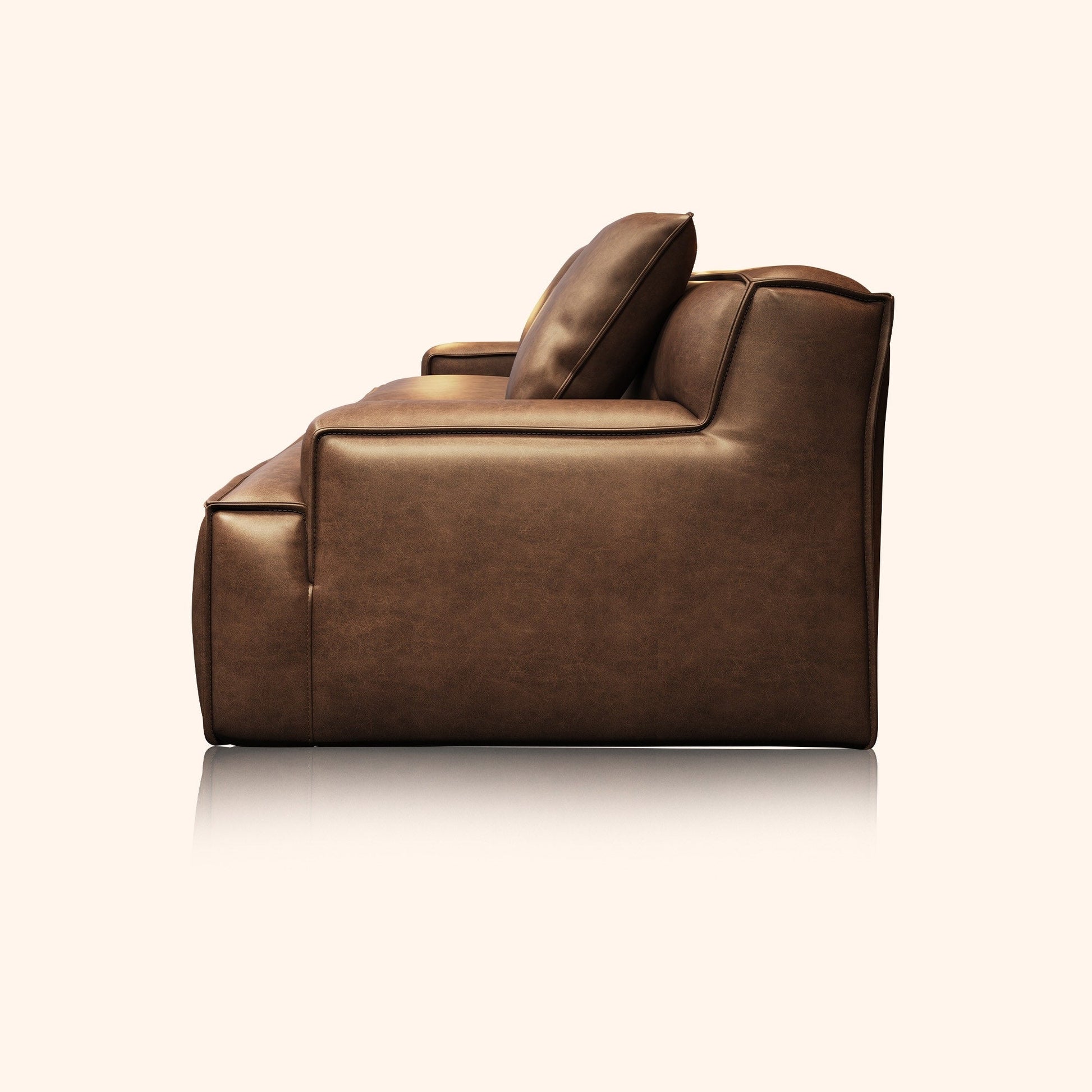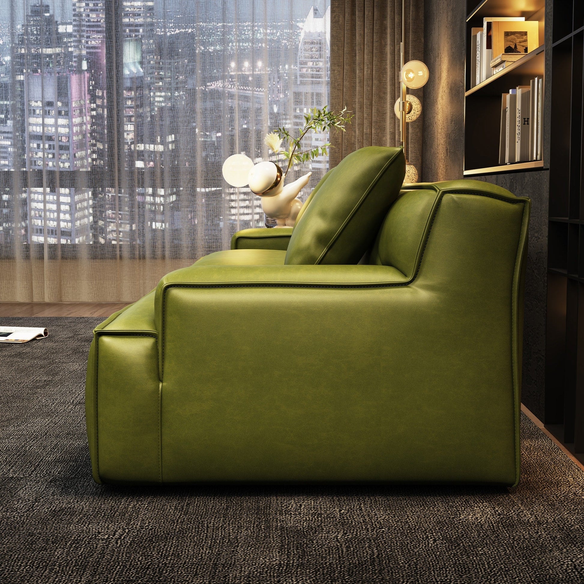 Recessed Arms Couch Leather Upholstered Sofa for Living Room-110.2W - 110.2 x 28.35