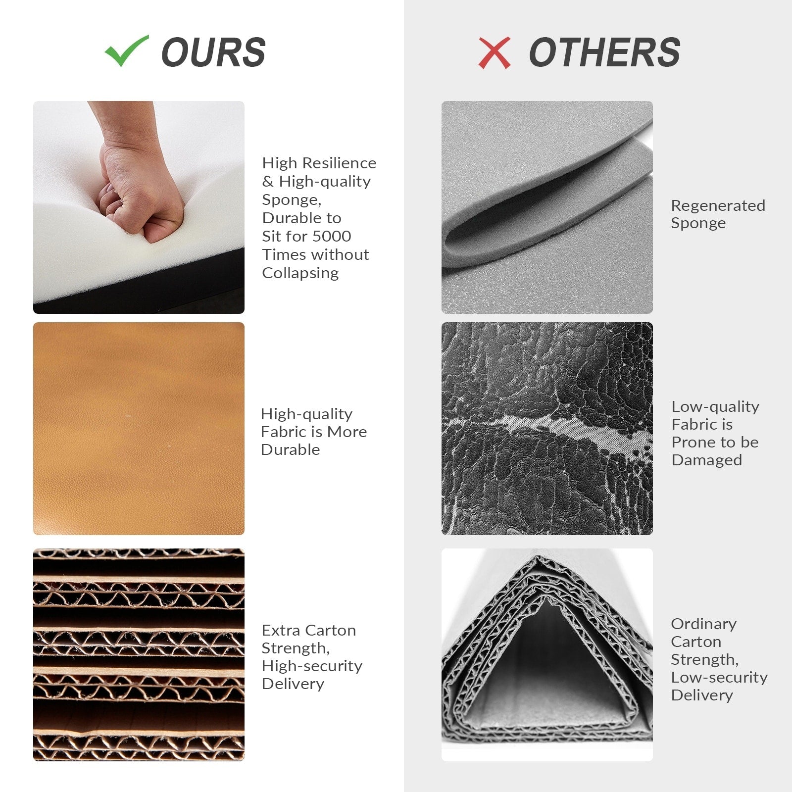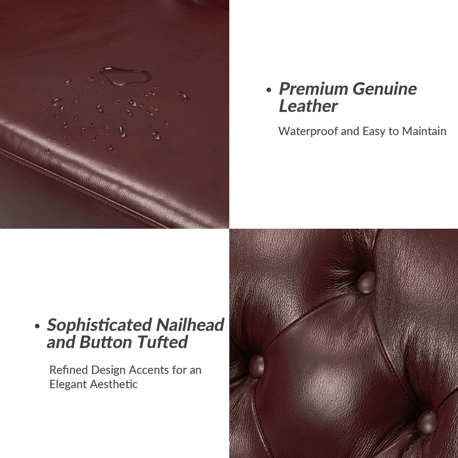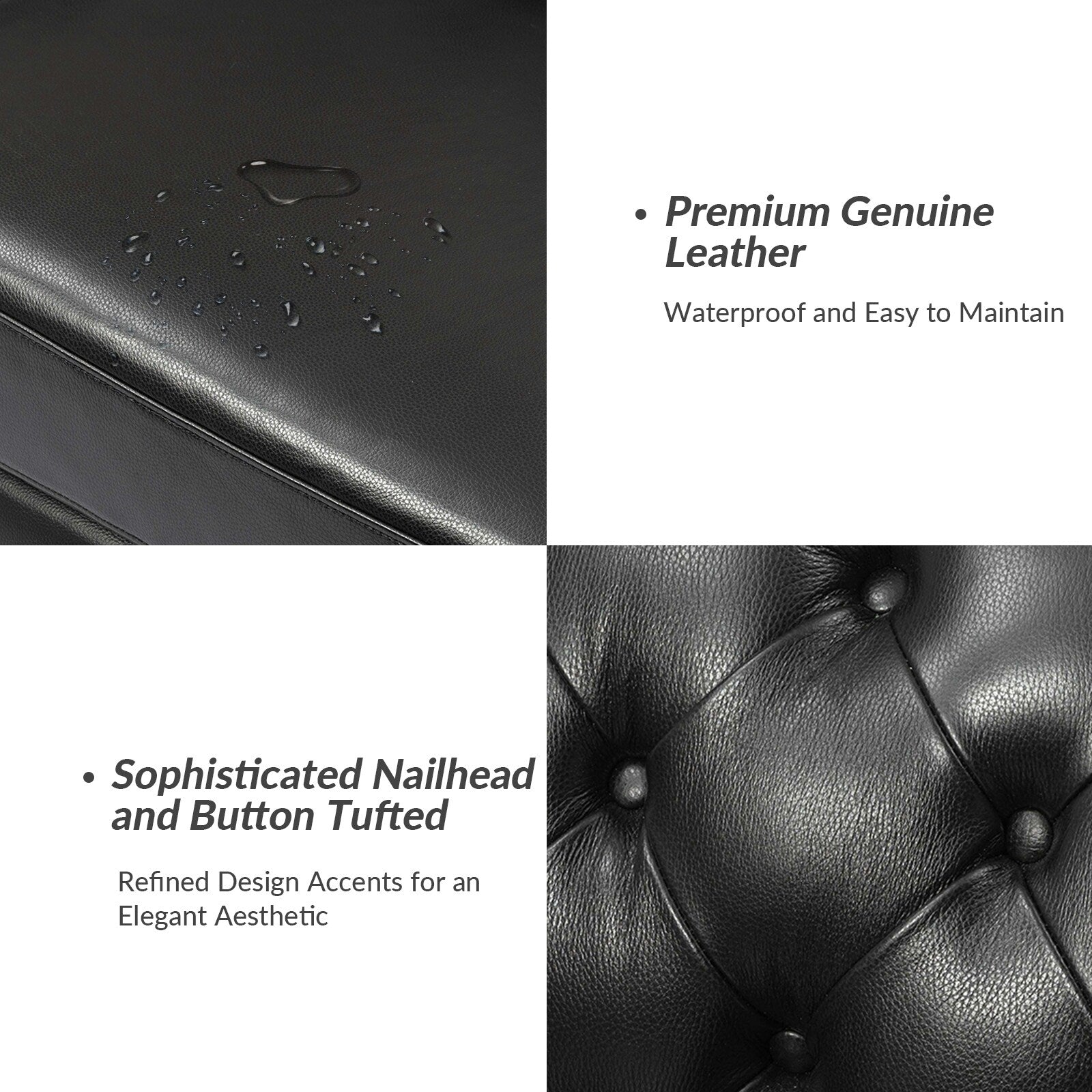 - Quality Material: With breathable genuine leather that remains odor-free and the added benefits of waterproof, anti-fouling, and mildew-proof qualities, this sofa features premium top-grain leather on its primary contact areas, while vegan leather is used on non-contact surfaces.