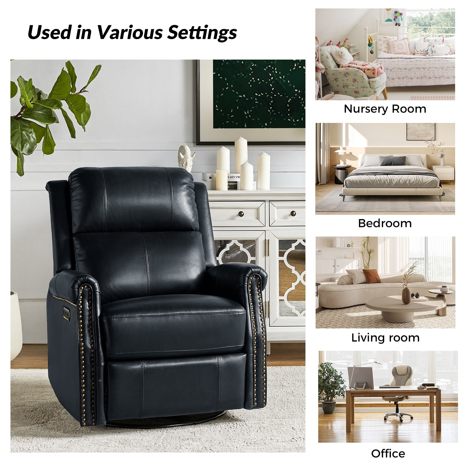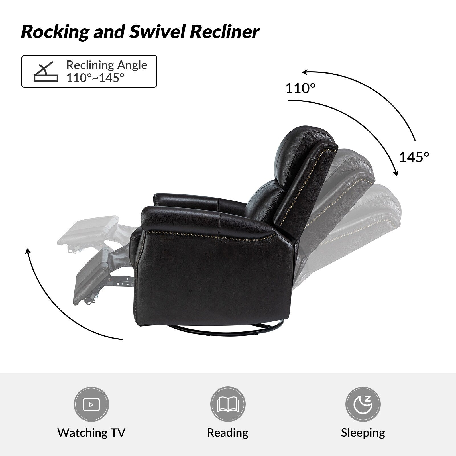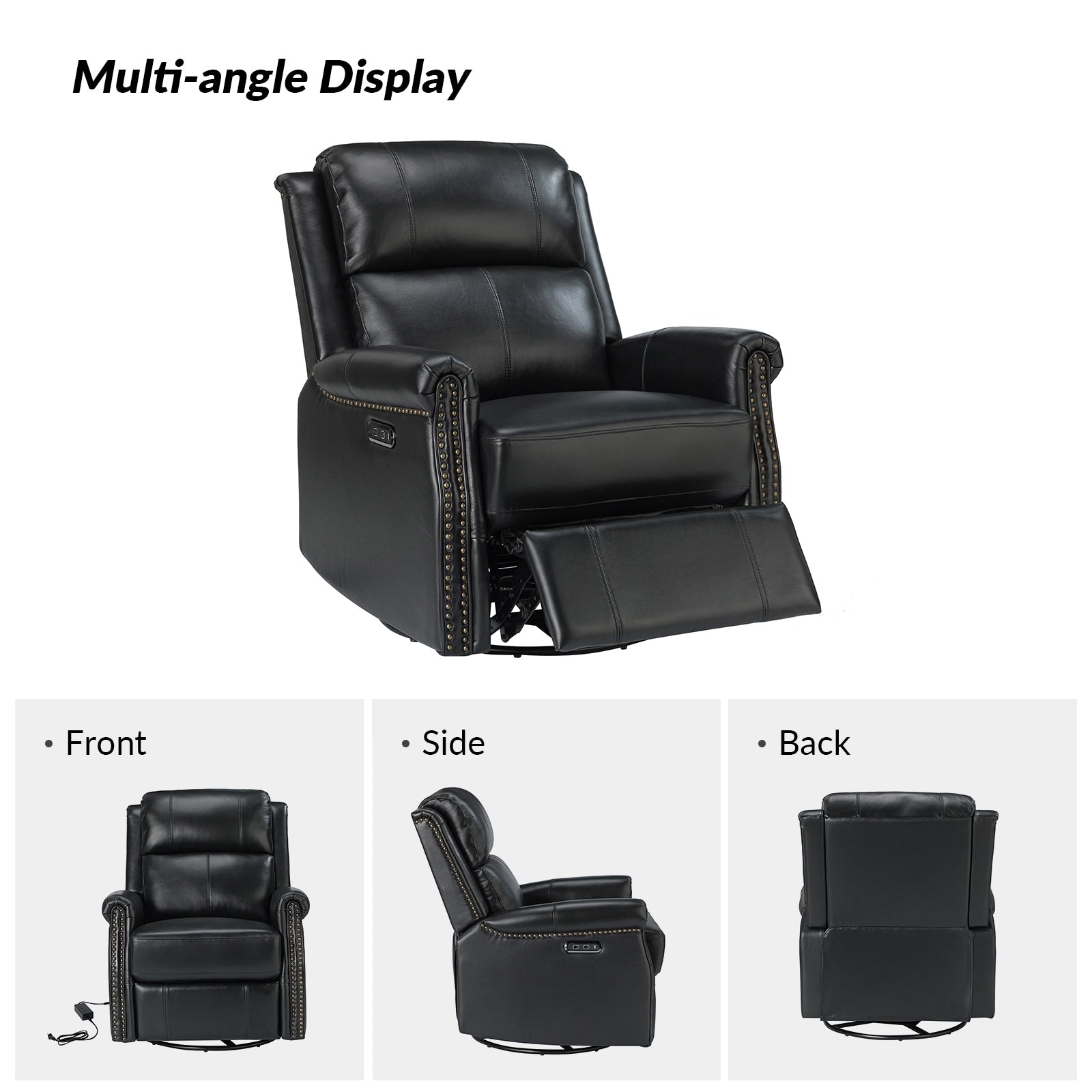 Introducing a traditional style update to a classic design: this genuine leather rocking recliner set features a sleek, streamlined silhouette, making it a statement-maker in your living space. Plus, it's wrapped in buttery genuine leather that's only going to get better with time. We love that chair has an electric tilt feature, that can shake and turn, smooth sliding and rocking, and is suitable for adults and seniors, so you can enjoy your leisure time. The frame of this wingback recliner set is made of sturdy wood with a meandering spring structure for support and stands on a metal swivel base. nailhead decoration trims the edges and adds visual appeal. ?This handsome recliner set has elegant armrests with two USB interfaces. You can work in the conversation area of a living room or study. Partial assembly is required. All tools are included.
