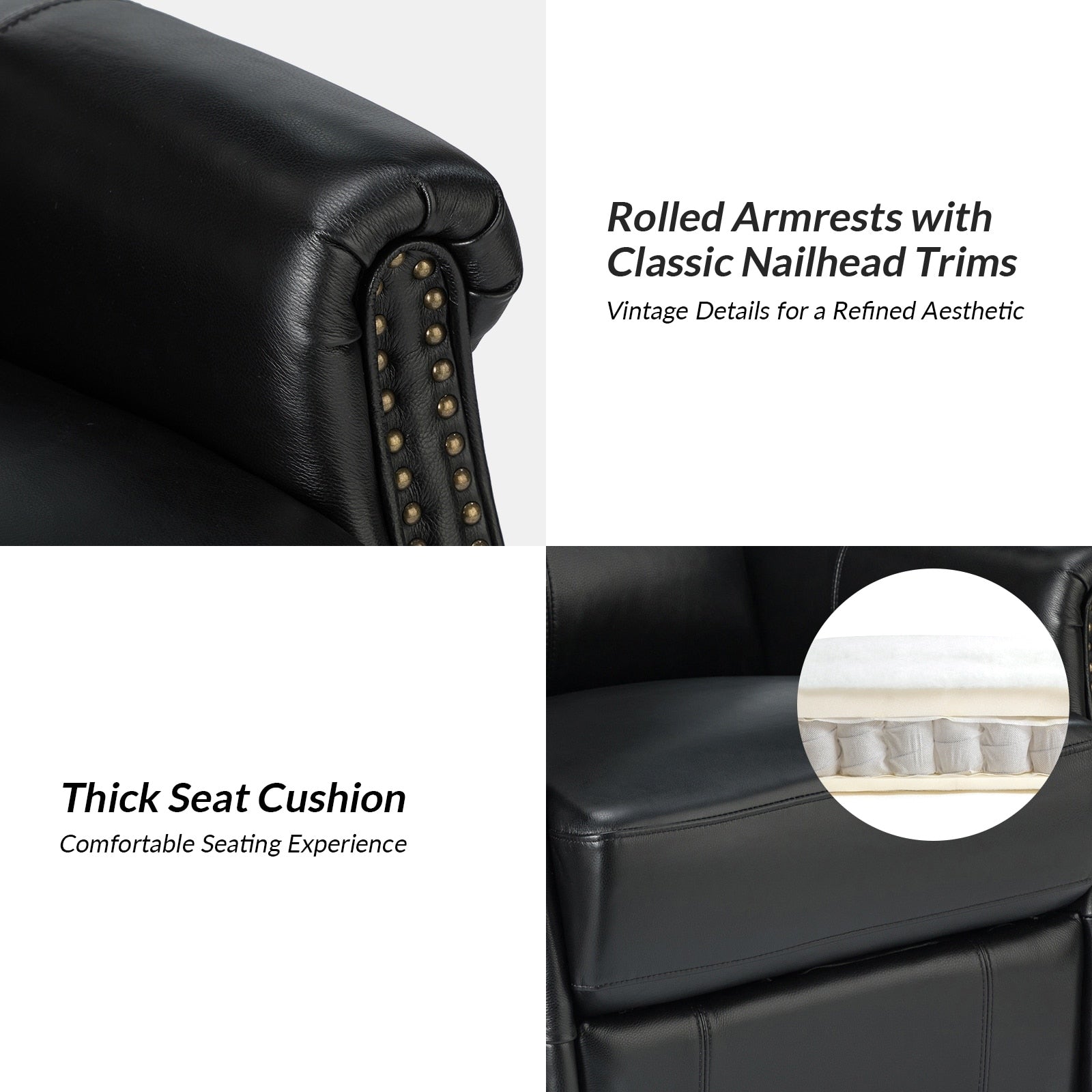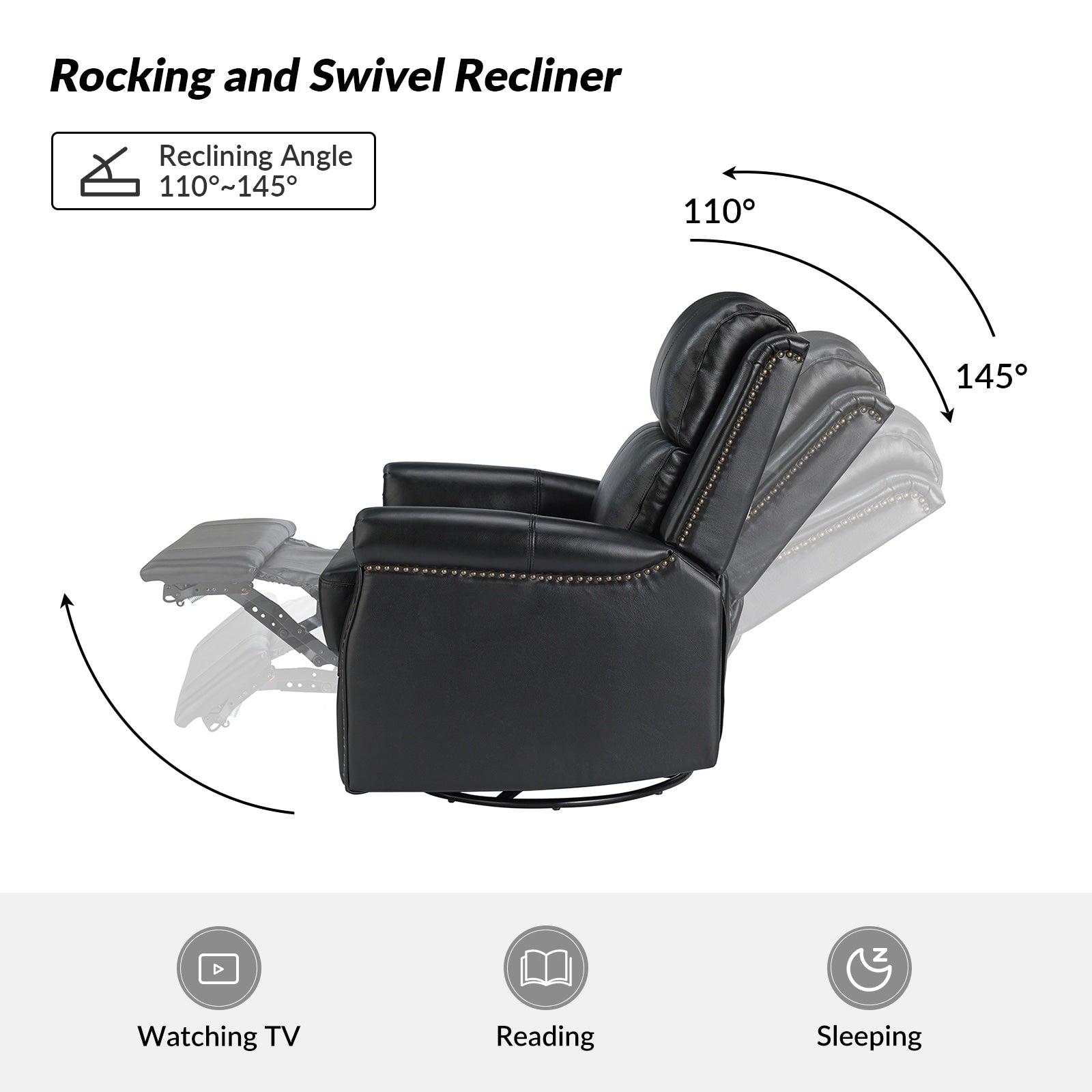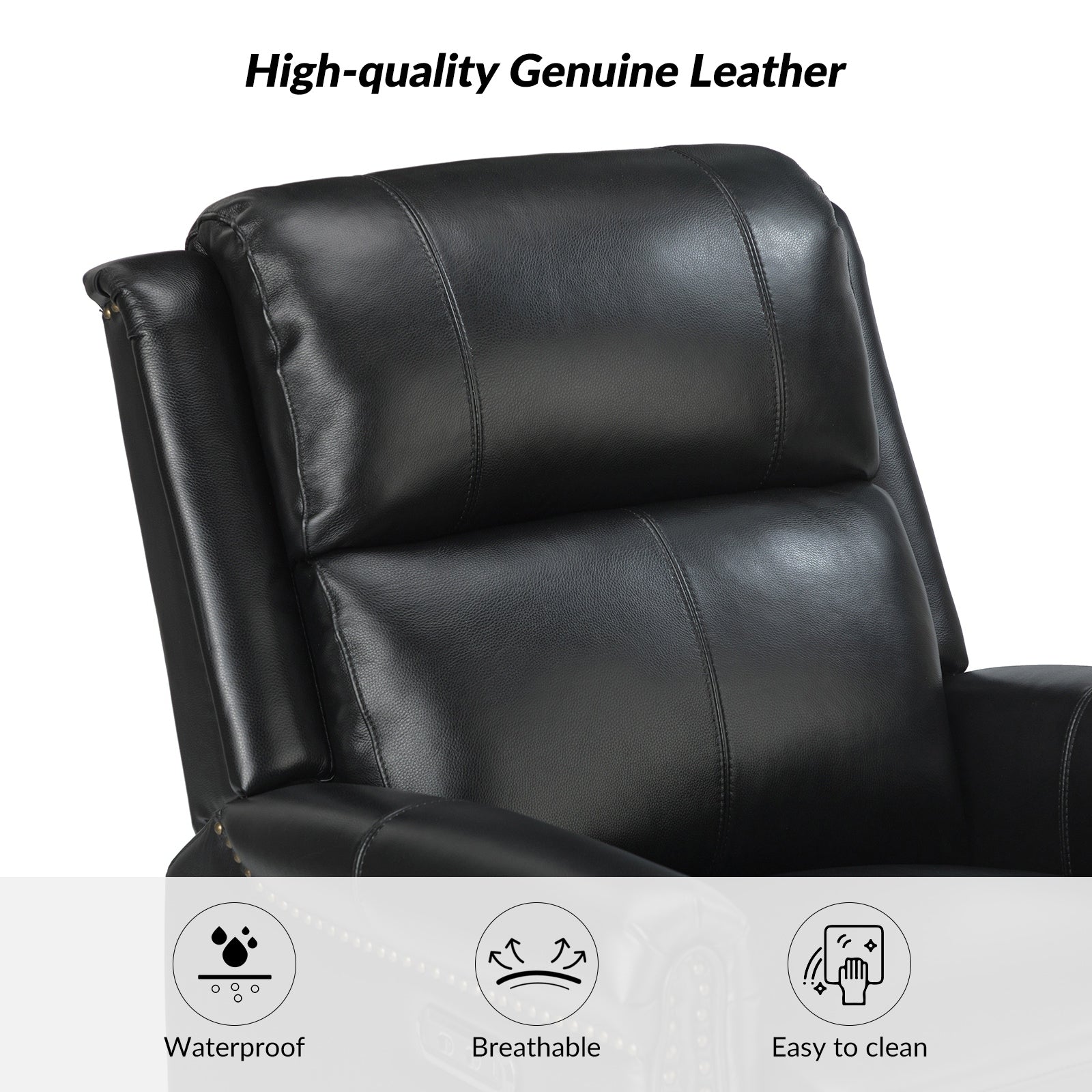 Introducing a traditional style update to a classic design: this genuine leather rocking recliner set features a sleek, streamlined silhouette, making it a statement-maker in your living space. Plus, it's wrapped in buttery genuine leather that's only going to get better with time. We love that chair has an electric tilt feature, that can shake and turn, smooth sliding and rocking, and is suitable for adults and seniors, so you can enjoy your leisure time. The frame of this wingback recliner set is made of sturdy wood with a meandering spring structure for support and stands on a metal swivel base. nailhead decoration trims the edges and adds visual appeal. ?This handsome recliner set has elegant armrests with two USB interfaces. You can work in the conversation area of a living room or study. Partial assembly is required. All tools are included.