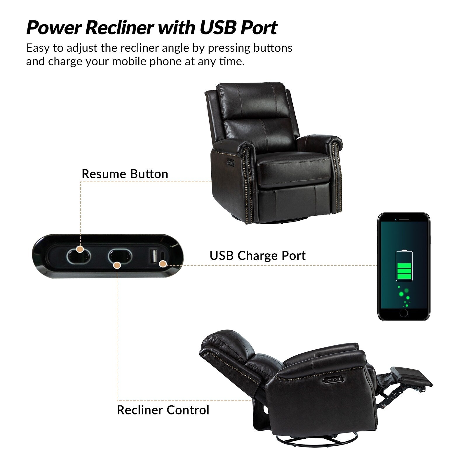 - ELECTRIC RECLINING MECHANISM: Reclining has never been easier, thanks to the convenient electronic button on the armrest. There's also a built-in USB port (power cord included) to ensure your electronic devices are always charged and within easy reach.