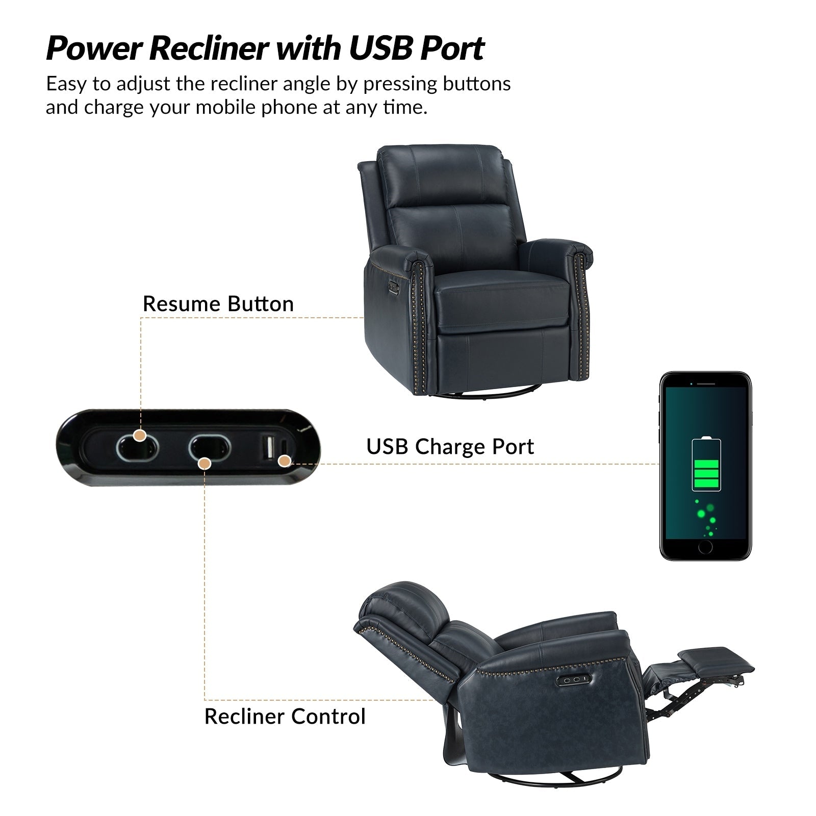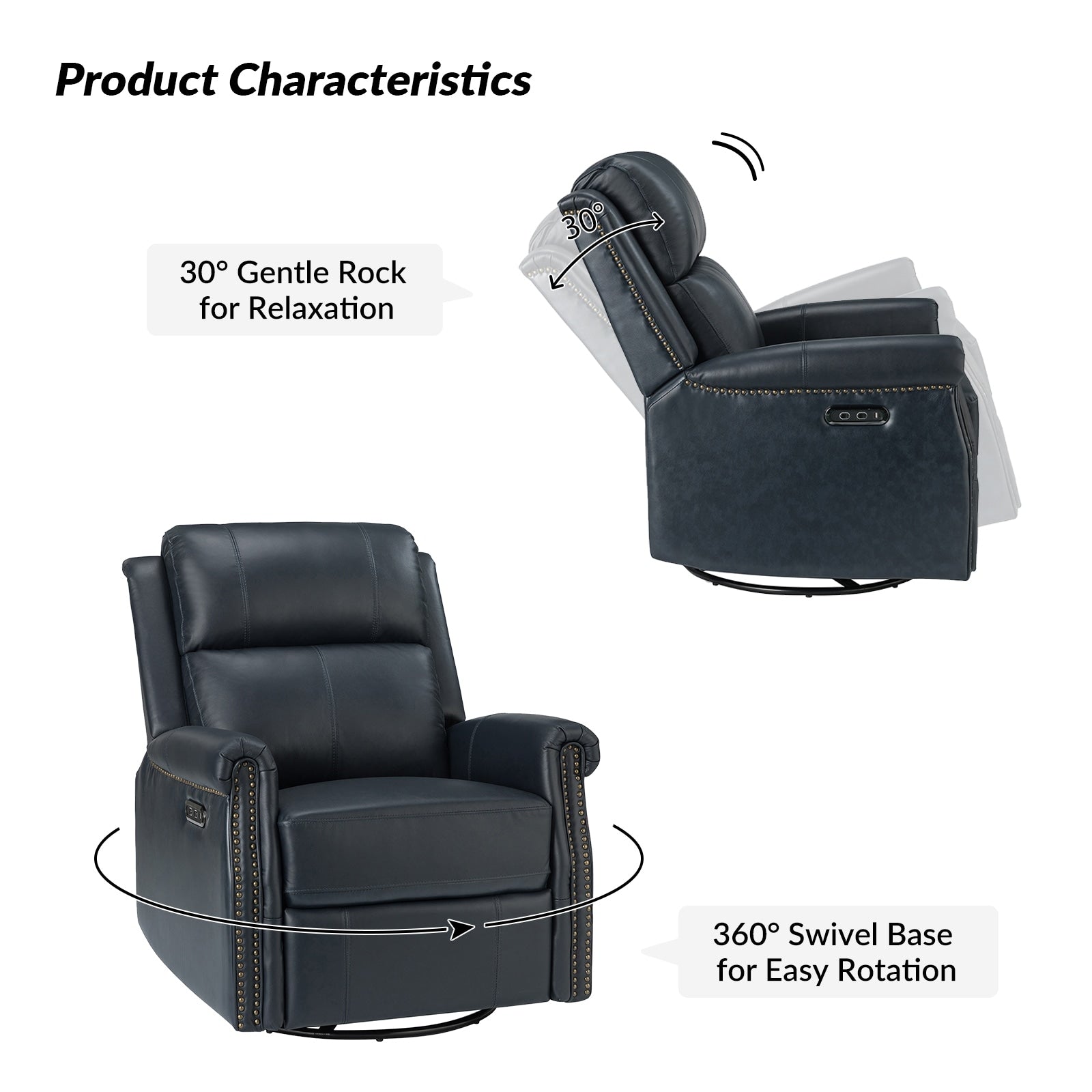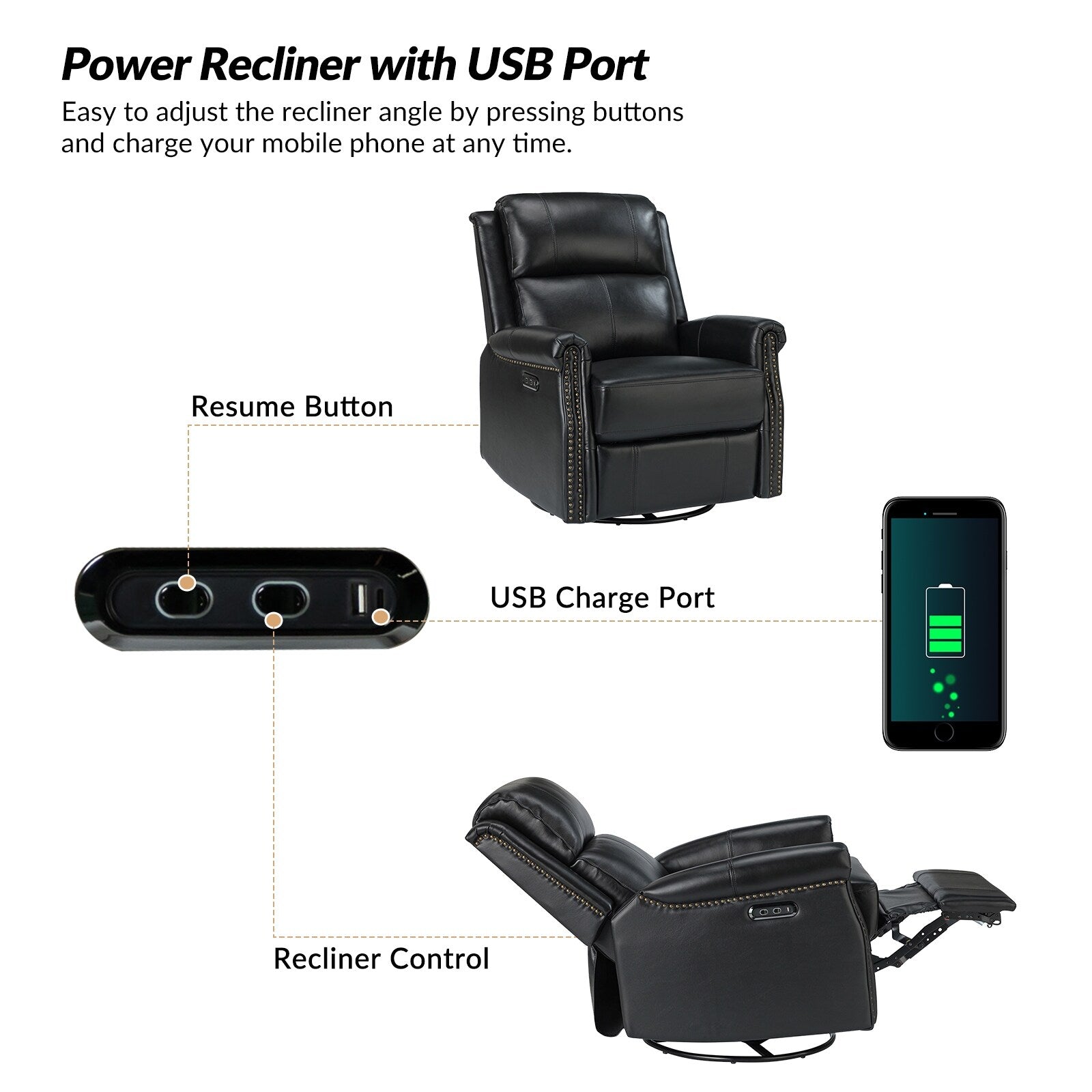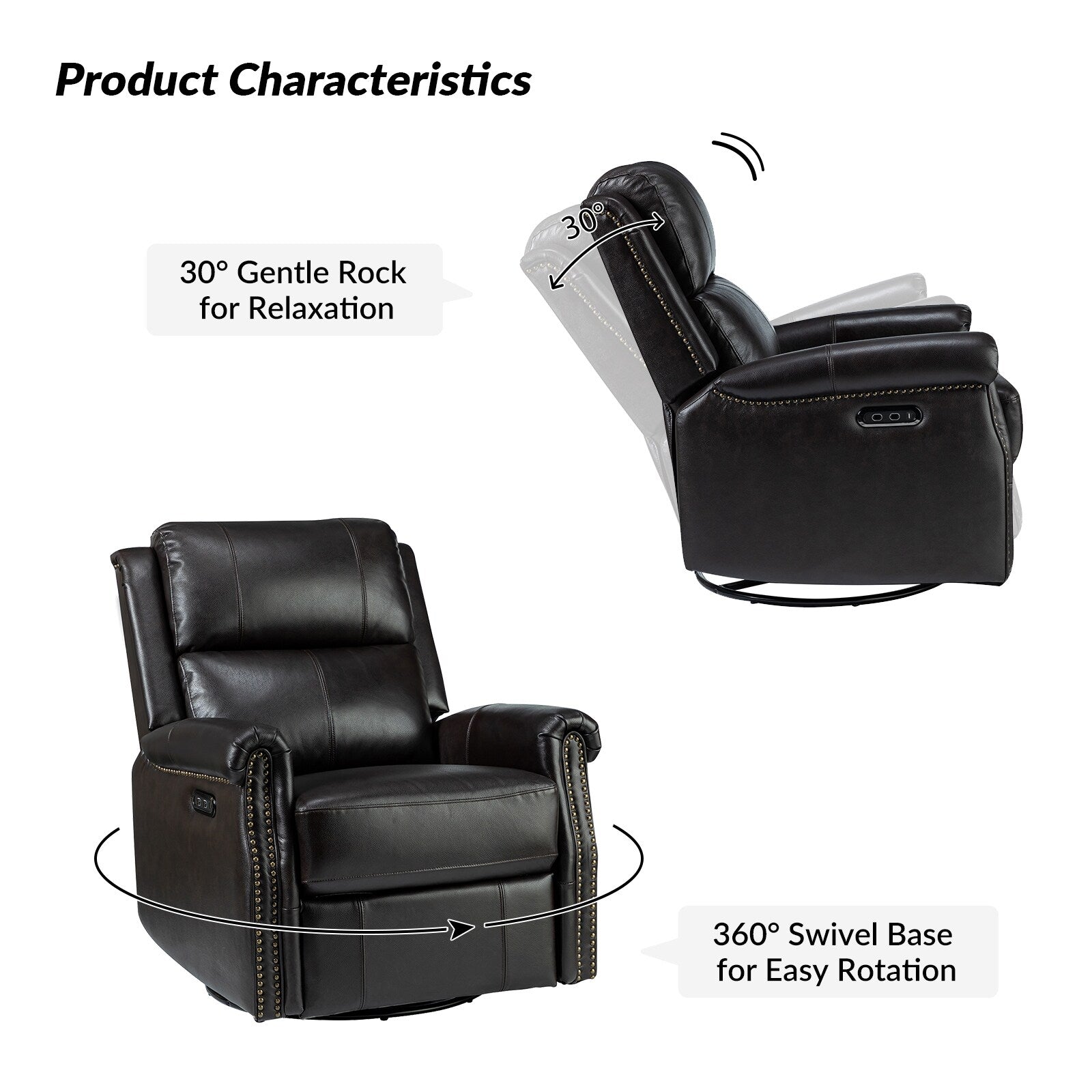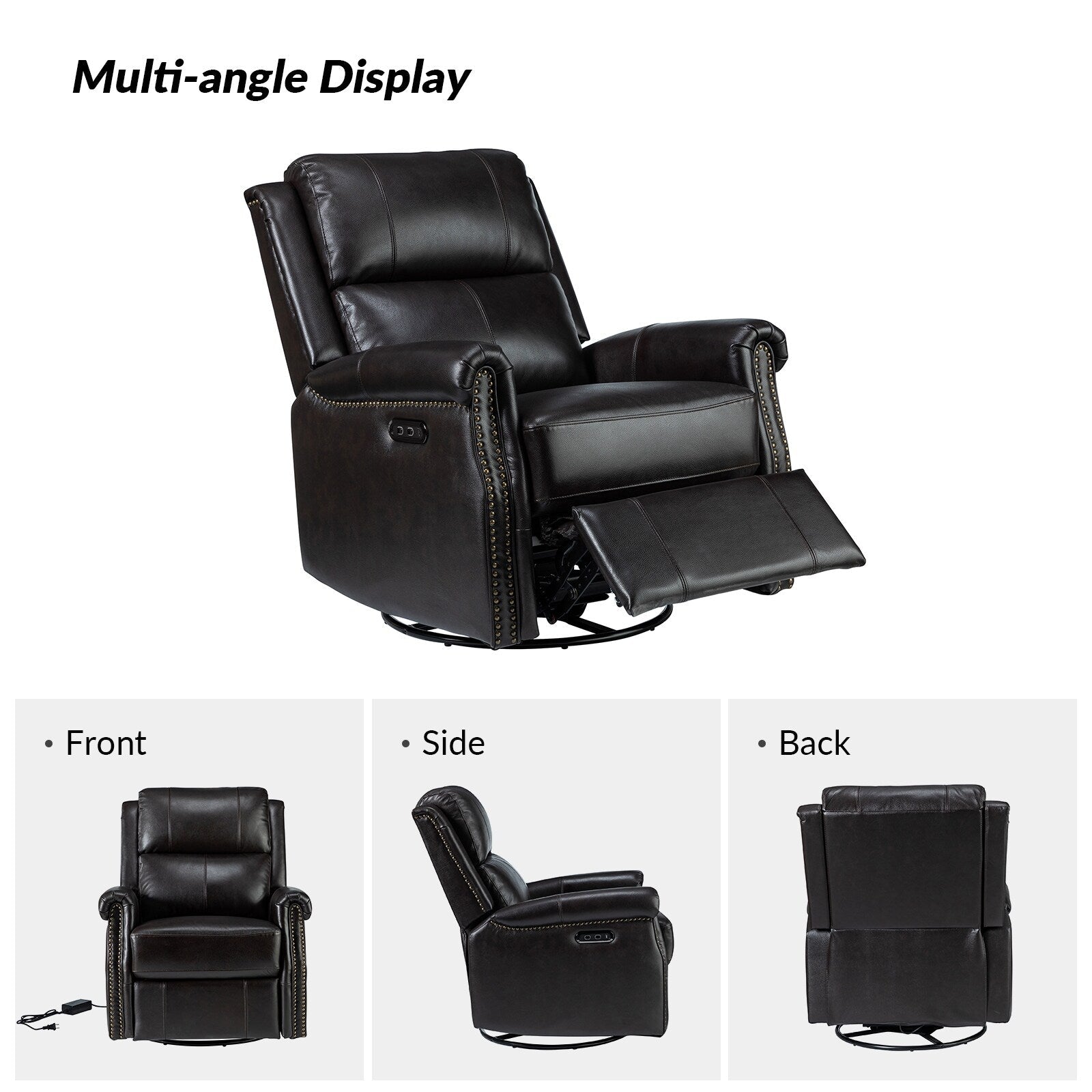 Renato Traditional Genuine Leather Nailhead Power Swivel Recliner Chair with Metal Base Set of 2 by HULALA HOME