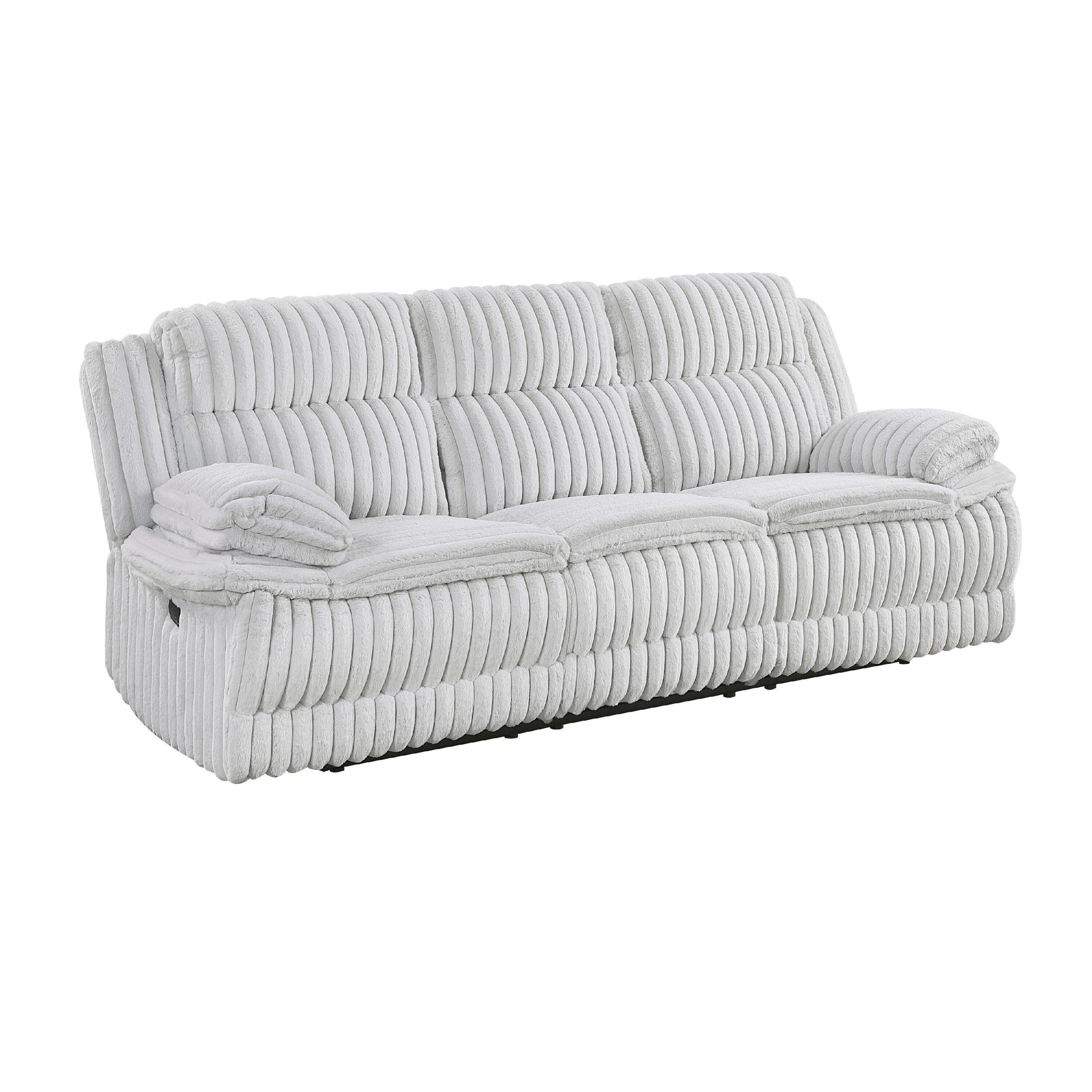 Rexy Manual Double Recliner Sofa, Textured Light Gray Corduroy 95 Inch