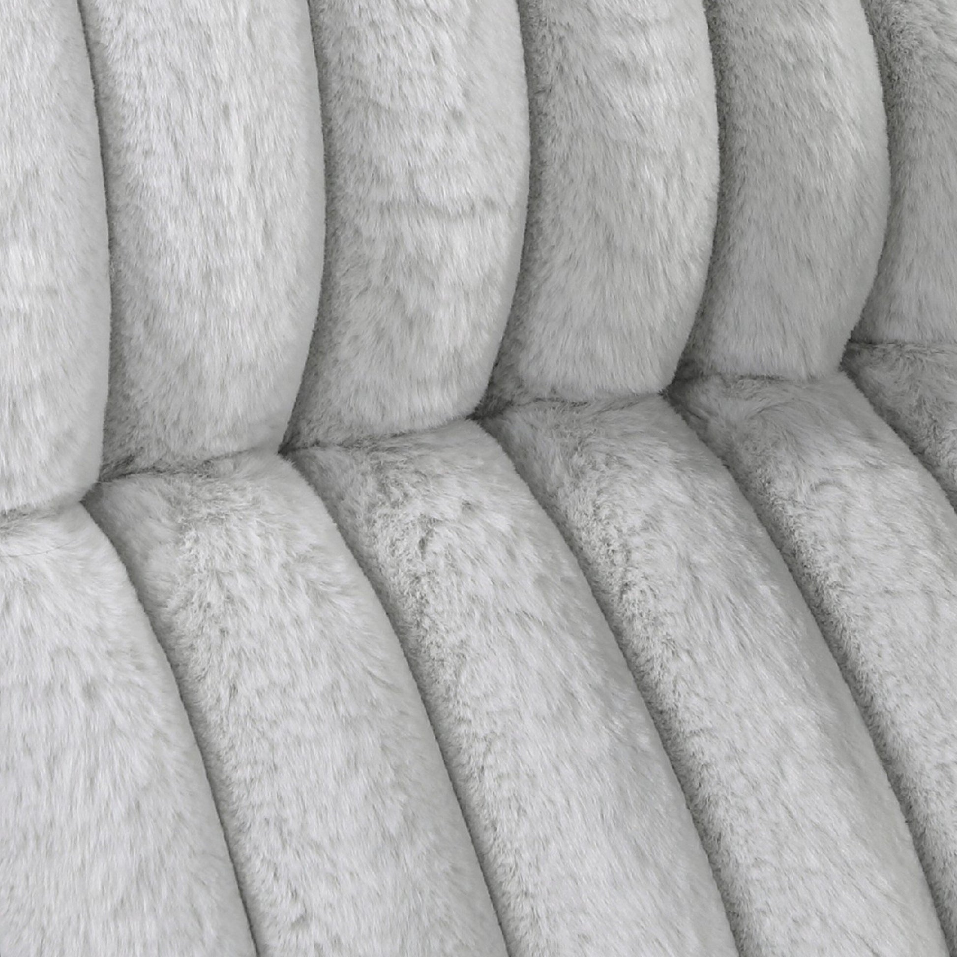- Upholstered in rich gray ribbed corduroy for a soft, tactile experience