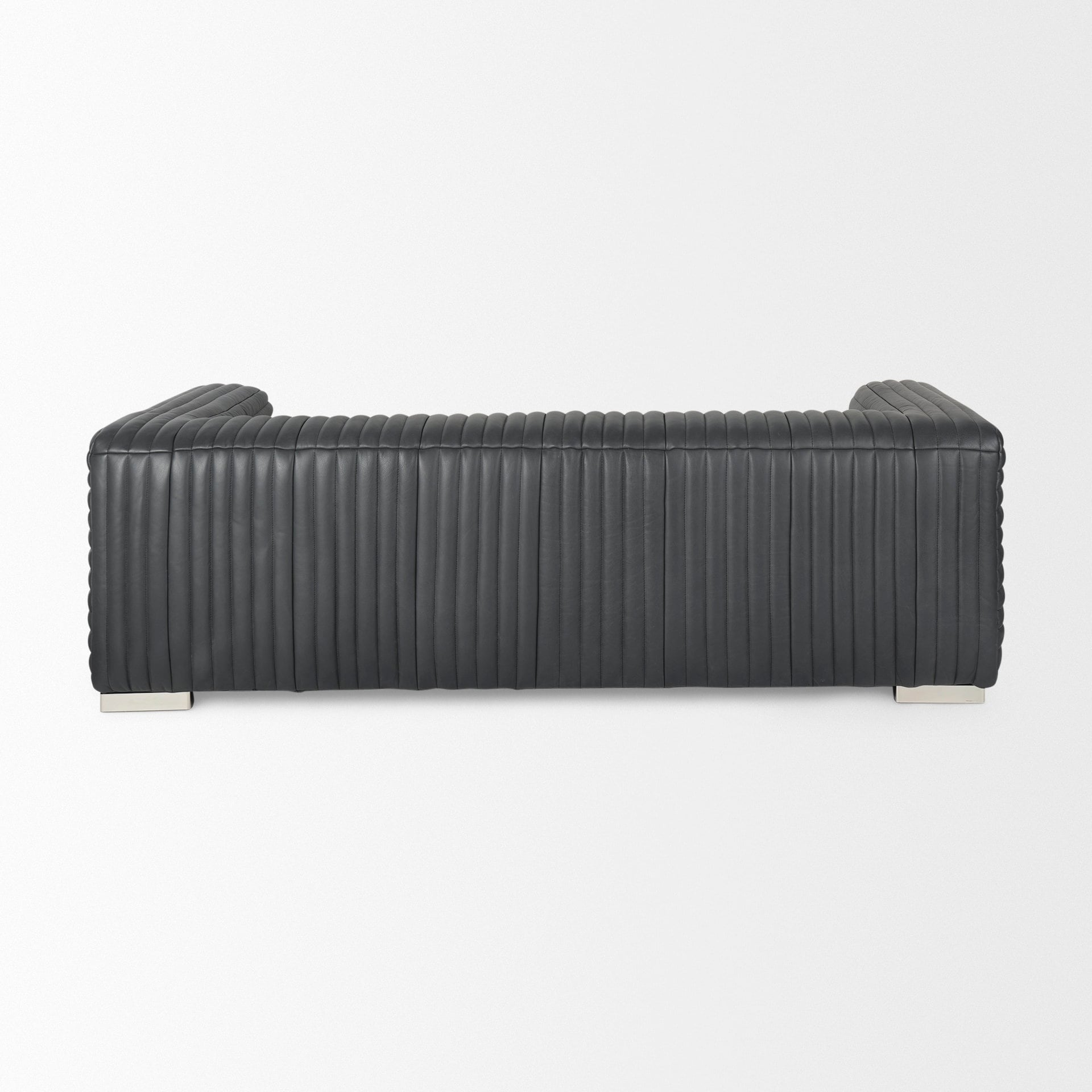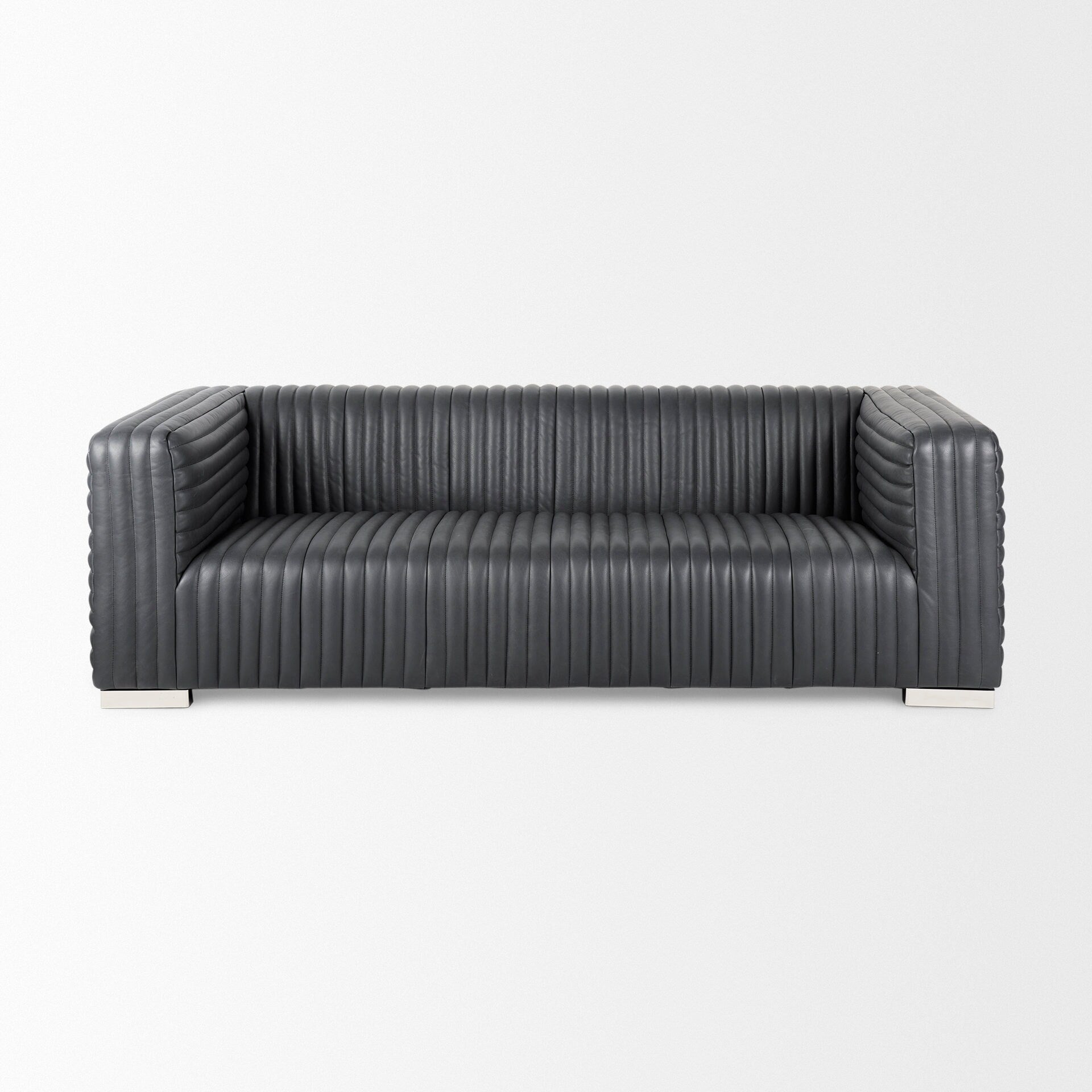 Built to stand the test of time, the Ricciardo sofa features a leather-wrapped seat that is braced by a four-legged chrome metal base that ensures exceptional stability and sturdiness. -