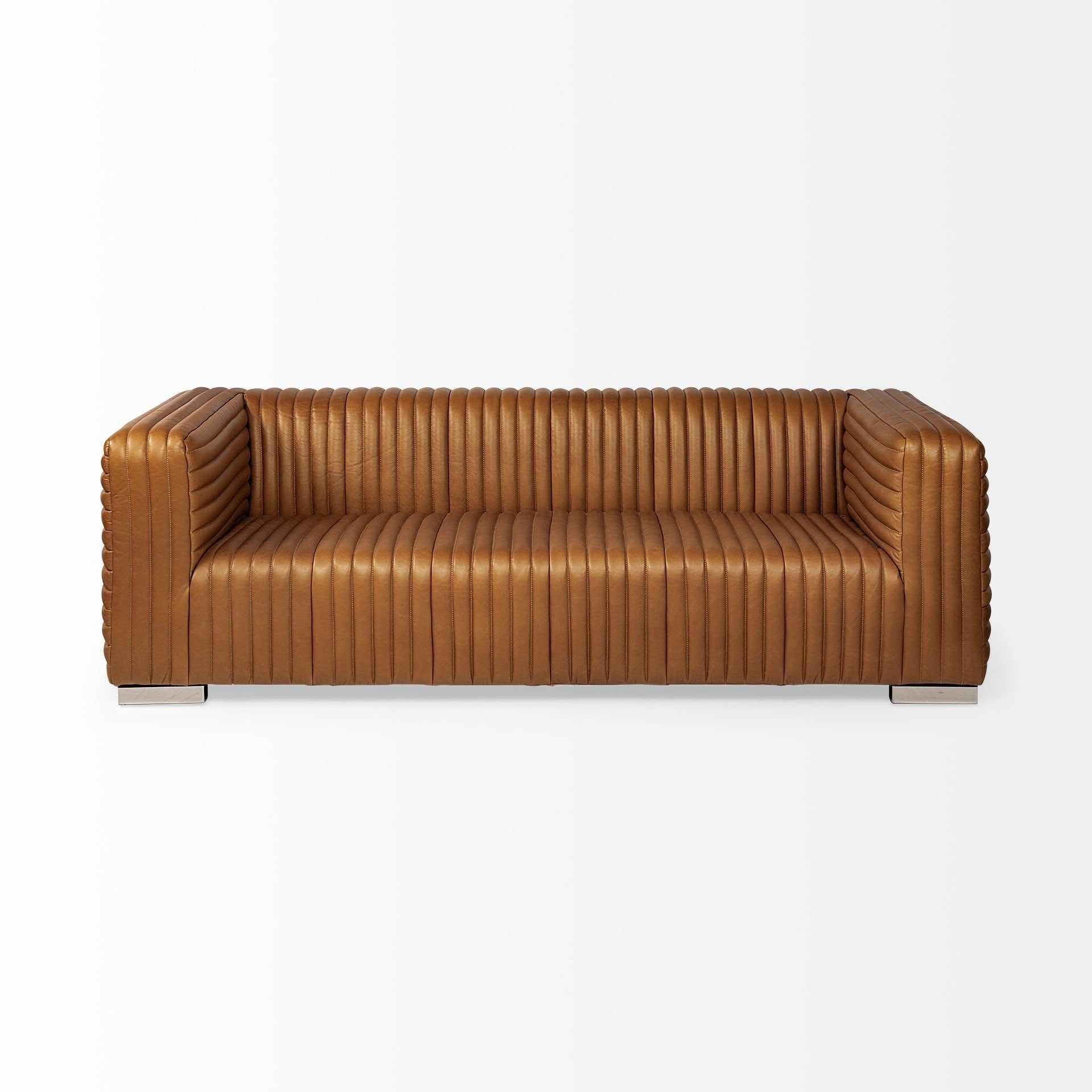 Ricciardo Cognac Genuine Leather Wrapped Sofa - 86.6L x 38.6W x 26.4H