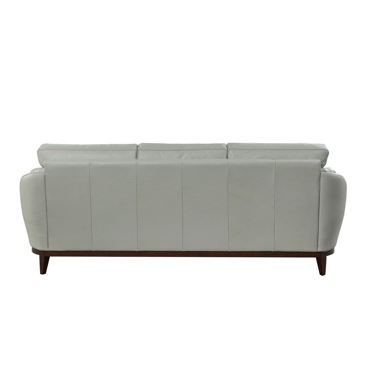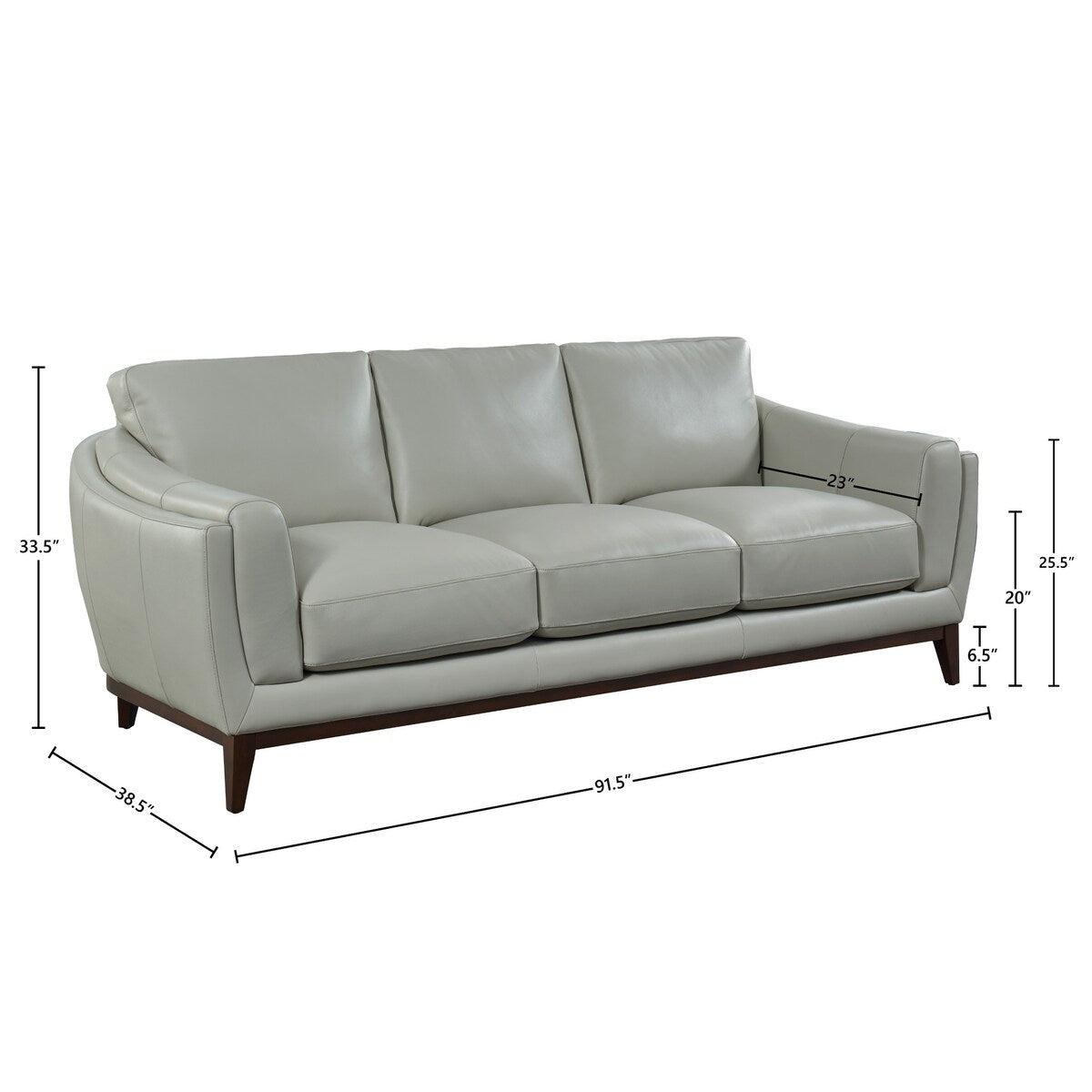 Update your living room with the luxurious Rio Top Grain Leather Sofa. Made of 100% cowhide leather, this sofa brings glamour and comfort to any space. The high-density foam cushions ensure durability and comfort, while the sturdy hardwood and hardwood laminate frame and sinuous wire spring suspension provide long-lasting support. The sofa sits on a full wooden base with a dark finish, adding to its elegance.