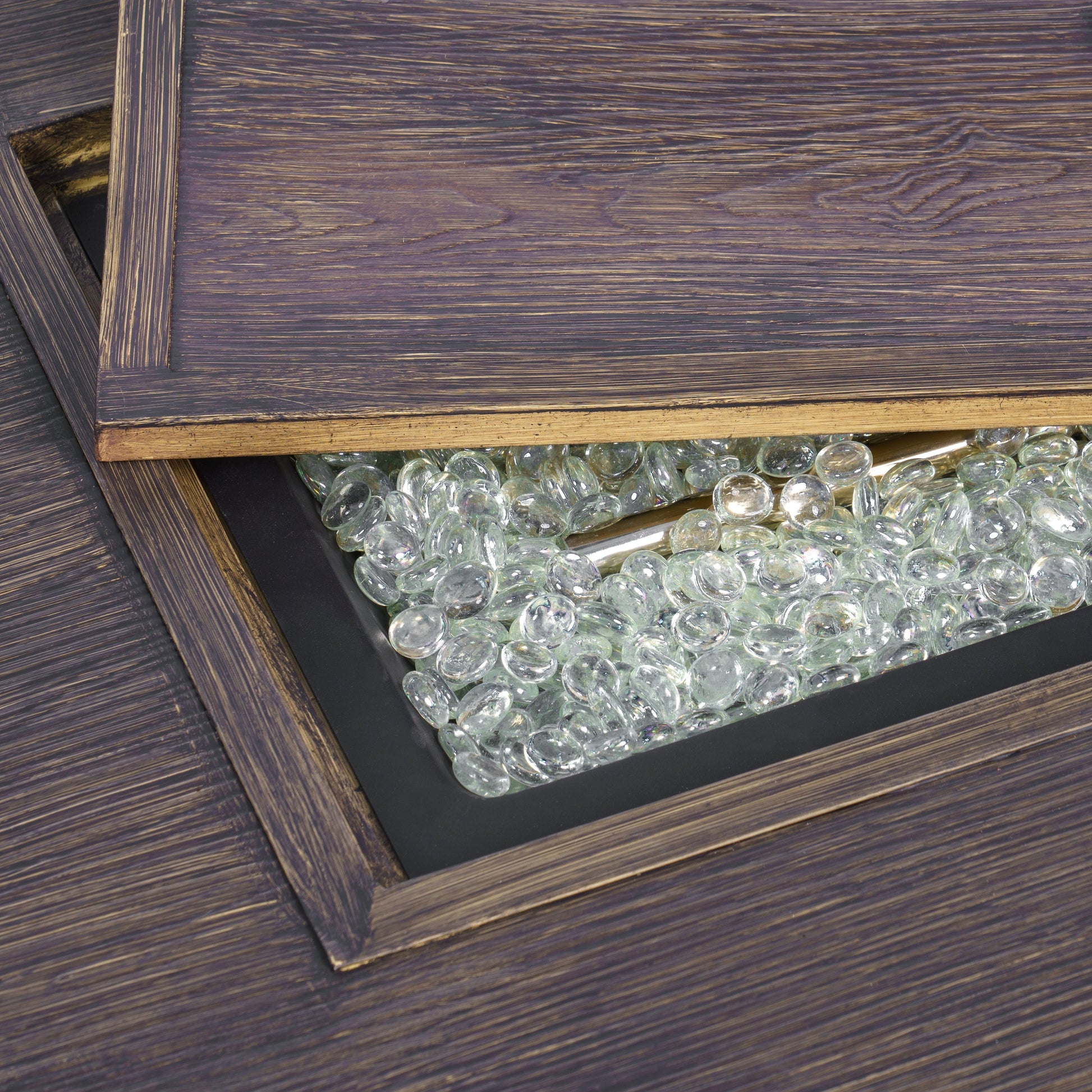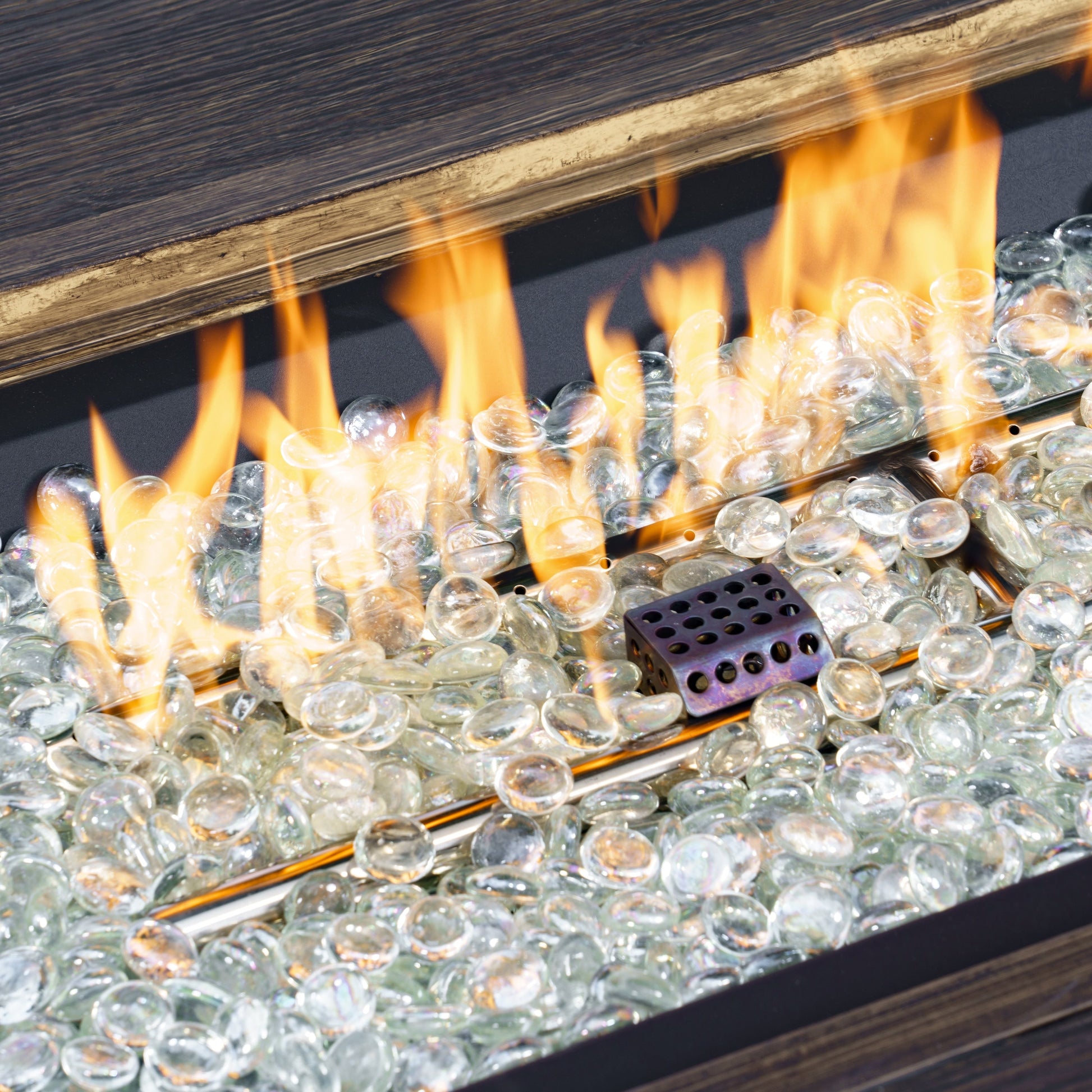 - Fire table includes stainless steel burner ring with 50,000 BTU output