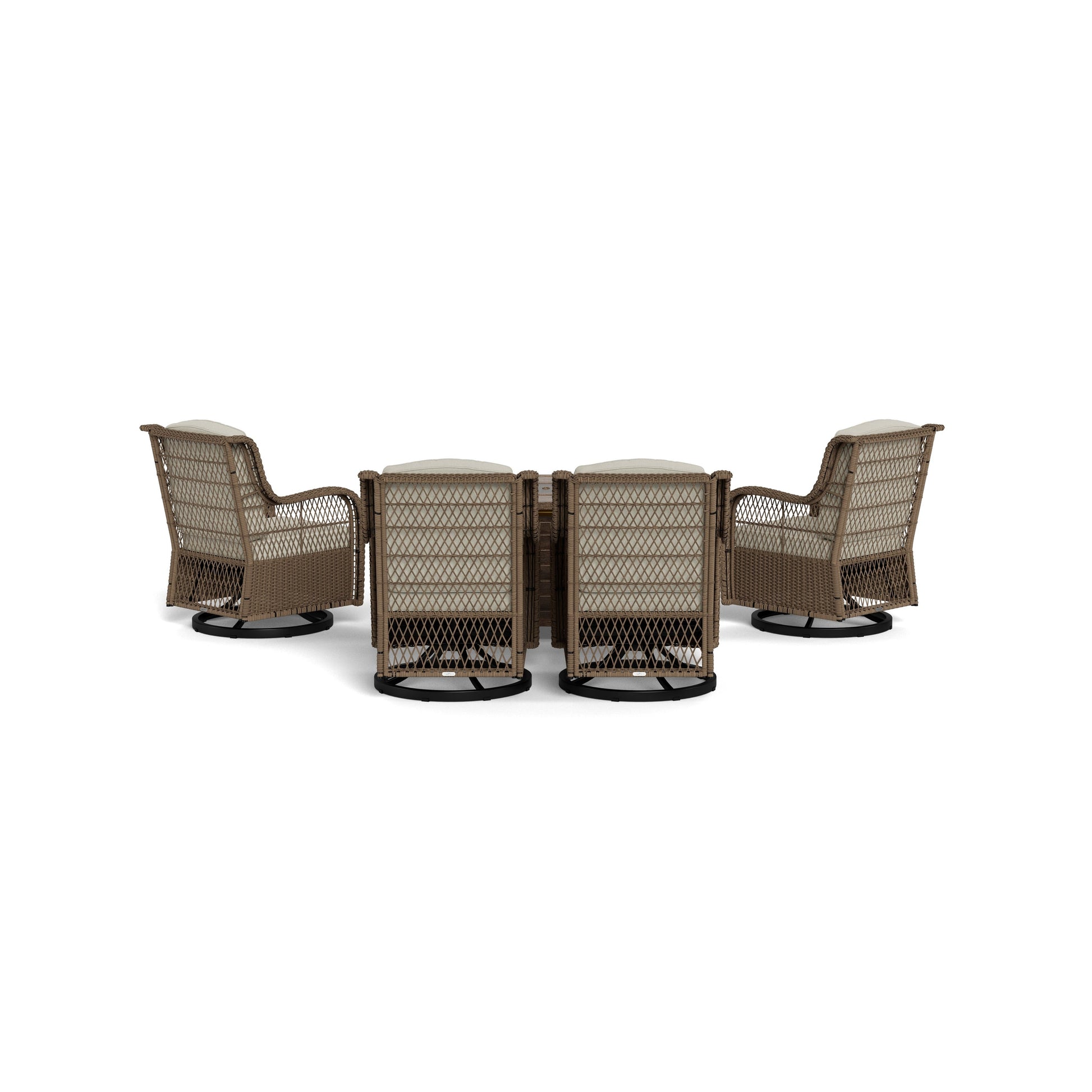 Rio Vista Sandstone Outdoor Wicker Seating Set with Fire Pit Table (5-Piece)