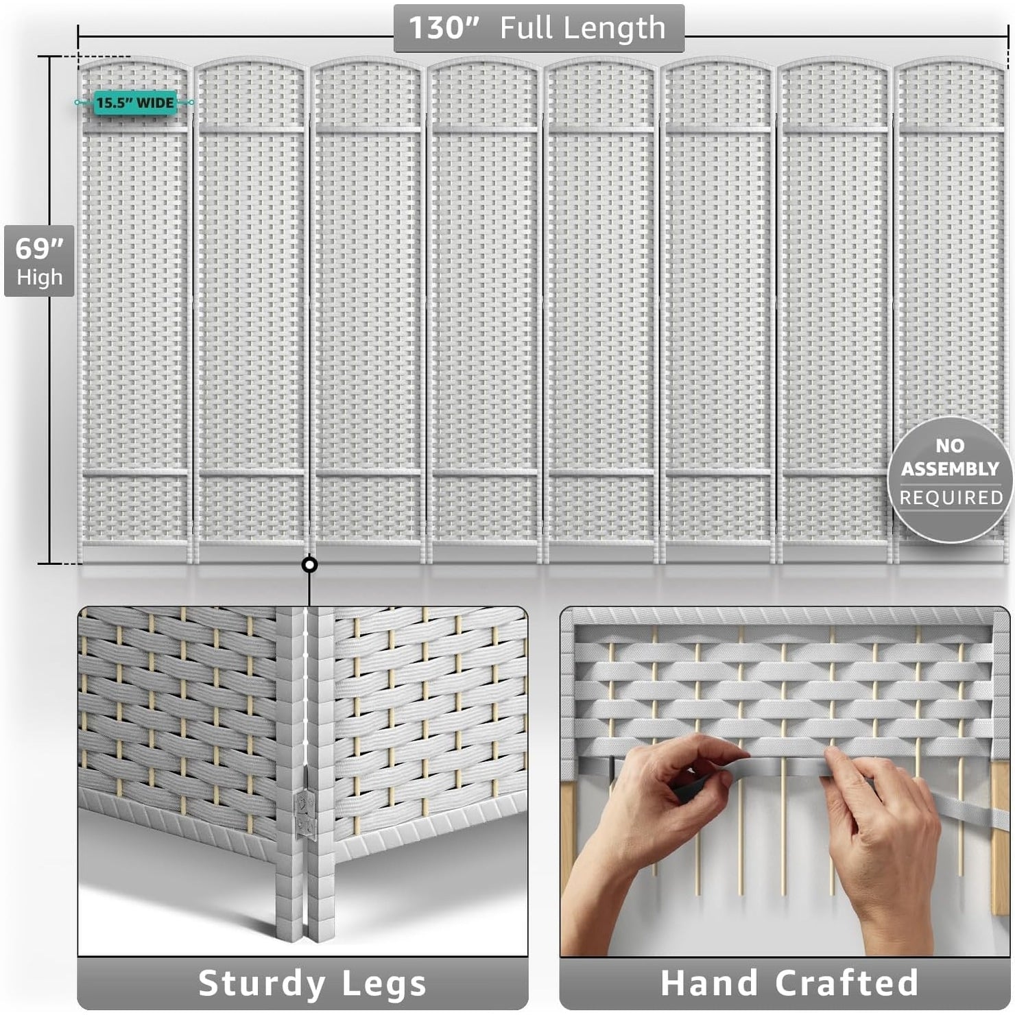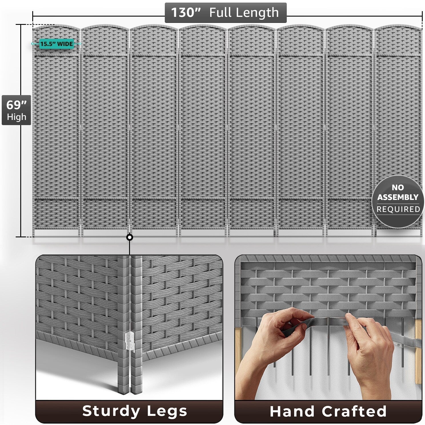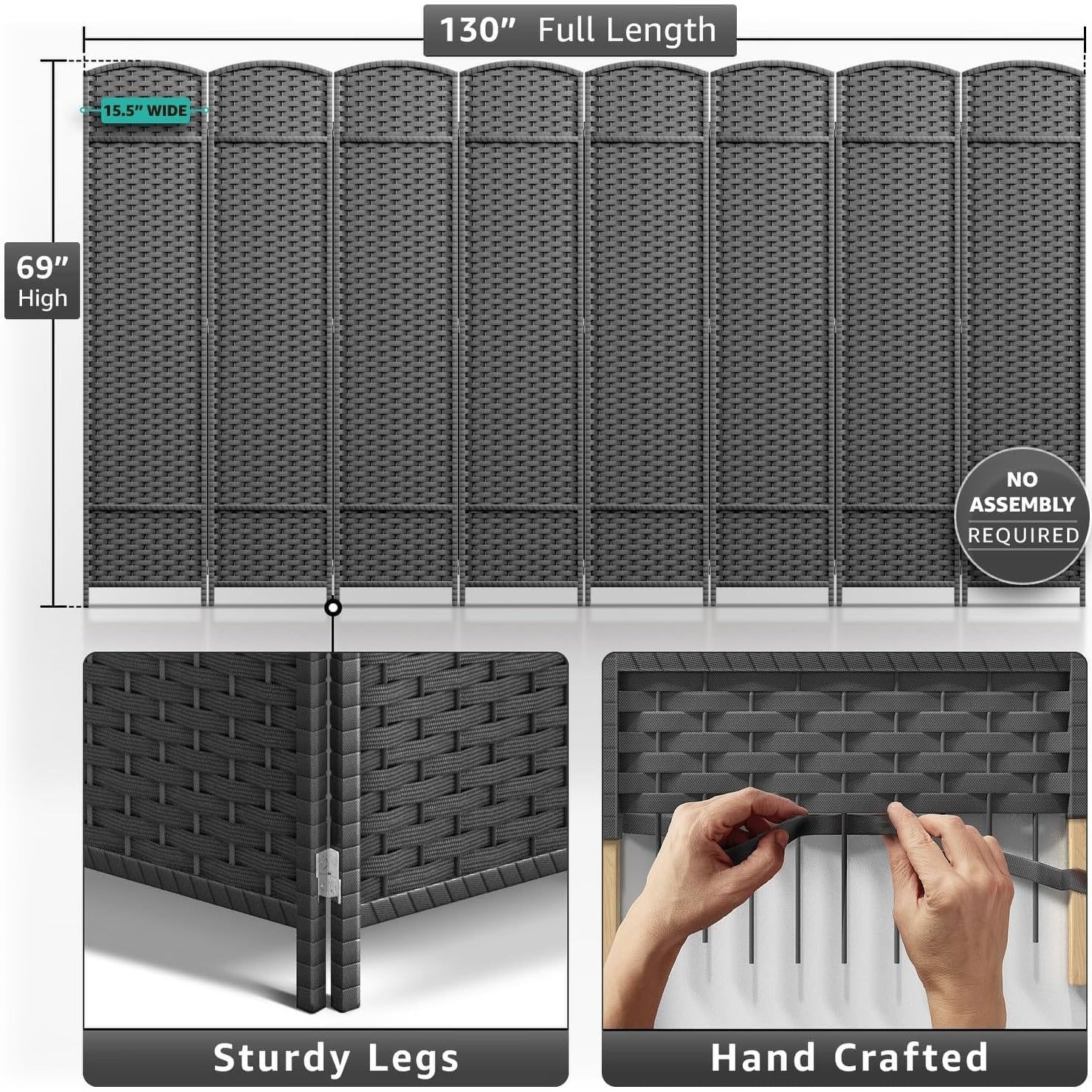 Room Divider Folding Privacy Screen Tall Partition Foldable Wall 8 Panel - 96” L x 19.50” W x 69” H