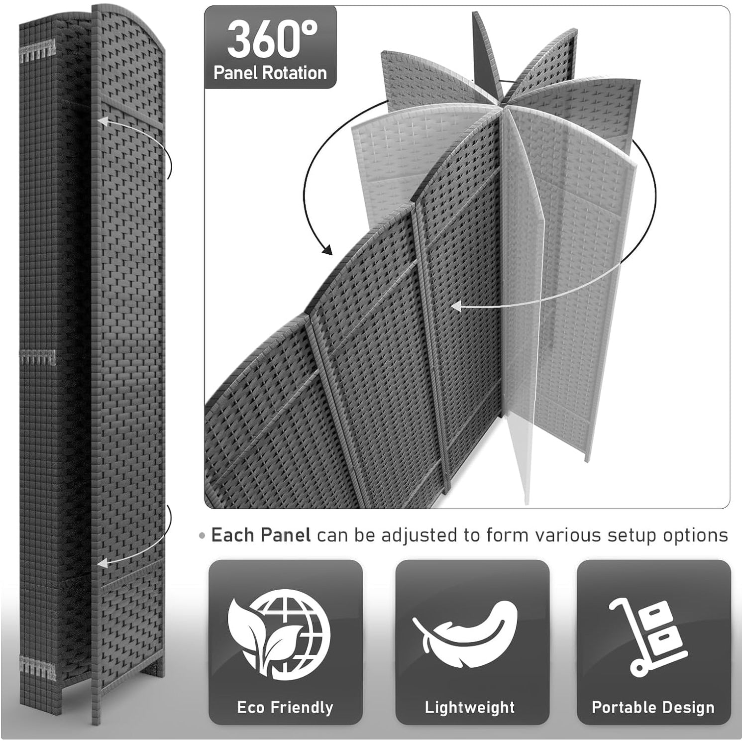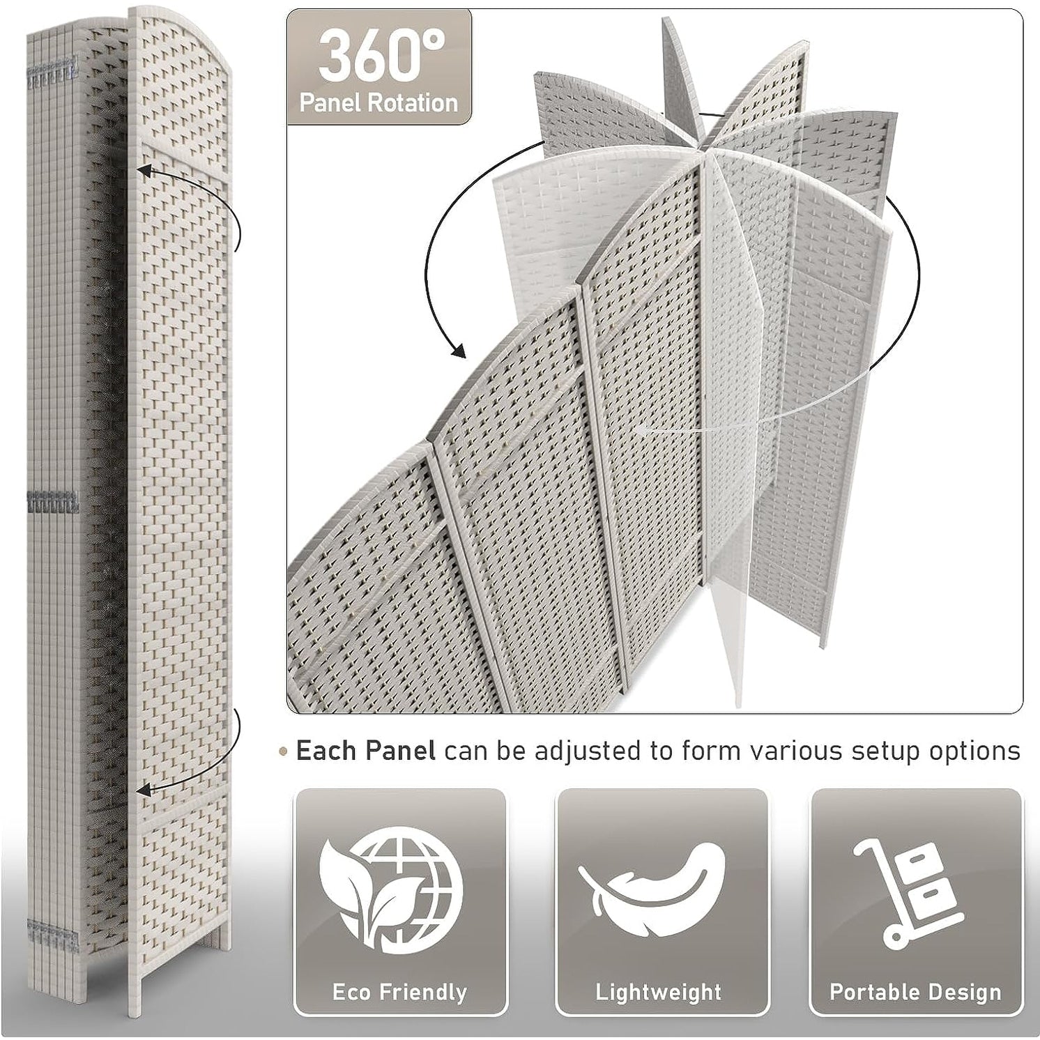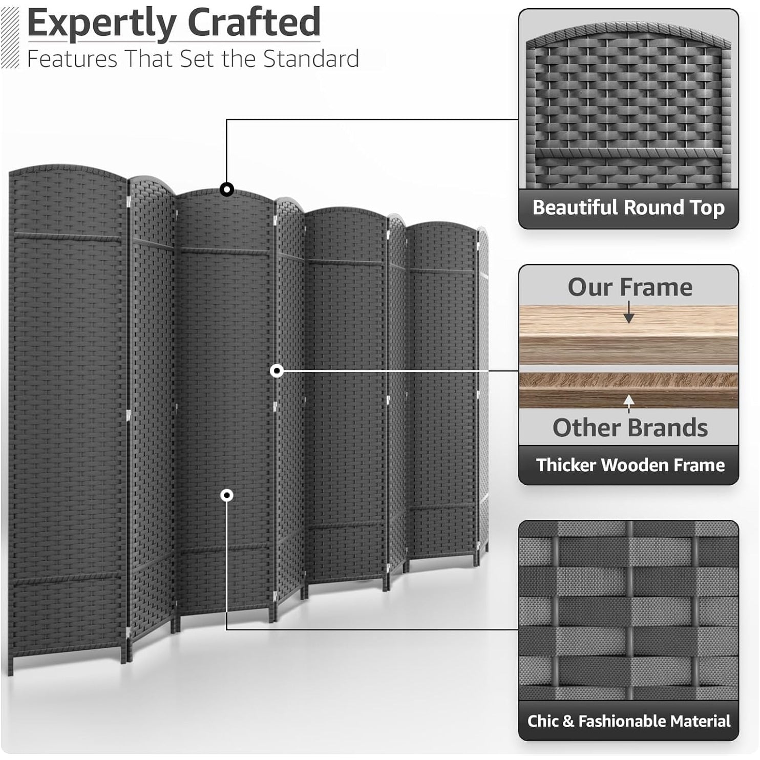 Room Divider Folding Privacy Screen Tall Partition Foldable Wall 8 Panel - 96” L x 19.50” W x 69” H