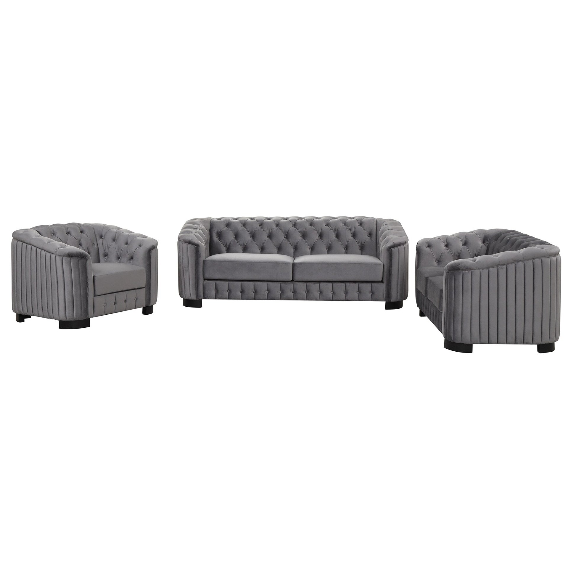 Roomfitters Modern 3-Piece Velvet Sofa Set with Rubber Wood Legs Includes Three-Seat Sofa Loveseat and Chair for Living Room