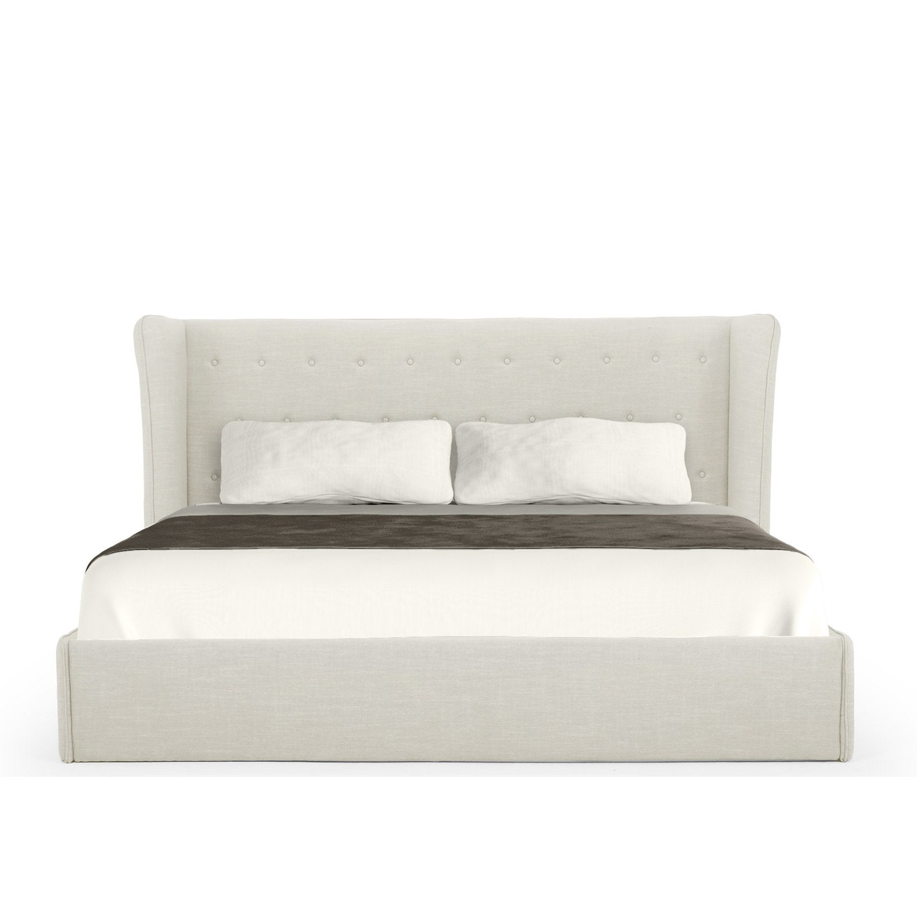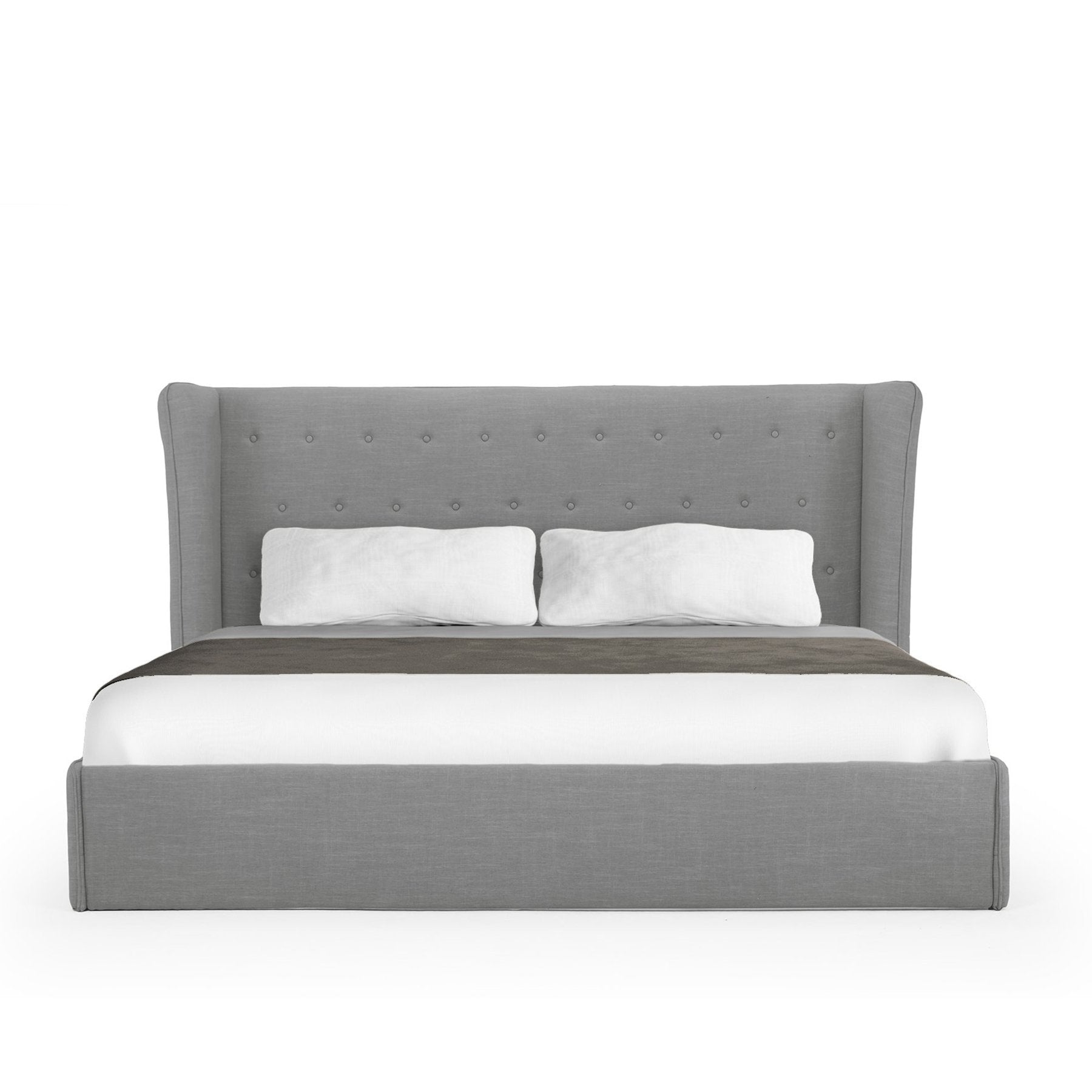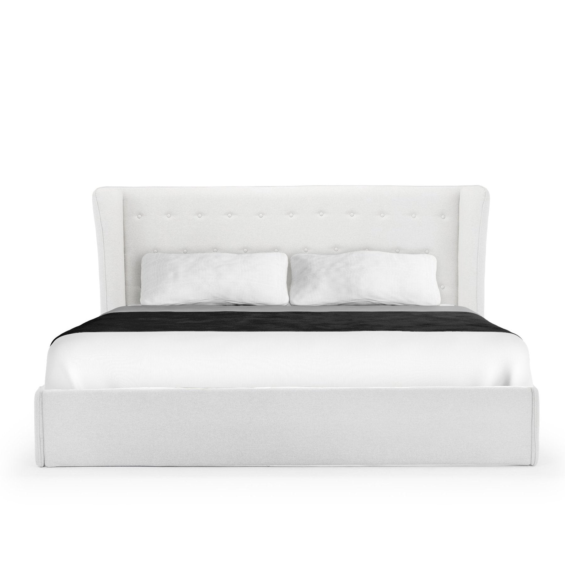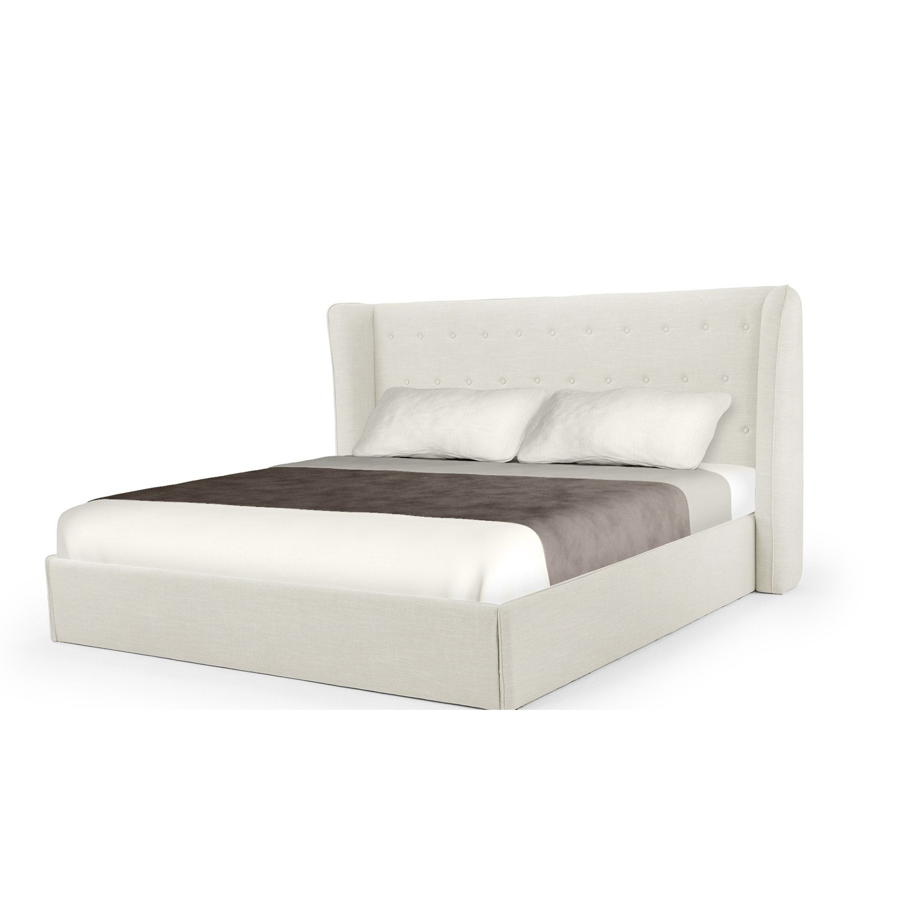 Dormez avec style grâce au lit King Size Rouen. Ce lit moderne possède un cadre solide entièrement recouvert de tissus raffinés. Sa tête de lit généreuse se distingue par sa forme et ses détails capitonnés. Il est équipé d'un sommier à lattes robuste sur lequel repose le matelas. À monter soi-même.