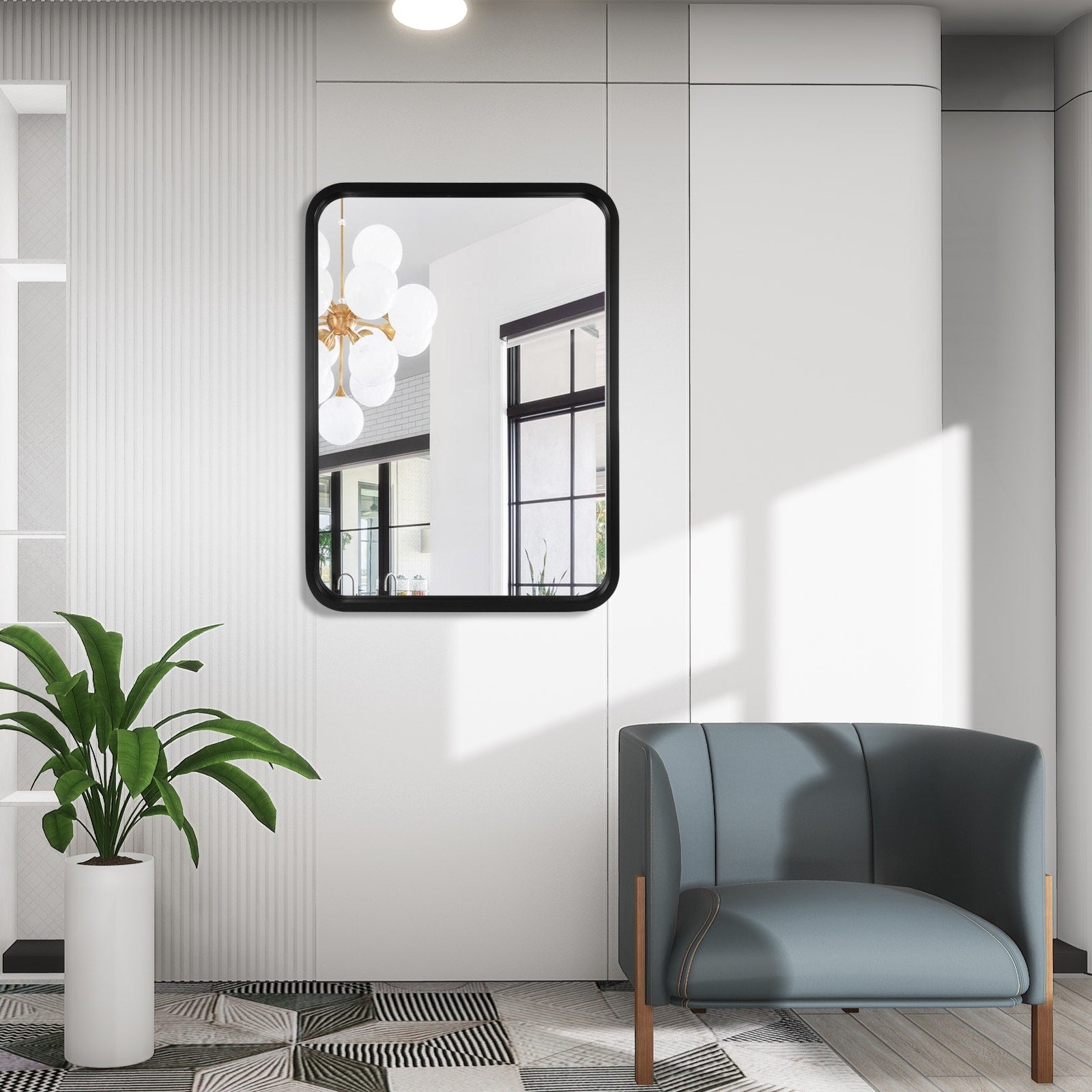 Round Corner Rectangle Farm Wall Mirror with Solid Wood Frame